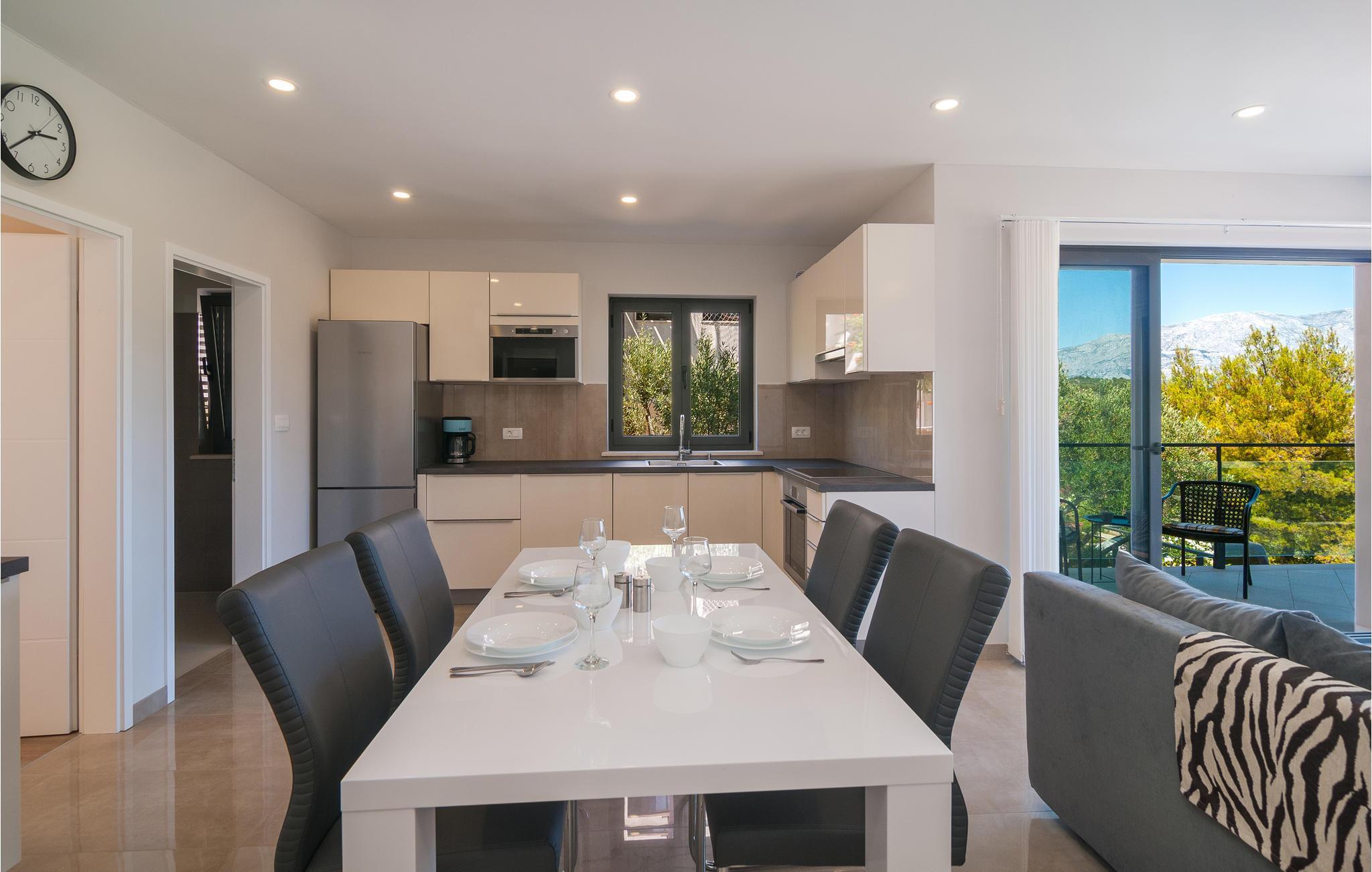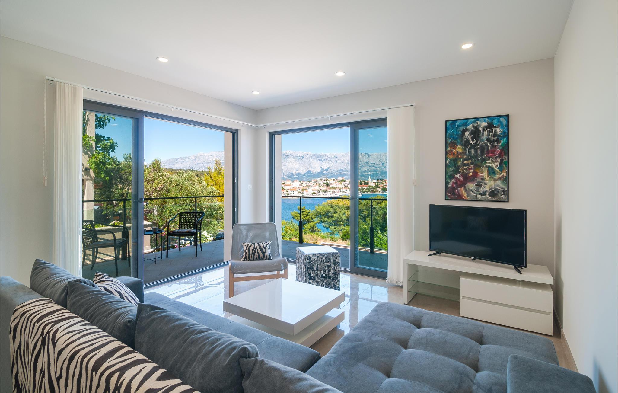 Die Wohnung ist modern ausgestattet und erwartet ihre Gäste im 1. Stock eines Hauses. Sie genießen hier einen wundervollen Panoramablick auf das Meer und die Landschaft. Mit einem Schlafzimmern und einem weiteren Schlafplatz im Wohnzimmer bietet die Wohnung komfortabel Platz für 3 Personen. Das Haus ist mit einer Waschküche zur gemeinsamen Nutzung ausgestattet.