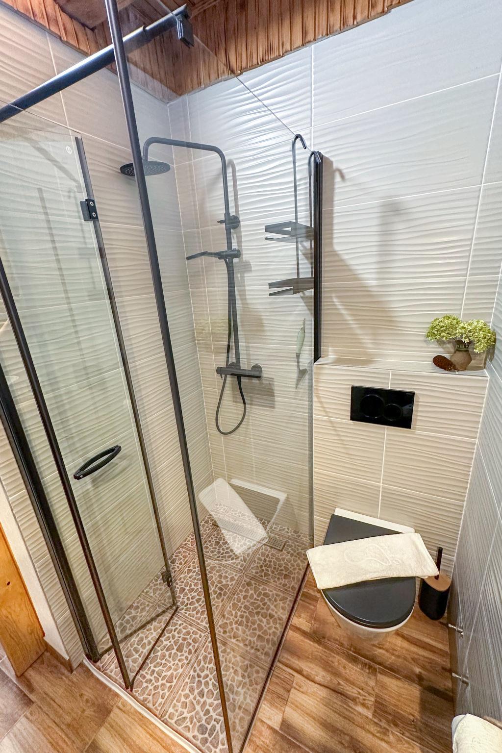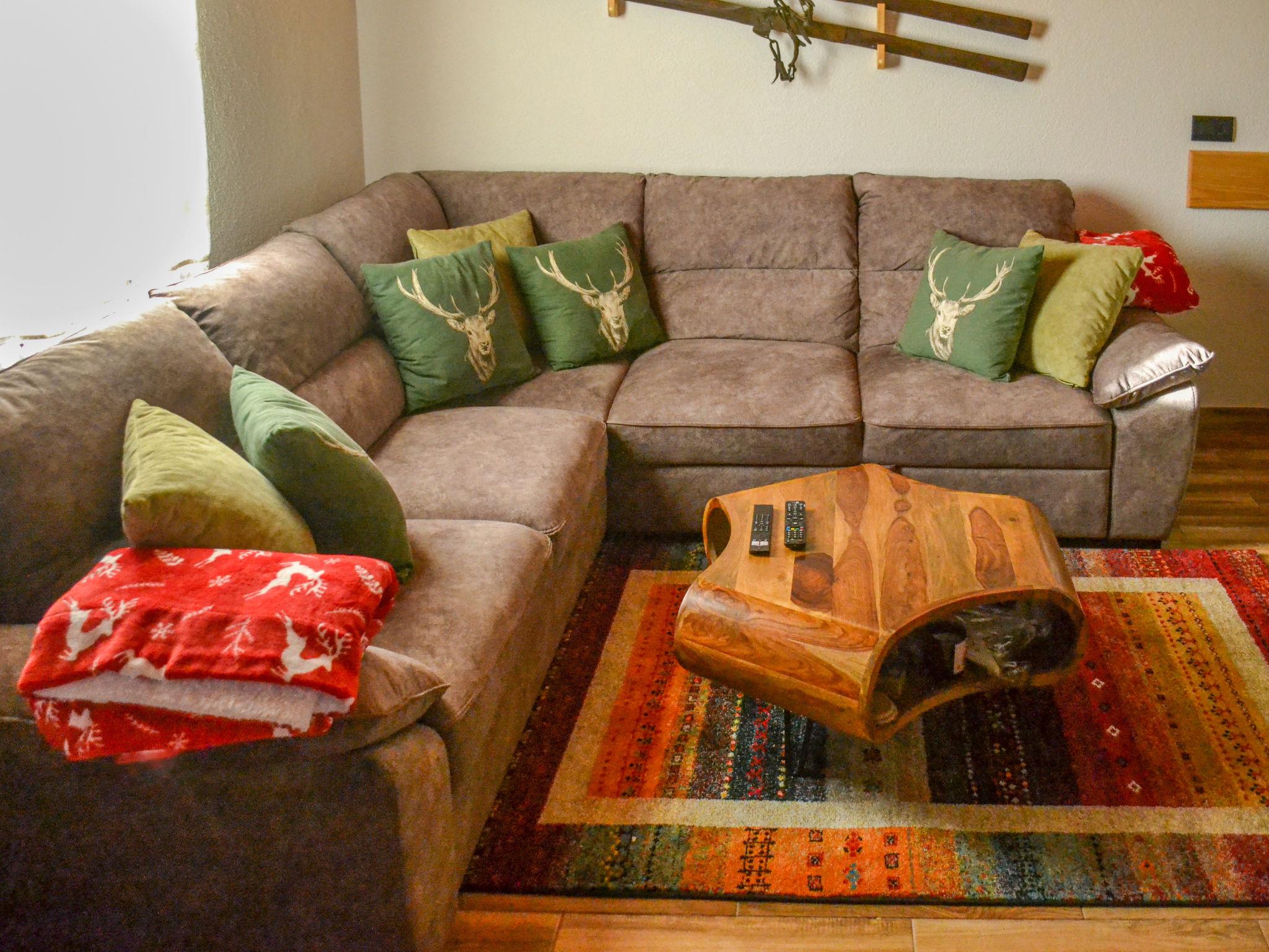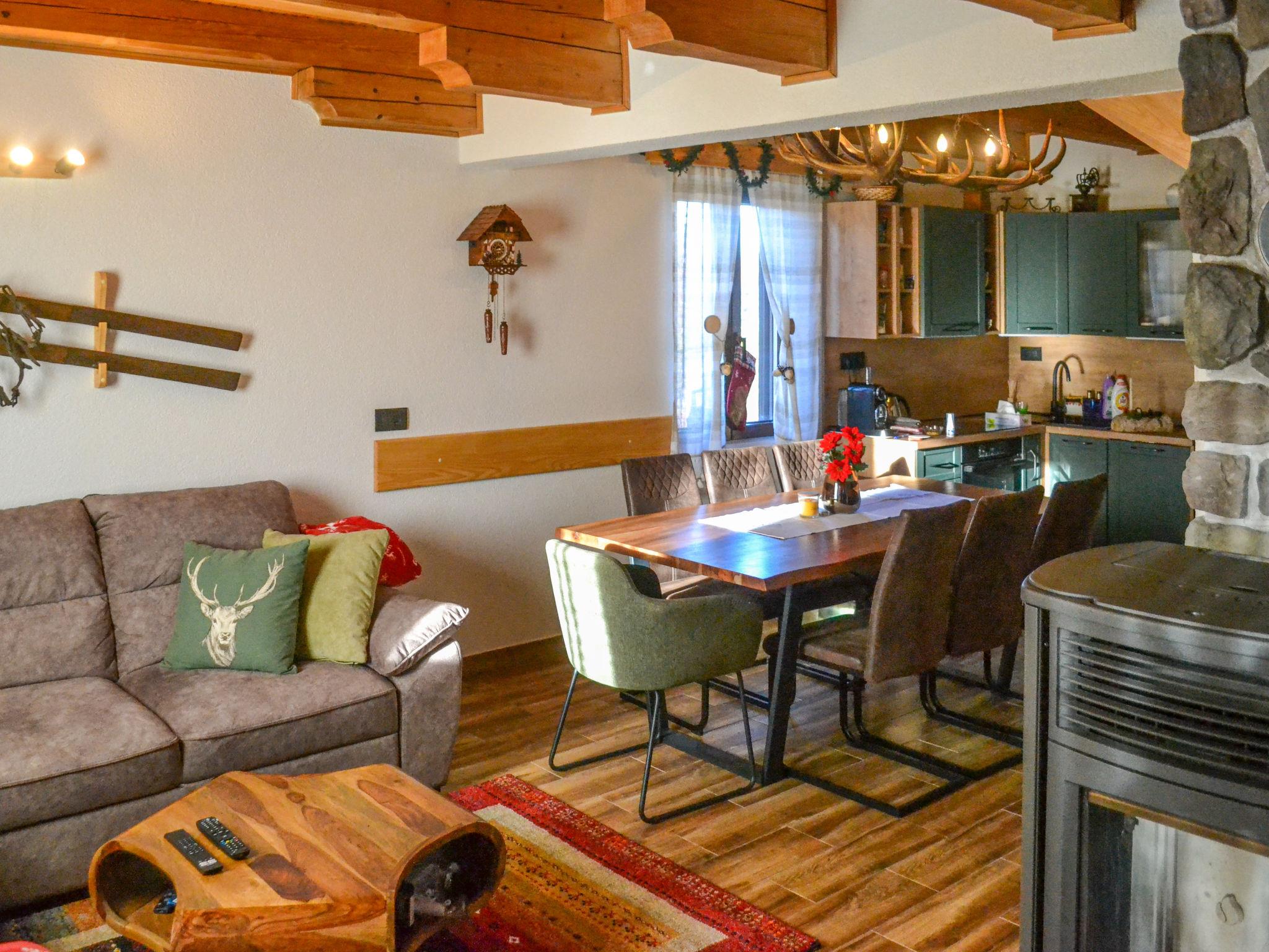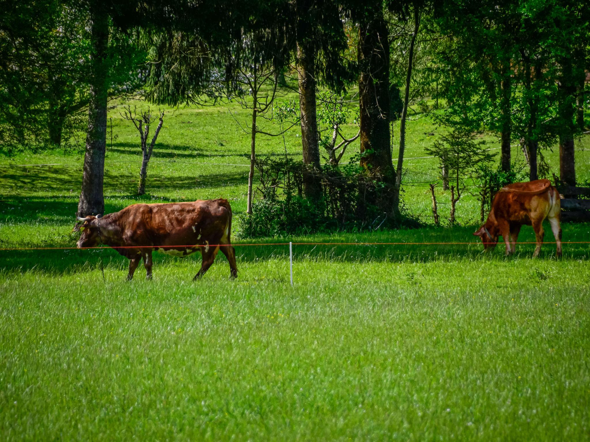 3-Zimmer-Chalet 120 m2 auf 2 Stockwerken. Komfortabel eingerichtet: Wohn-/Esszimmer mit Sat-TV und Holzofen. Ausgang zur Terrasse. Offene Küche (Backofen, Geschirrspüler, 4 Glaskeramikplatten, Toaster, Wasserkocher, Tiefkühler, elektrische Kaffeemaschine). Ausgang zur Terrasse. Holzheizung. Obergeschoss: 2 abgeschrägte Zimmer, Deckenhöhe 110 - 210 cm, jedes Zimmer mit 1 franz. Bett (160 cm, Länge 200 cm). Ausgang zum Balkon. Dusche/WC. Warmluftheizung, Fussbodenheizung. 2 Balkone 10 m2, Terrasse 20 m2. Terrassenmöbel, Gartengrill. Panoramasicht auf die Landschaft. Zur Verfügung: Holz (gratis). Internet (WLAN, gratis). E-Ladestation. Bitte beachten: Nichtraucher-Haus. Feuerlöscher.
