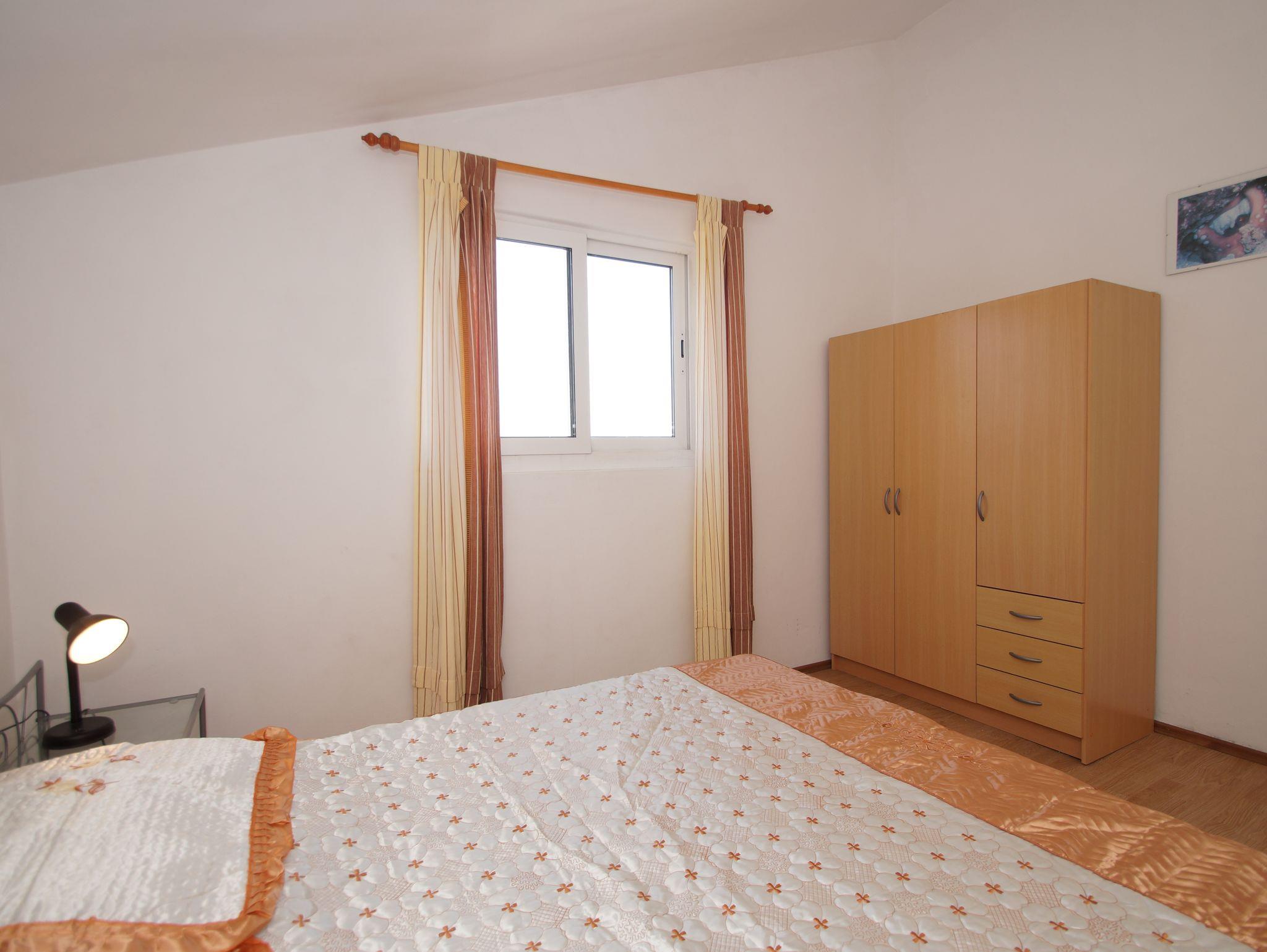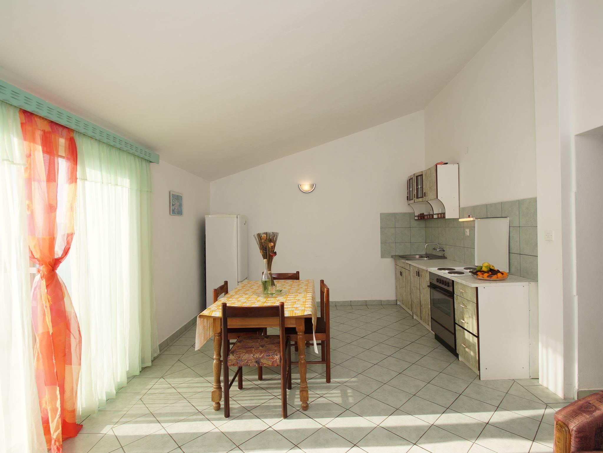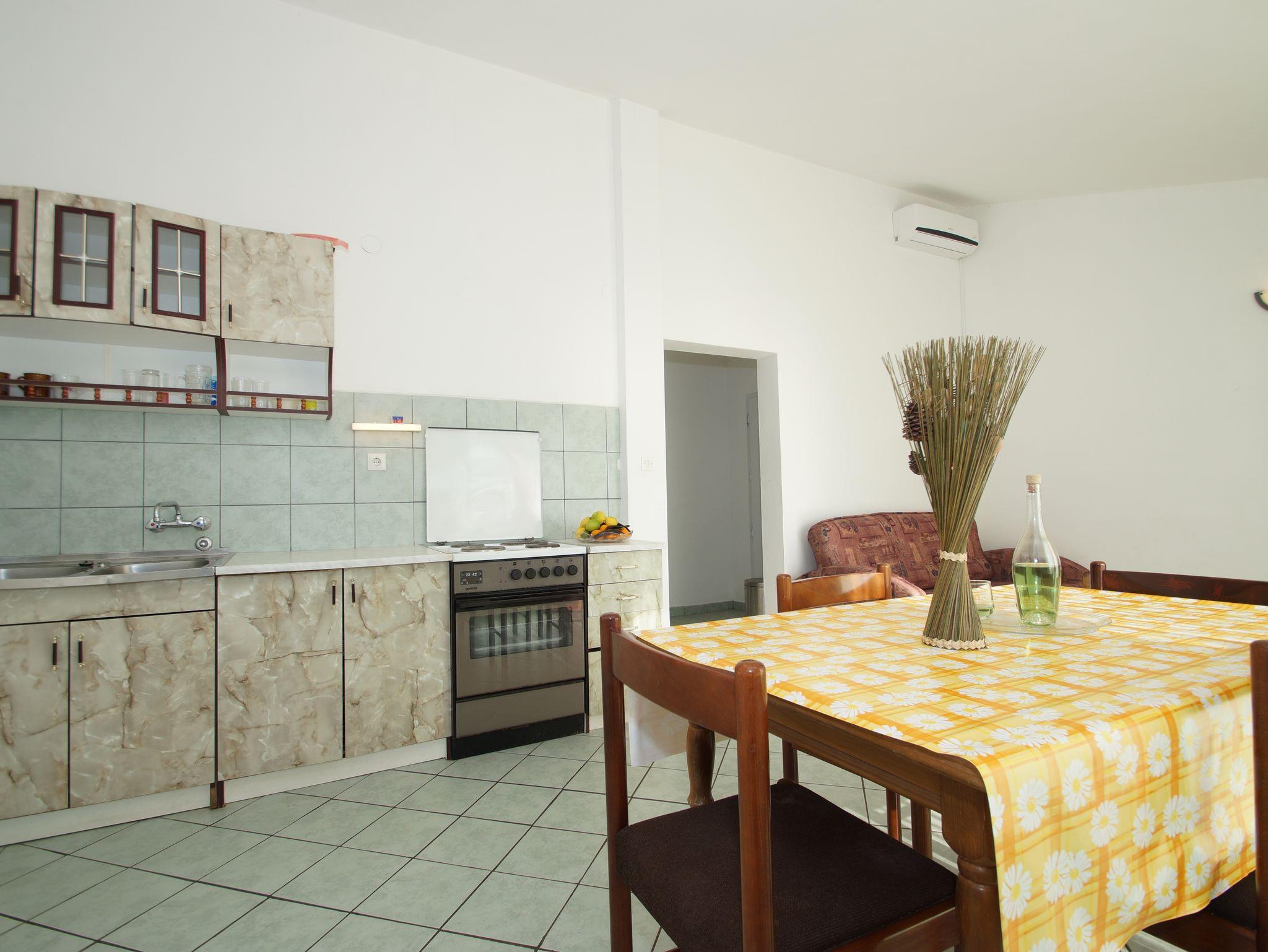 Ferienwohnung bietet Platz für 5 Gäste. Die Betten sind in Schlafzimmern, die es 2 gibt, und in Wohnzimmer, innerhalb einer Gesamtfläche von 52m2, angeordnet. Die Gäste haben eine eigene Terrasse zur Verfügung, auf der sie in warmen Sommernächten genießen können. Das Apartment bietet Meerblick. Es ist erlaubt, Speisen auf dem Gemeinschafts-Grill vorzubereiten. In der Unterkunftseinheit besteht die Möglichkeit des Mitbringens von Haustieren gegen Aufpreis. IM PREIS INBEGRIFFEN: Kurtaxe, Endreinigung, Klimatisierung, Parkplatz, Internet, Bootsanlegeplatz, Bügeleisen. VERBINDLICHE ZUSÄTZLICHE KOSTEN: Aufzahlung für Kurzaufenthalte (prozentualer Zuschlag pro Nächtigungsanzahl: 30% - 1, 20% - 2, 10% - 3). UNVERBINDLICHE ZUSÄTZLICHE KOSTEN: Wäschewaschen (5,00 € Waschen), Boot (60,00 € pro Nacht), Haustiere (3,00 € pro Nacht). Die Verfügbarkeit zusätzlicher Dienstleistungen in Ihrem reservierten Termin und die Preise derselben (falls nicht aufgeführt) müssen im Voraus überprüft werden. Zusätzliche Dienstleistungen die in der Zahlungsaufforderung nicht aufgeführt sind werden direkt beim Vermieter bezahlt, angenommen der Gast nutzt auch diese.