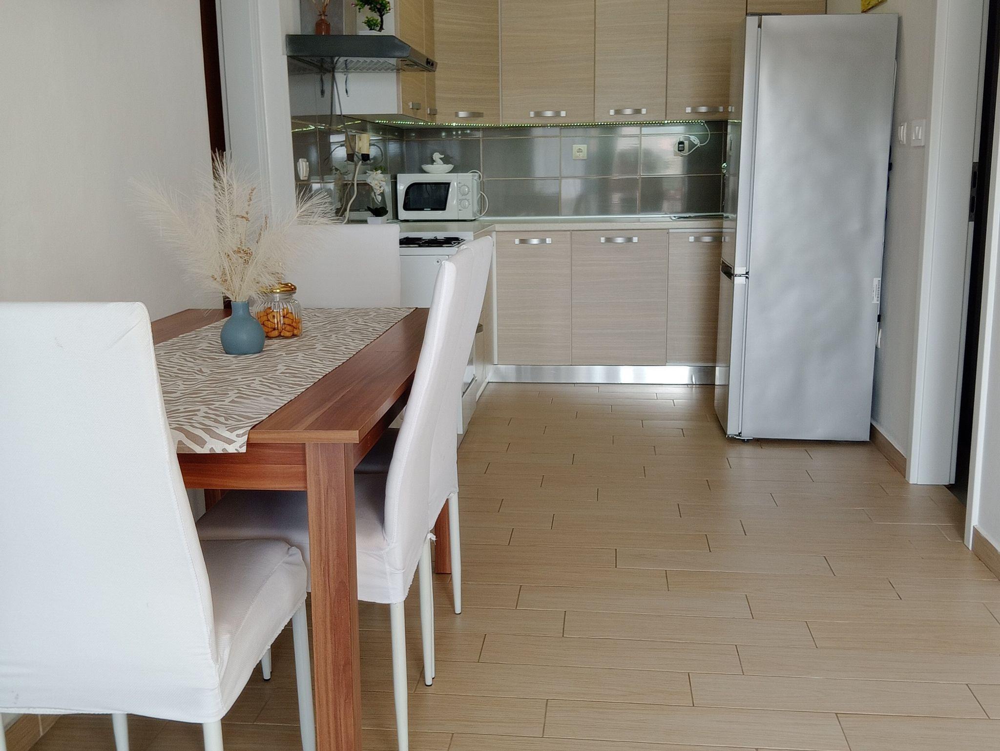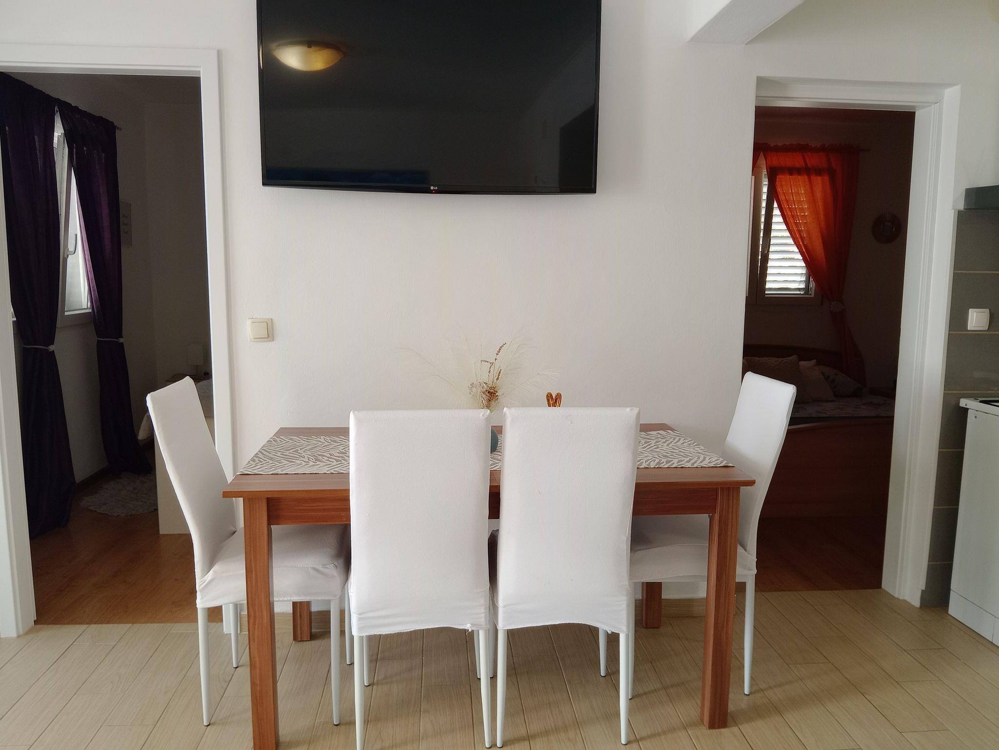 Ferienwohnung bietet Platz für 4 Gäste. Die Betten sind in Schlafzimmern, die es 2 gibt, innerhalb einer Gesamtfläche von 43m2, angeordnet. Die Gäste haben eine eigene Terrasse zur Verfügung, auf der sie in warmen Sommernächten genießen können. Das Apartment bietet Meerblick. Es ist erlaubt, Speisen auf dem Gemeinschafts-Grill vorzubereiten. In der gebuchten Unterkunftseinheit zahlt man am Ort ein Depositum ( der Preis ist an der Internetseite angeführt ). IM PREIS INBEGRIFFEN: Kurtaxe, Endreinigung, Klimatisierung, Parkplatz, Internet, Bügeleisen, Föhn, tragbarer Grill. VERBINDLICHE ZUSÄTZLICHE KOSTEN: Kaution (50,00 € Einmalzahlung), Aufzahlung für Kurzaufenthalte (prozentualer Zuschlag pro Nächtigungsanzahl: 30% - 1, 20% - 2, 10% - 3). Die Verfügbarkeit zusätzlicher Dienstleistungen in Ihrem reservierten Termin und die Preise derselben (falls nicht aufgeführt) müssen im Voraus überprüft werden. Zusätzliche Dienstleistungen die in der Zahlungsaufforderung nicht aufgeführt sind werden direkt beim Vermieter bezahlt, angenommen der Gast nutzt auch diese.