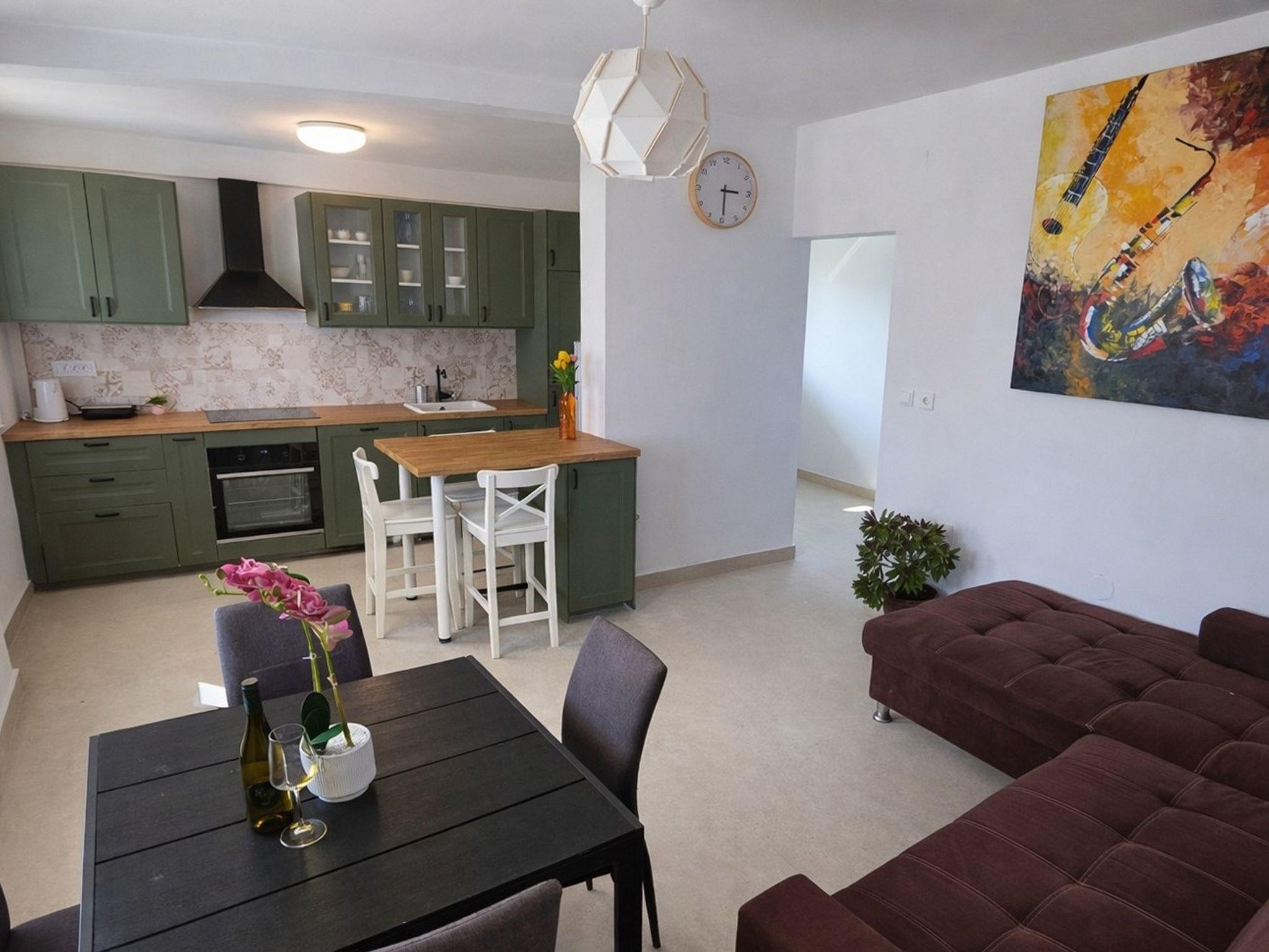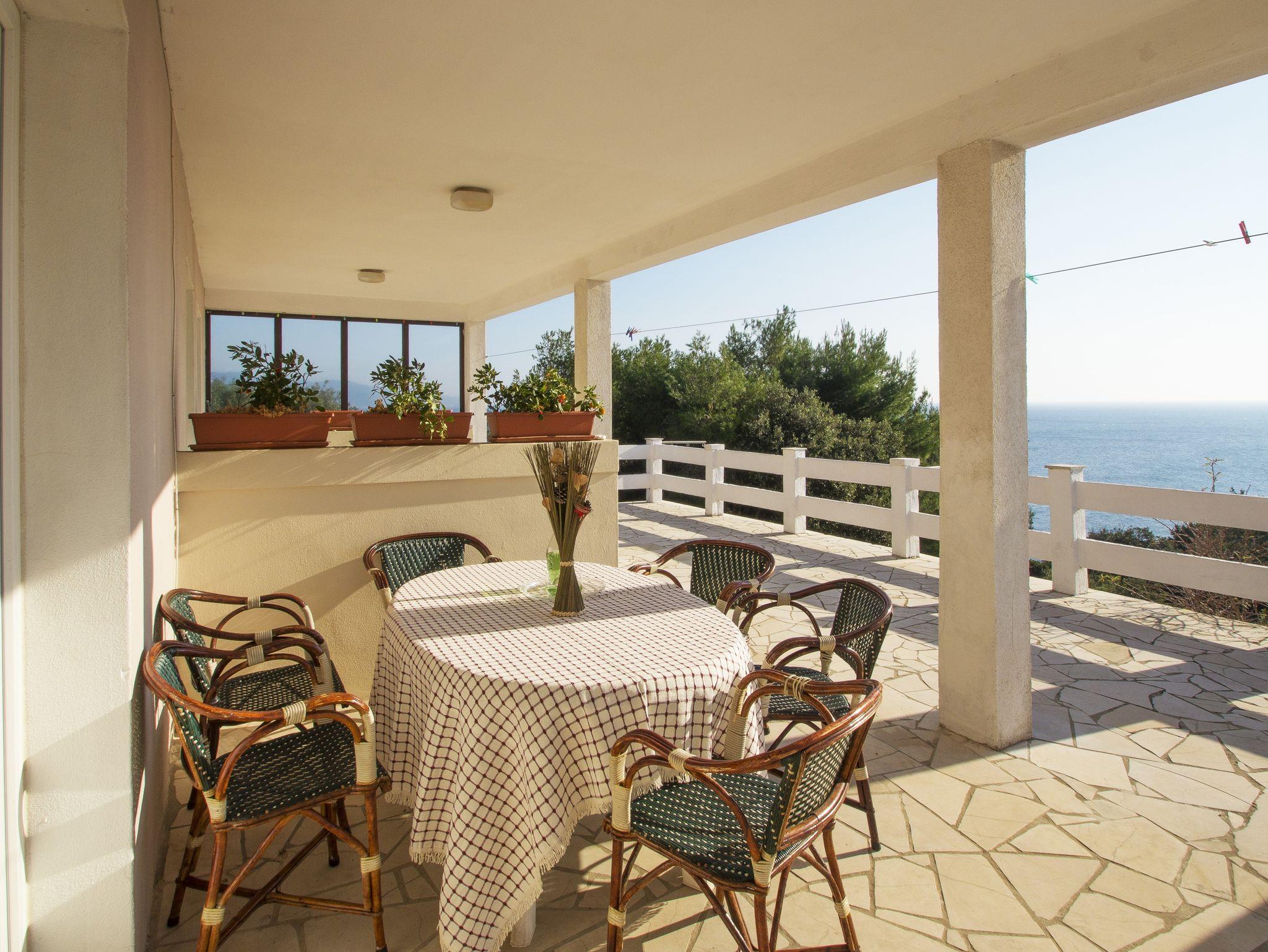Ferienwohnung bietet Platz für 5 Gäste. Die Betten sind in Schlafzimmern, die es 2 gibt, und in Esszimmer, innerhalb einer Gesamtfläche von 45m2, angeordnet. Die Gäste haben eine eigene Terrasse zur Verfügung, auf der sie in warmen Sommernächten genießen können. Das Apartment bietet Meerblick. Es ist erlaubt, Speisen auf dem Gemeinschafts-Grill vorzubereiten. In der Unterkunftseinheit besteht die Möglichkeit des Mitbringens von Haustieren gegen Aufpreis. IM PREIS INBEGRIFFEN: Kurtaxe, Endreinigung, Klimatisierung, Parkplatz, Internet, Bootsanlegeplatz, Bügeleisen. VERBINDLICHE ZUSÄTZLICHE KOSTEN: Aufzahlung für Kurzaufenthalte (prozentualer Zuschlag pro Nächtigungsanzahl: 30% - 1, 20% - 2, 10% - 3). UNVERBINDLICHE ZUSÄTZLICHE KOSTEN: Wäschewaschen (5,00 € Waschen), Boot (60,00 € pro Nacht), Haustiere (3,00 € pro Nacht), Zusatzbett (8,00 € pro Nacht). Die Verfügbarkeit zusätzlicher Dienstleistungen in Ihrem reservierten Termin und die Preise derselben (falls nicht aufgeführt) müssen im Voraus überprüft werden. Zusätzliche Dienstleistungen die in der Zahlungsaufforderung nicht aufgeführt sind werden direkt beim Vermieter bezahlt, angenommen der Gast nutzt auch diese.