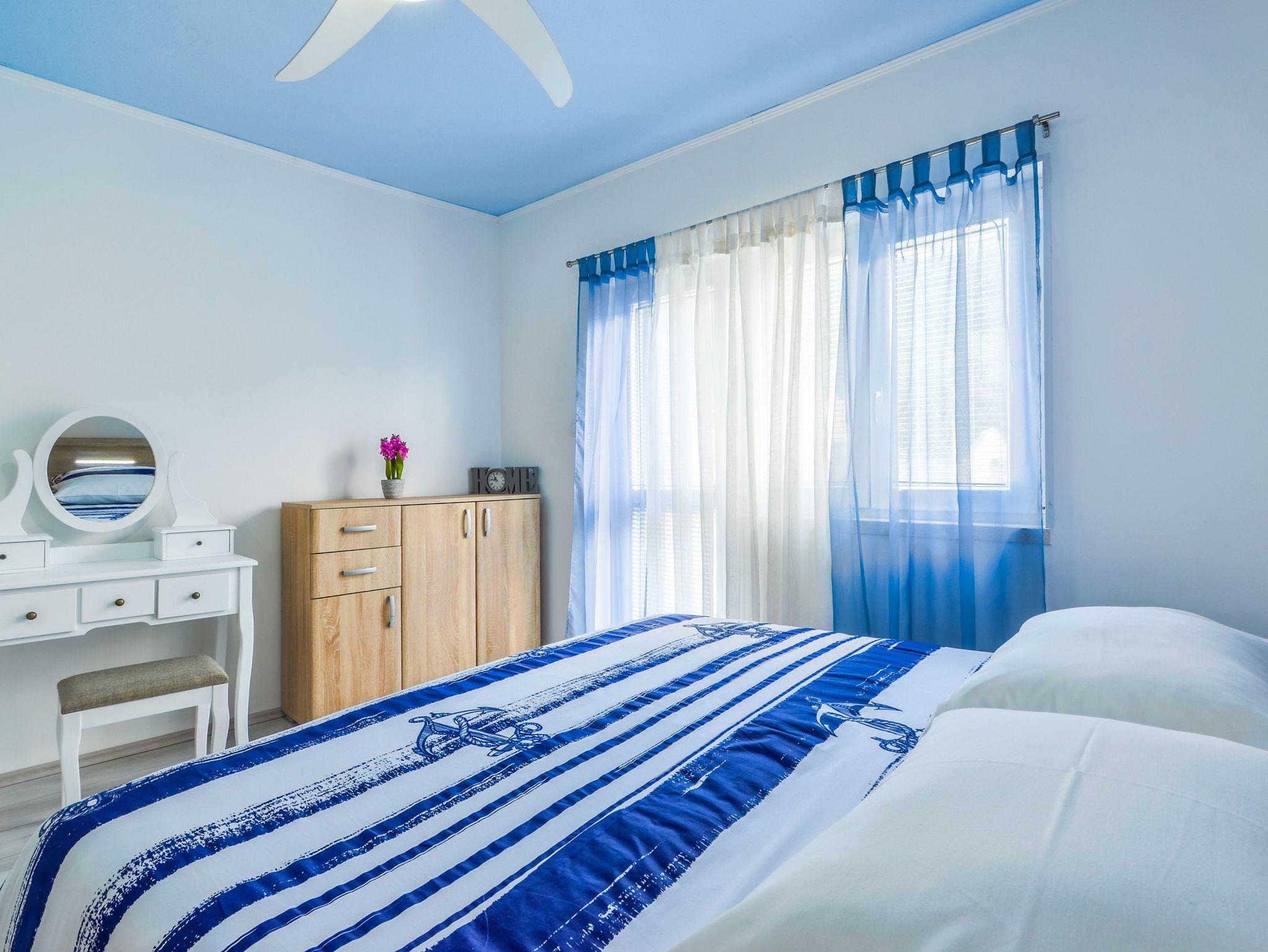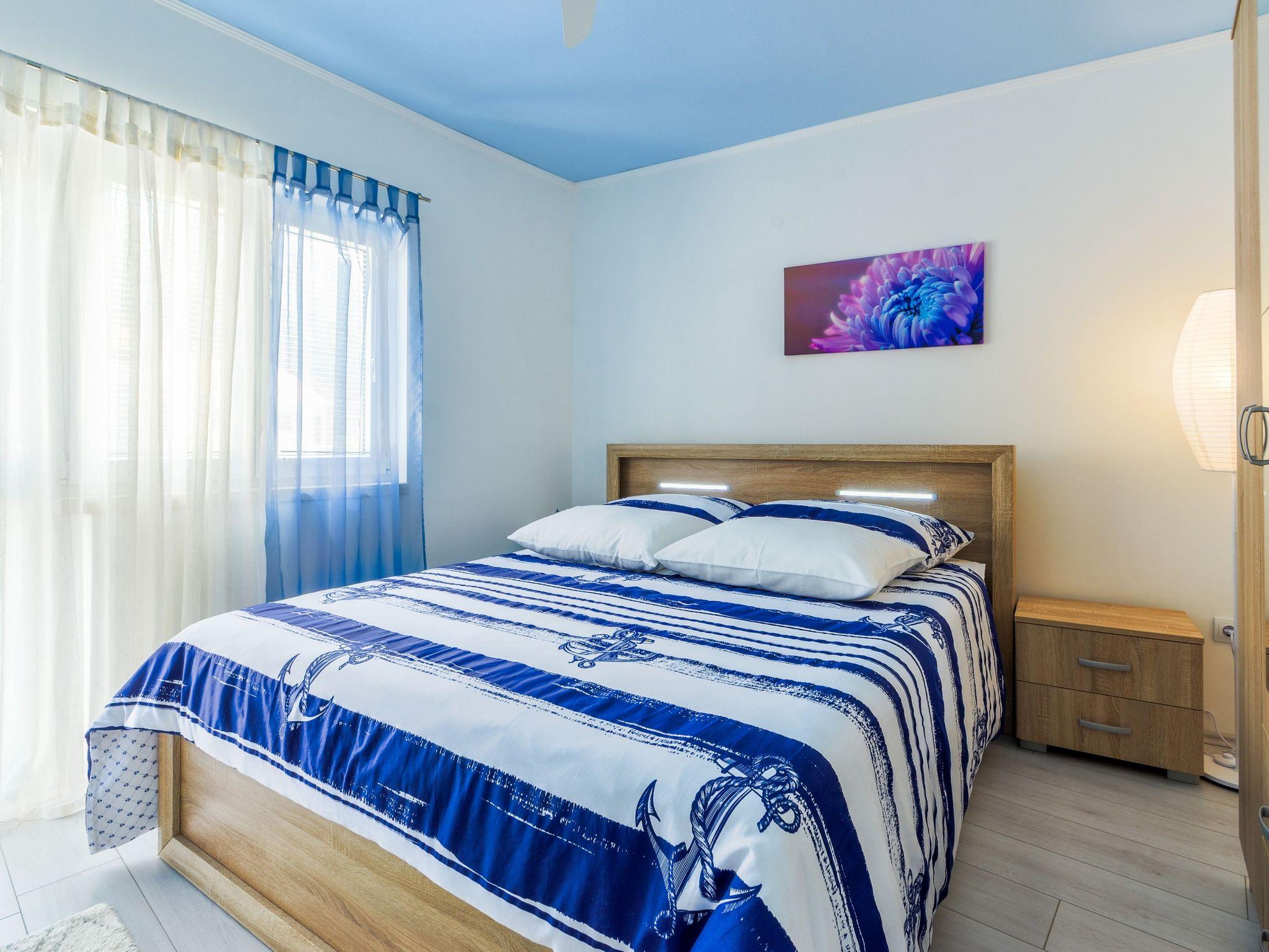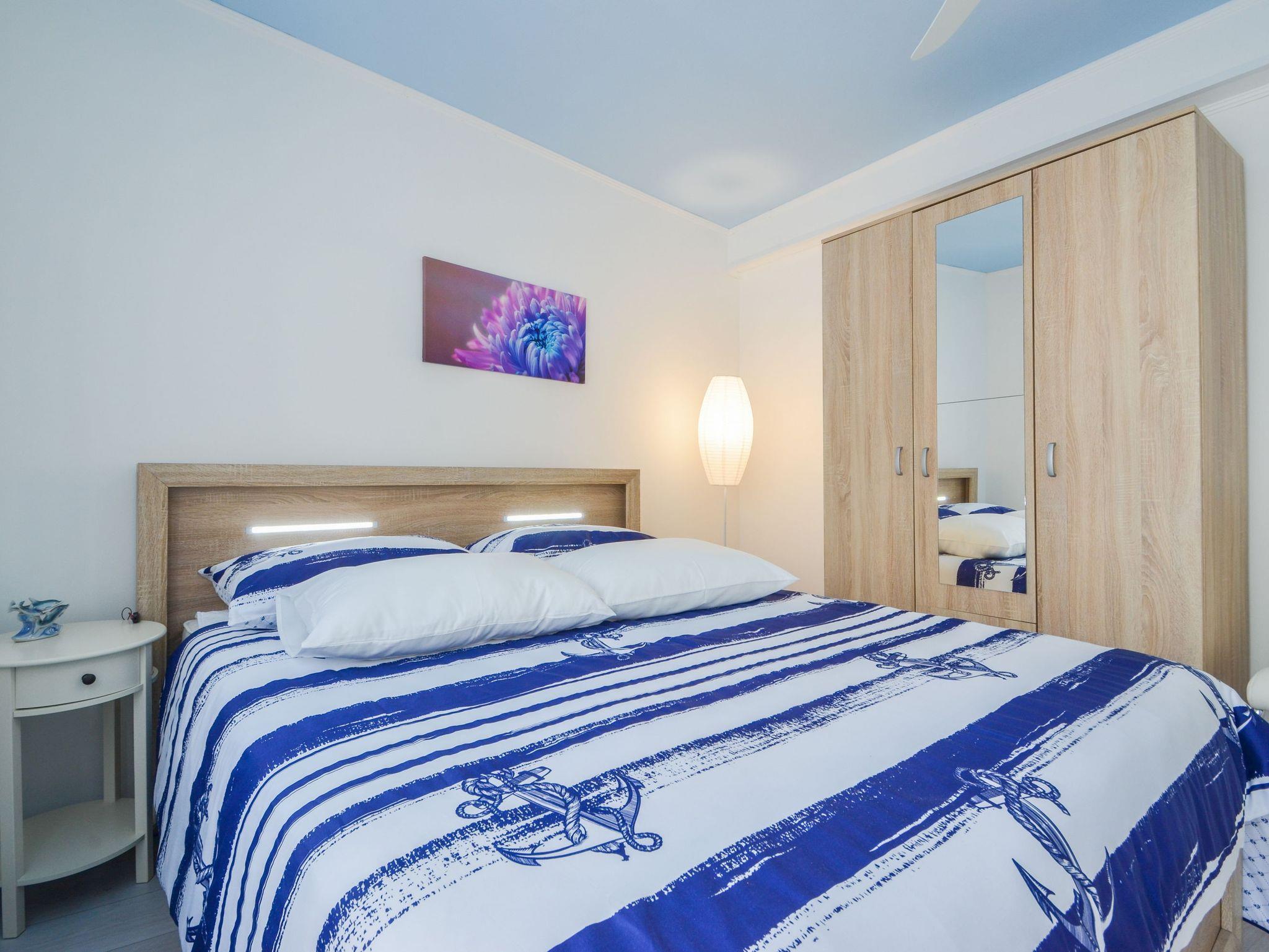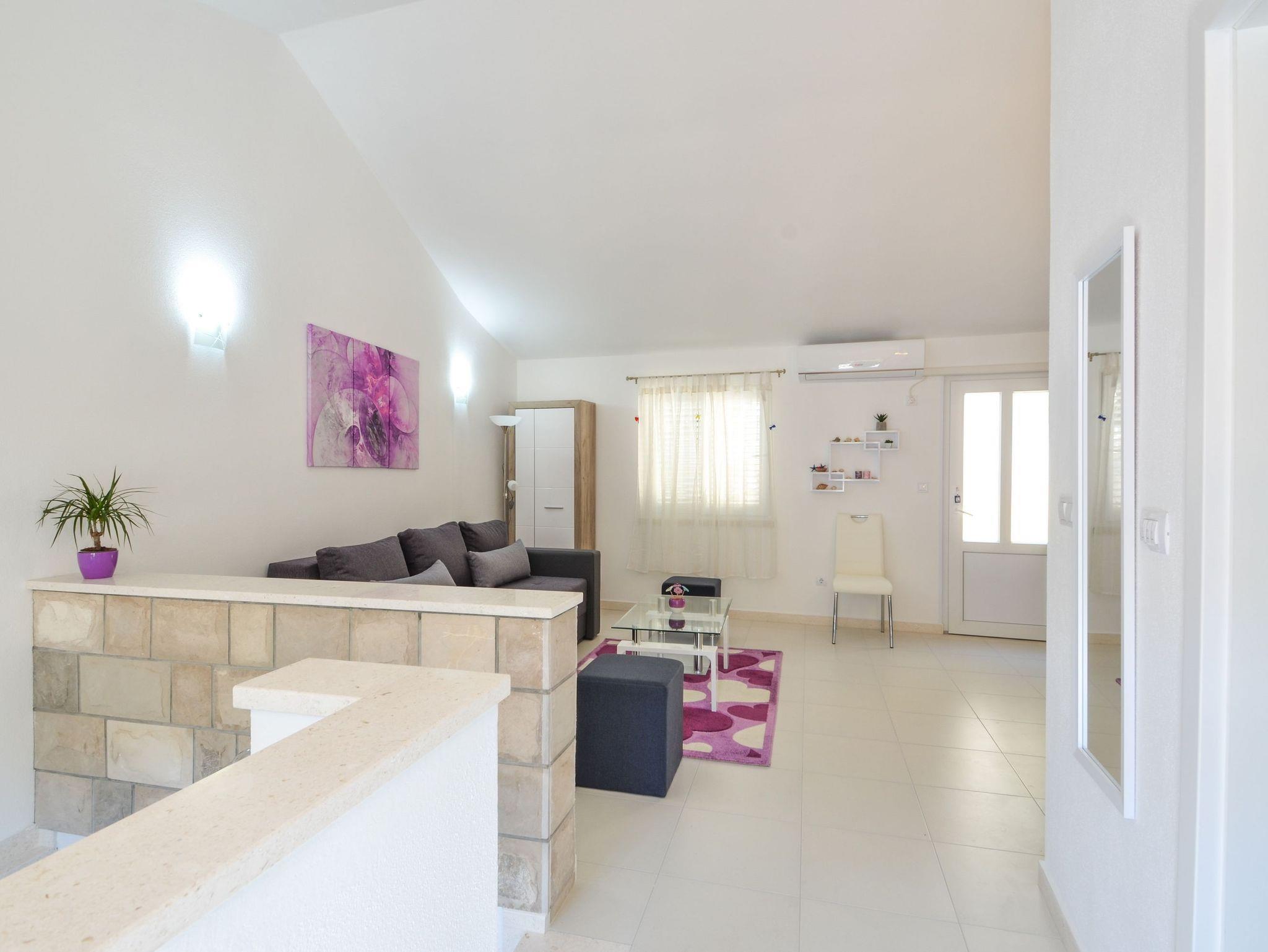Haus bietet Platz für 4 Gäste. Die Betten sind in Schlafzimmern, die es 1 gibt, und in Wohnzimmer, innerhalb einer Gesamtfläche von 89m2, angeordnet. Die Gäste haben eine eigene Terrasse zur Verfügung, auf der sie in warmen Sommernächten genießen können. Das Haus bietet Meerblick. IM PREIS INBEGRIFFEN: Kurtaxe, Endreinigung, Klimatisierung, Parkplatz, Internet, Bügeleisen, Bügelbrett, Föhn. VERBINDLICHE ZUSÄTZLICHE KOSTEN: Aufzahlung für Kurzaufenthalte (prozentualer Zuschlag pro Nächtigungsanzahl: 30% - 1, 20% - 2, 10% - 3). Die Verfügbarkeit zusätzlicher Dienstleistungen in Ihrem reservierten Termin und die Preise derselben (falls nicht aufgeführt) müssen im Voraus überprüft werden. Zusätzliche Dienstleistungen die in der Zahlungsaufforderung nicht aufgeführt sind werden direkt beim Vermieter bezahlt, angenommen der Gast nutzt auch diese. Ermäßigung auf den Grundpreis: Gratistag 21=19 (bei einem Aufenthalt von 21 Tagen oder mehr erhalten Sie 2 Gratistage für den Aufenthalt bis 31.12.26).
