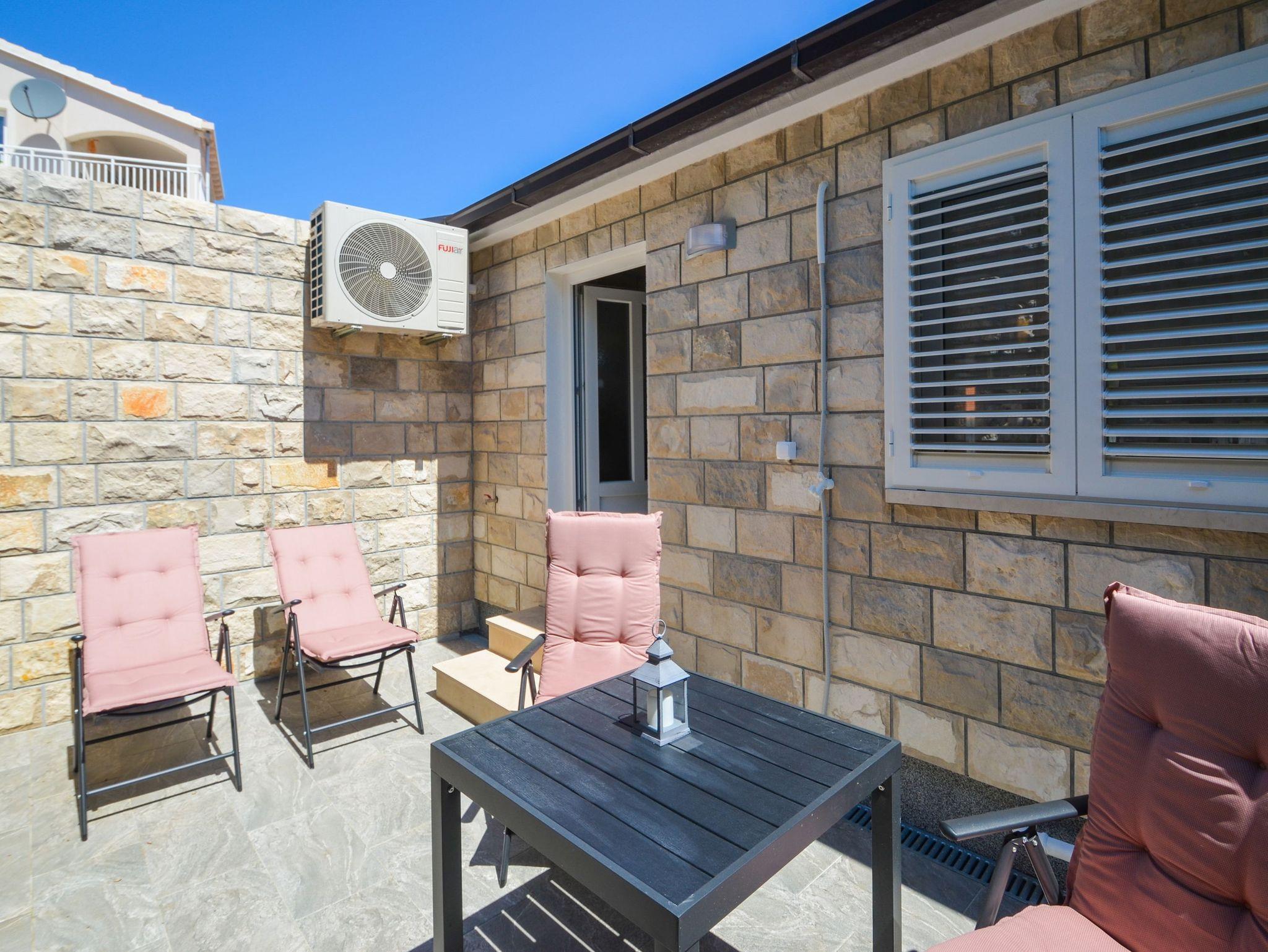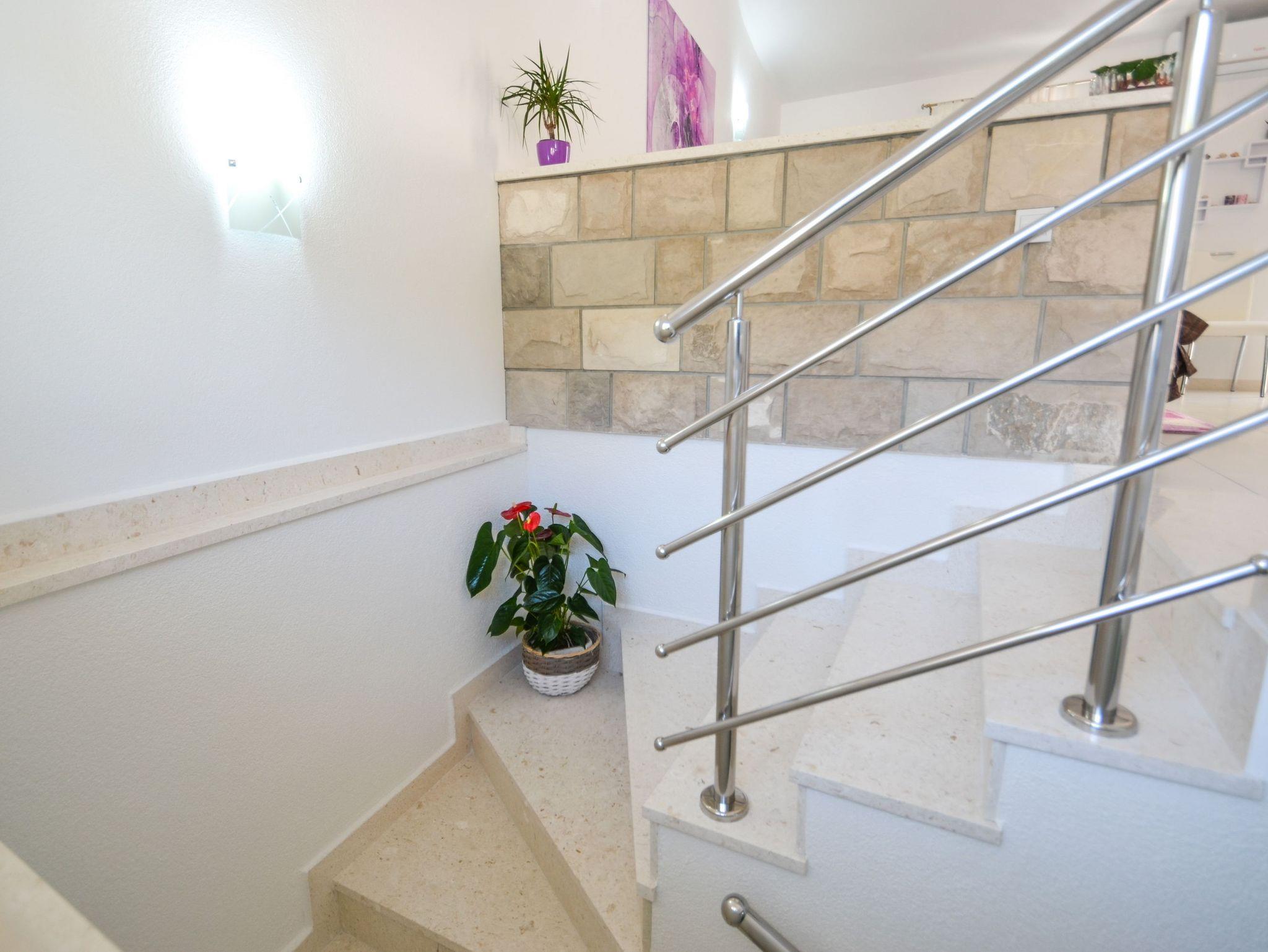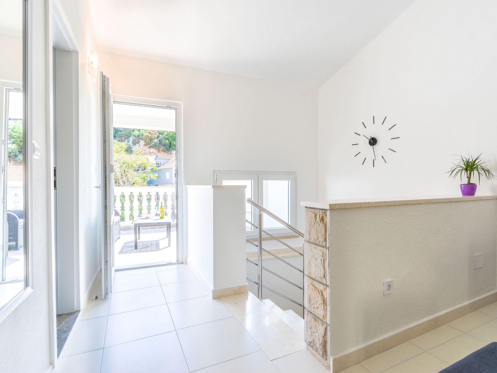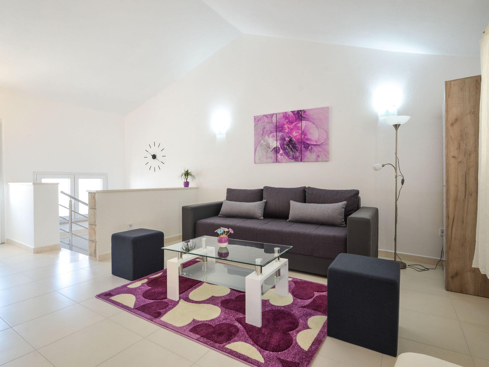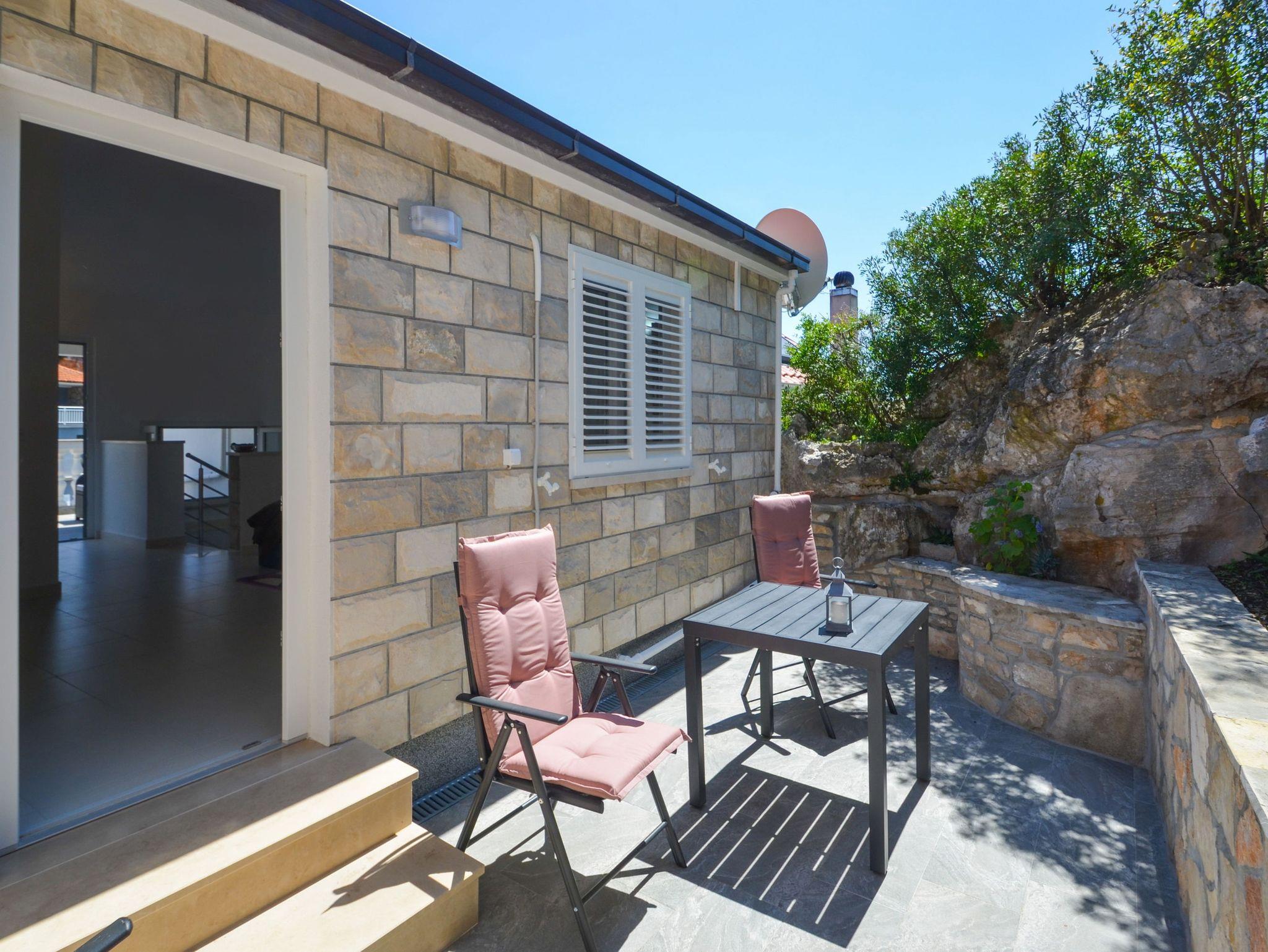 Haus bietet Platz für 4 Gäste. Die Betten sind in Schlafzimmern, die es 1 gibt, und in Wohnzimmer, innerhalb einer Gesamtfläche von 89m2, angeordnet. Die Gäste haben eine eigene Terrasse zur Verfügung, auf der sie in warmen Sommernächten genießen können. Das Haus bietet Meerblick. IM PREIS INBEGRIFFEN: Kurtaxe, Endreinigung, Klimatisierung, Parkplatz, Internet, Bügeleisen, Bügelbrett, Föhn. VERBINDLICHE ZUSÄTZLICHE KOSTEN: Aufzahlung für Kurzaufenthalte (prozentualer Zuschlag pro Nächtigungsanzahl: 30% - 1, 20% - 2, 10% - 3). Die Verfügbarkeit zusätzlicher Dienstleistungen in Ihrem reservierten Termin und die Preise derselben (falls nicht aufgeführt) müssen im Voraus überprüft werden. Zusätzliche Dienstleistungen die in der Zahlungsaufforderung nicht aufgeführt sind werden direkt beim Vermieter bezahlt, angenommen der Gast nutzt auch diese. Ermäßigung auf den Grundpreis: Gratistag 21=19 (bei einem Aufenthalt von 21 Tagen oder mehr erhalten Sie 2 Gratistage für den Aufenthalt bis 31.12.26).