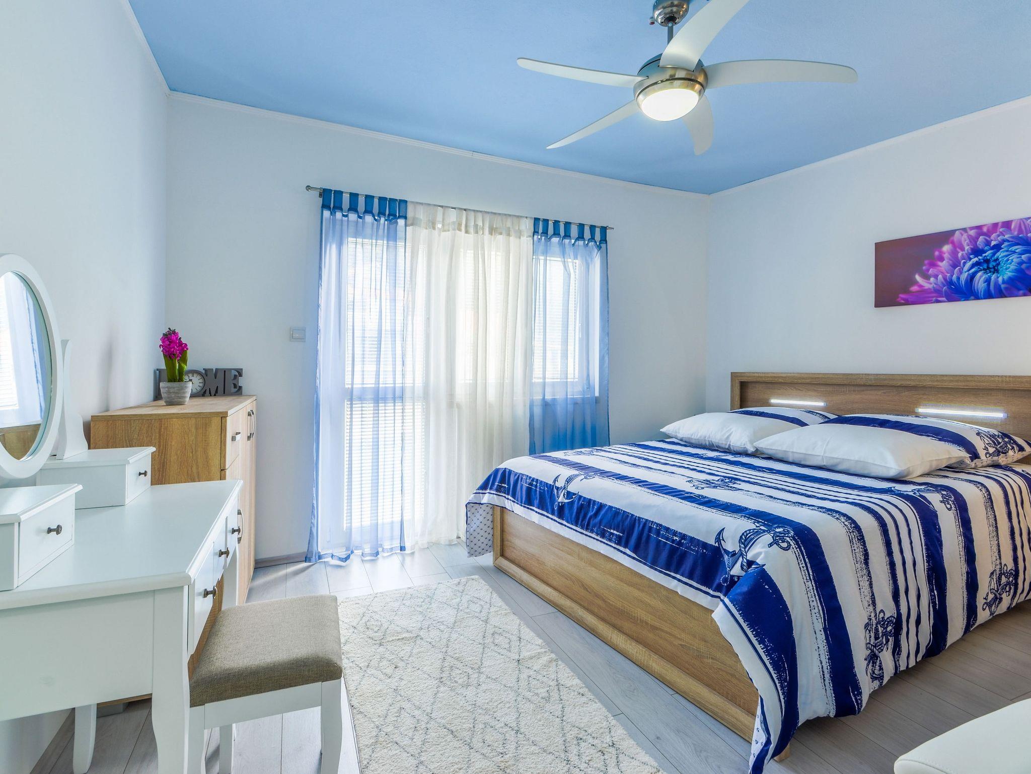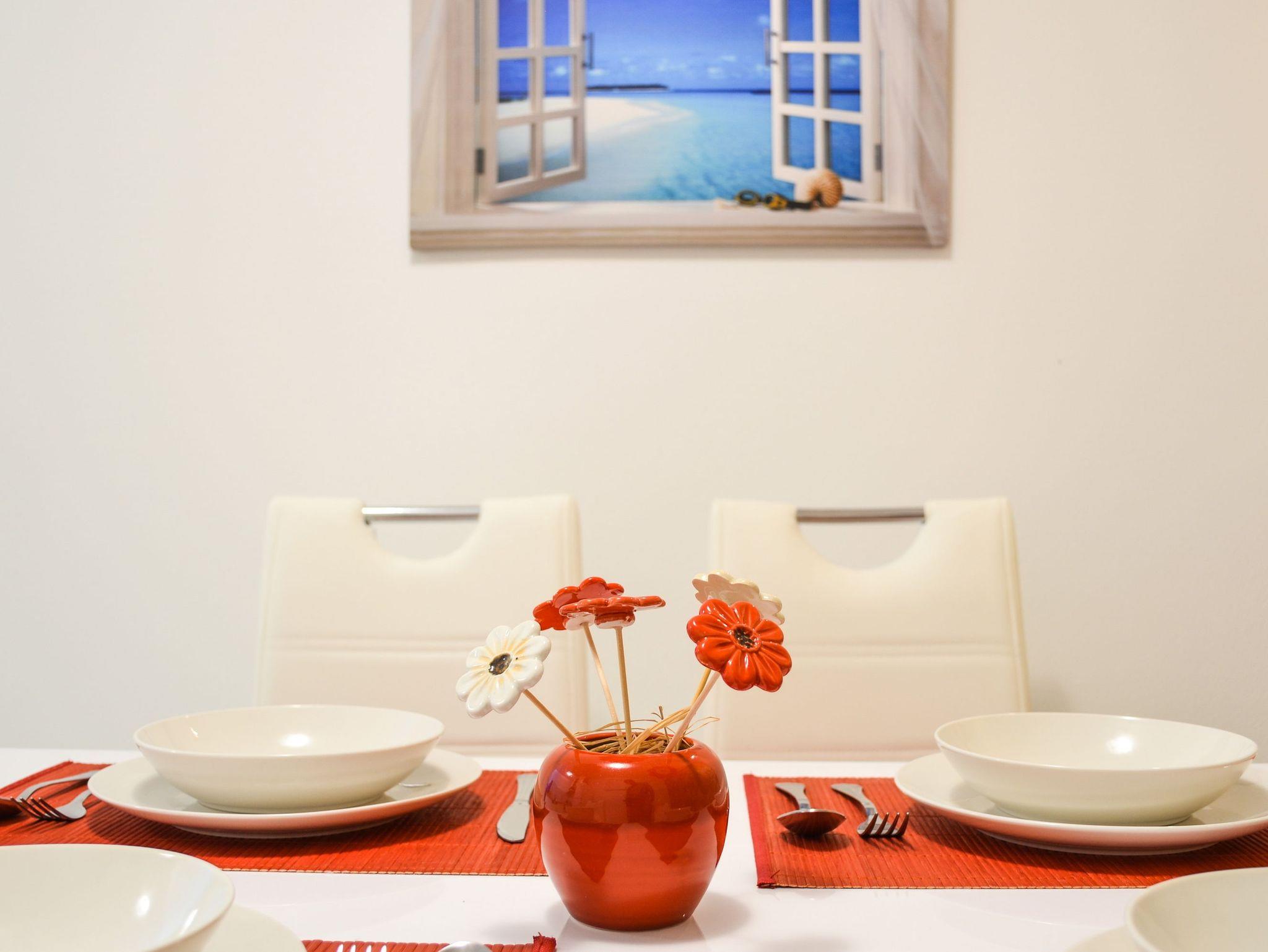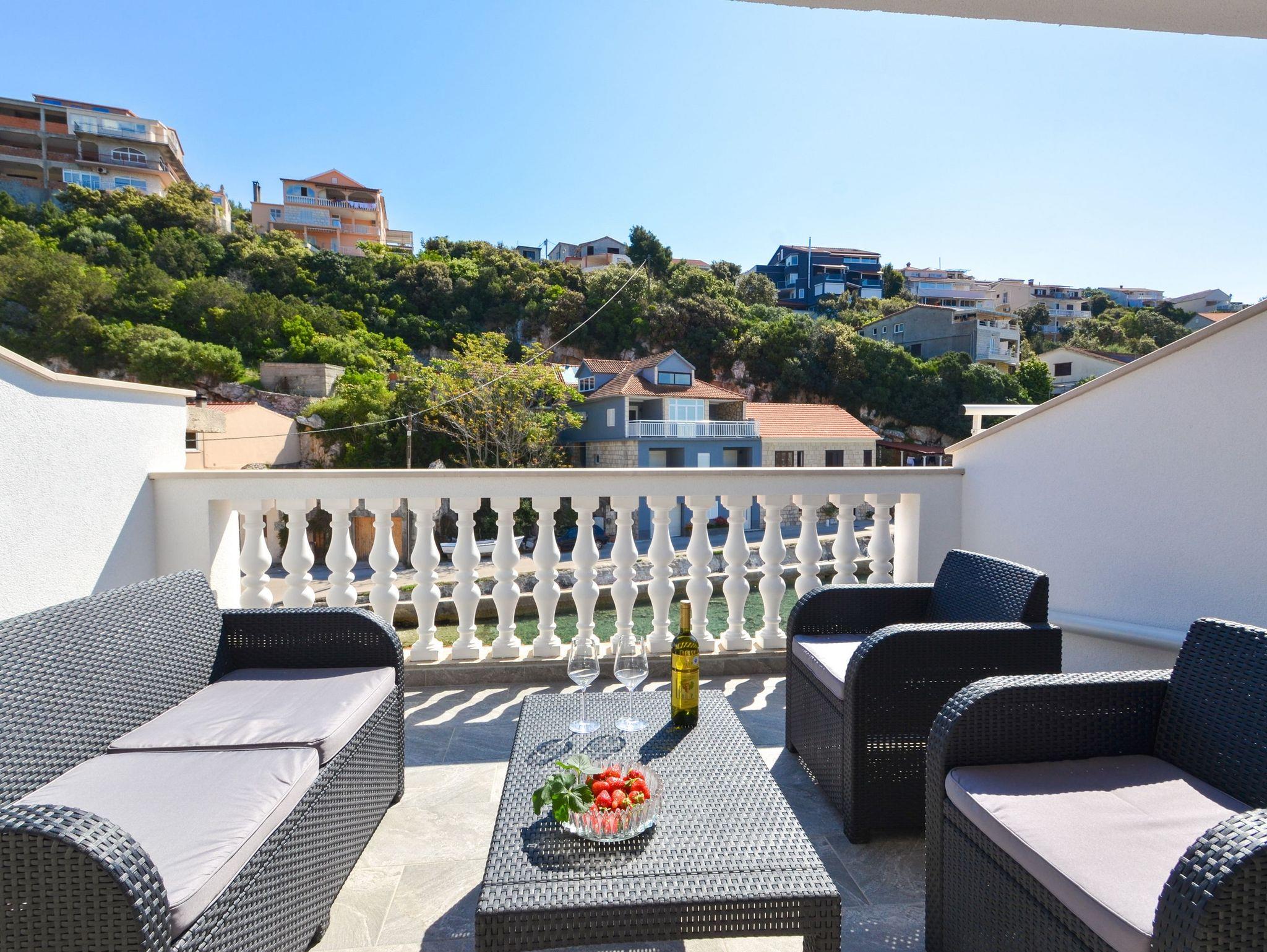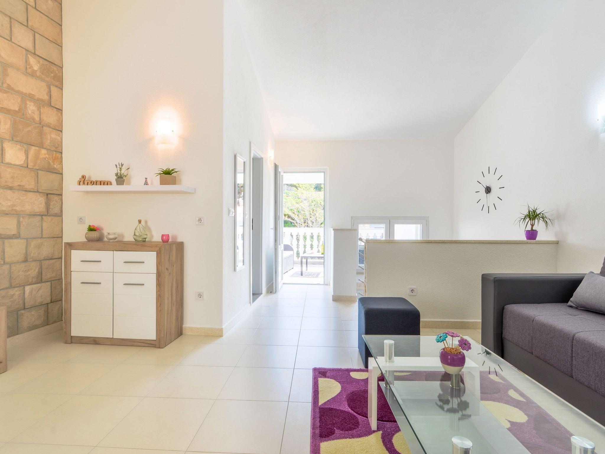 Haus bietet Platz für 4 Gäste. Die Betten sind in Schlafzimmern, die es 1 gibt, und in Wohnzimmer, innerhalb einer Gesamtfläche von 89m2, angeordnet. Die Gäste haben eine eigene Terrasse zur Verfügung, auf der sie in warmen Sommernächten genießen können. Das Haus bietet Meerblick. IM PREIS INBEGRIFFEN: Kurtaxe, Endreinigung, Klimatisierung, Parkplatz, Internet, Bügeleisen, Bügelbrett, Föhn. VERBINDLICHE ZUSÄTZLICHE KOSTEN: Aufzahlung für Kurzaufenthalte (prozentualer Zuschlag pro Nächtigungsanzahl: 30% - 1, 20% - 2, 10% - 3). Die Verfügbarkeit zusätzlicher Dienstleistungen in Ihrem reservierten Termin und die Preise derselben (falls nicht aufgeführt) müssen im Voraus überprüft werden. Zusätzliche Dienstleistungen die in der Zahlungsaufforderung nicht aufgeführt sind werden direkt beim Vermieter bezahlt, angenommen der Gast nutzt auch diese. Ermäßigung auf den Grundpreis: Gratistag 21=19 (bei einem Aufenthalt von 21 Tagen oder mehr erhalten Sie 2 Gratistage für den Aufenthalt bis 31.12.26).