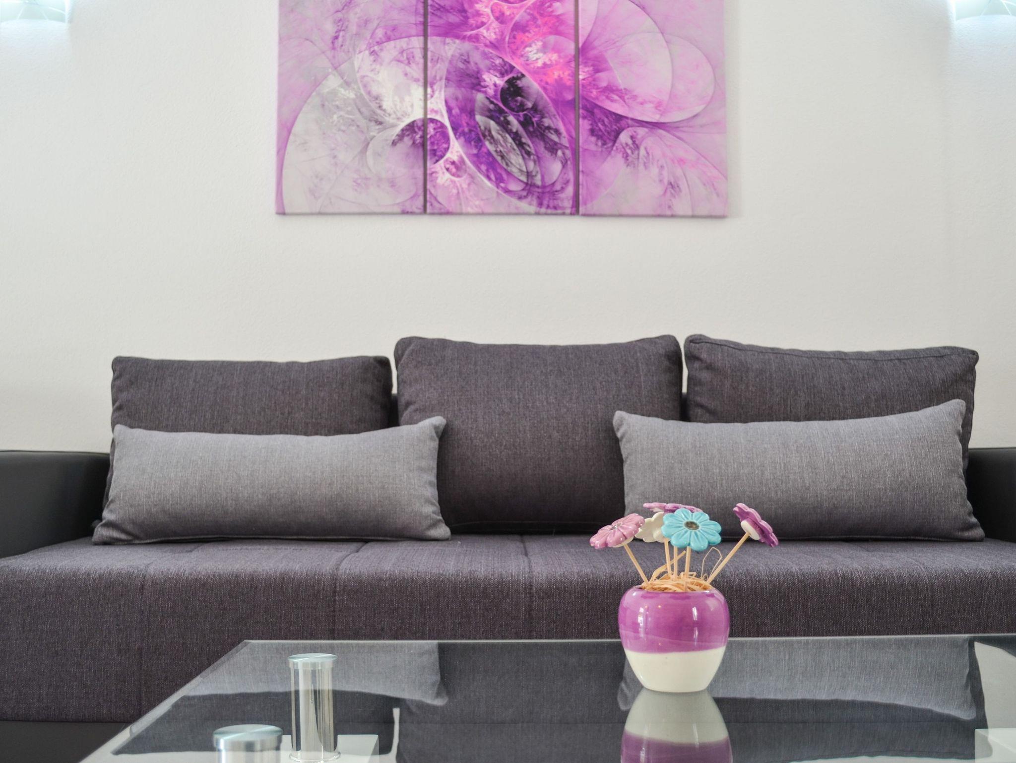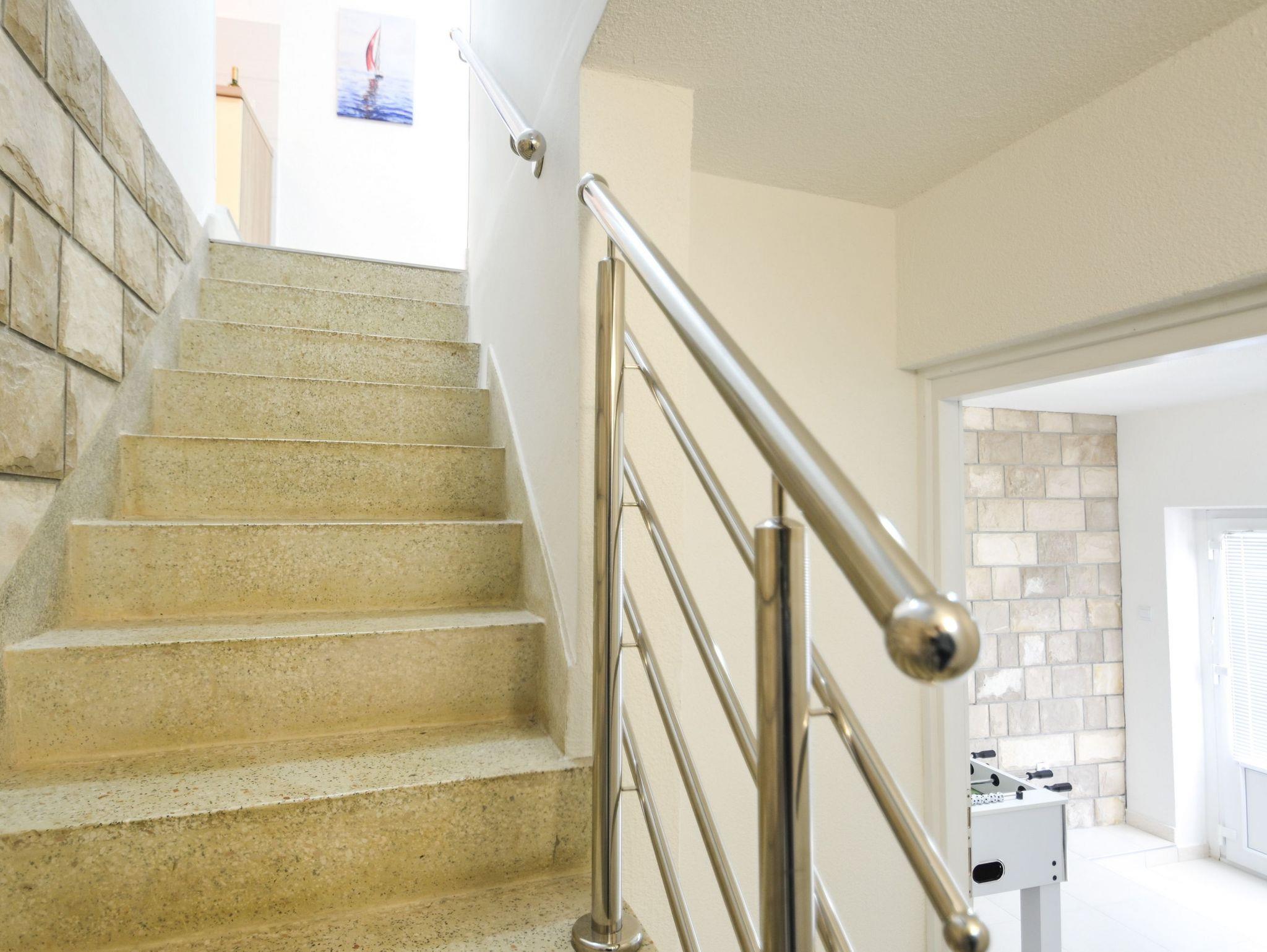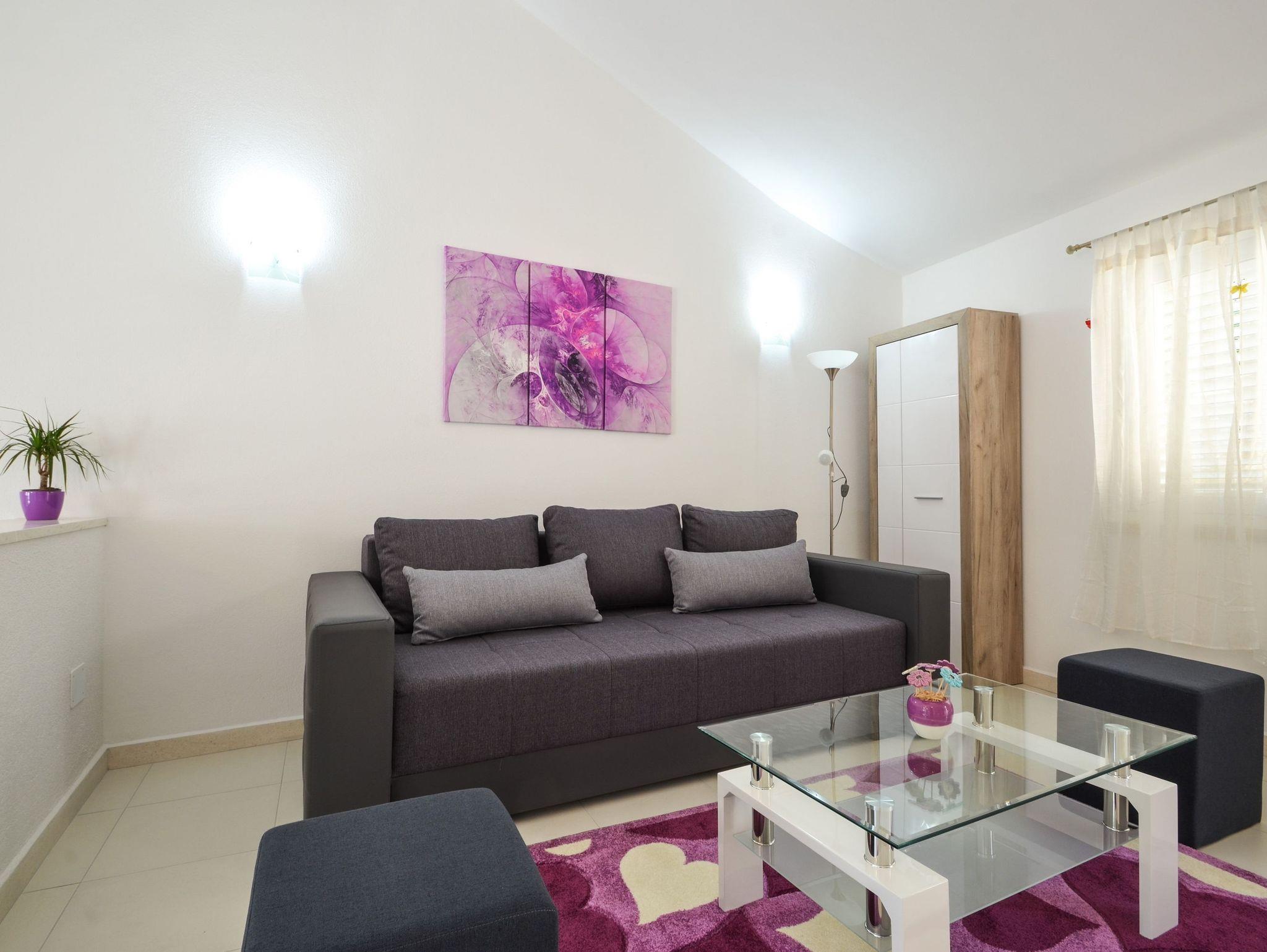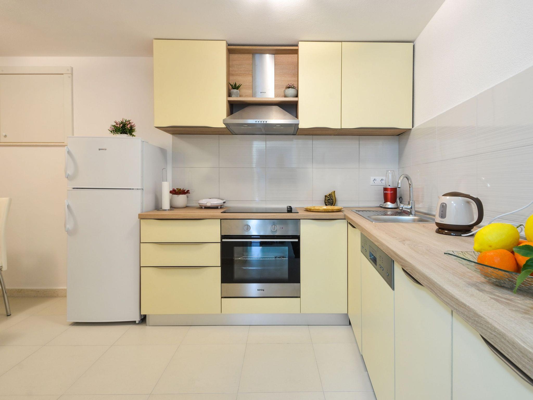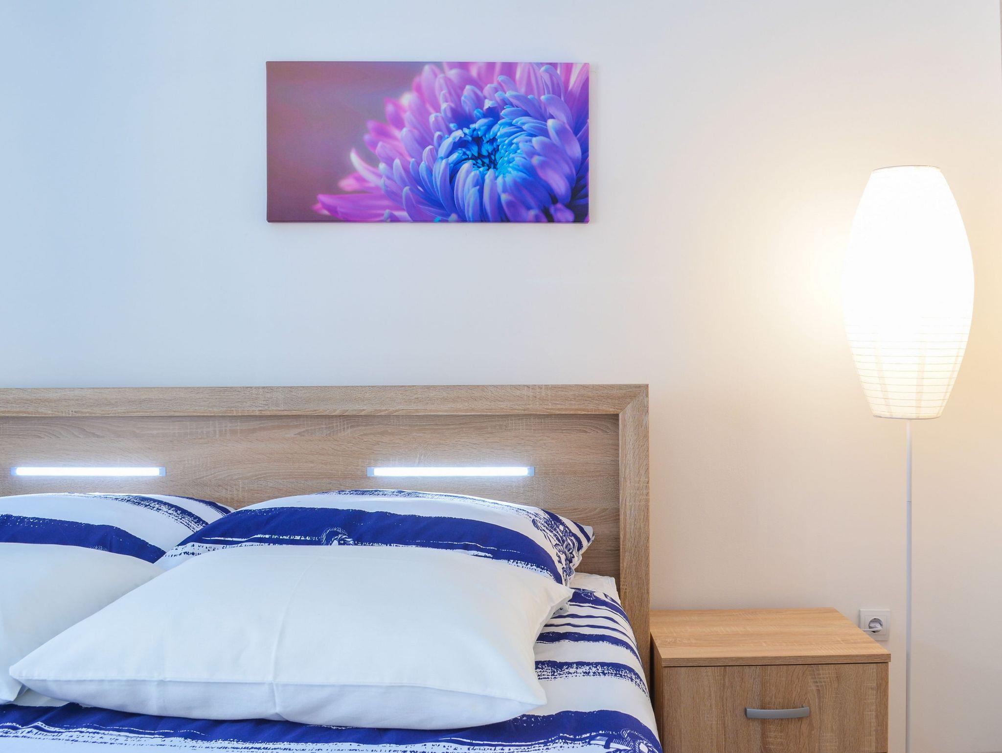 Haus bietet Platz für 4 Gäste. Die Betten sind in Schlafzimmern, die es 1 gibt, und in Wohnzimmer, innerhalb einer Gesamtfläche von 89m2, angeordnet. Die Gäste haben eine eigene Terrasse zur Verfügung, auf der sie in warmen Sommernächten genießen können. Das Haus bietet Meerblick. IM PREIS INBEGRIFFEN: Kurtaxe, Endreinigung, Klimatisierung, Parkplatz, Internet, Bügeleisen, Bügelbrett, Föhn. VERBINDLICHE ZUSÄTZLICHE KOSTEN: Aufzahlung für Kurzaufenthalte (prozentualer Zuschlag pro Nächtigungsanzahl: 30% - 1, 20% - 2, 10% - 3). Die Verfügbarkeit zusätzlicher Dienstleistungen in Ihrem reservierten Termin und die Preise derselben (falls nicht aufgeführt) müssen im Voraus überprüft werden. Zusätzliche Dienstleistungen die in der Zahlungsaufforderung nicht aufgeführt sind werden direkt beim Vermieter bezahlt, angenommen der Gast nutzt auch diese. Ermäßigung auf den Grundpreis: Gratistag 21=19 (bei einem Aufenthalt von 21 Tagen oder mehr erhalten Sie 2 Gratistage für den Aufenthalt bis 31.12.26).