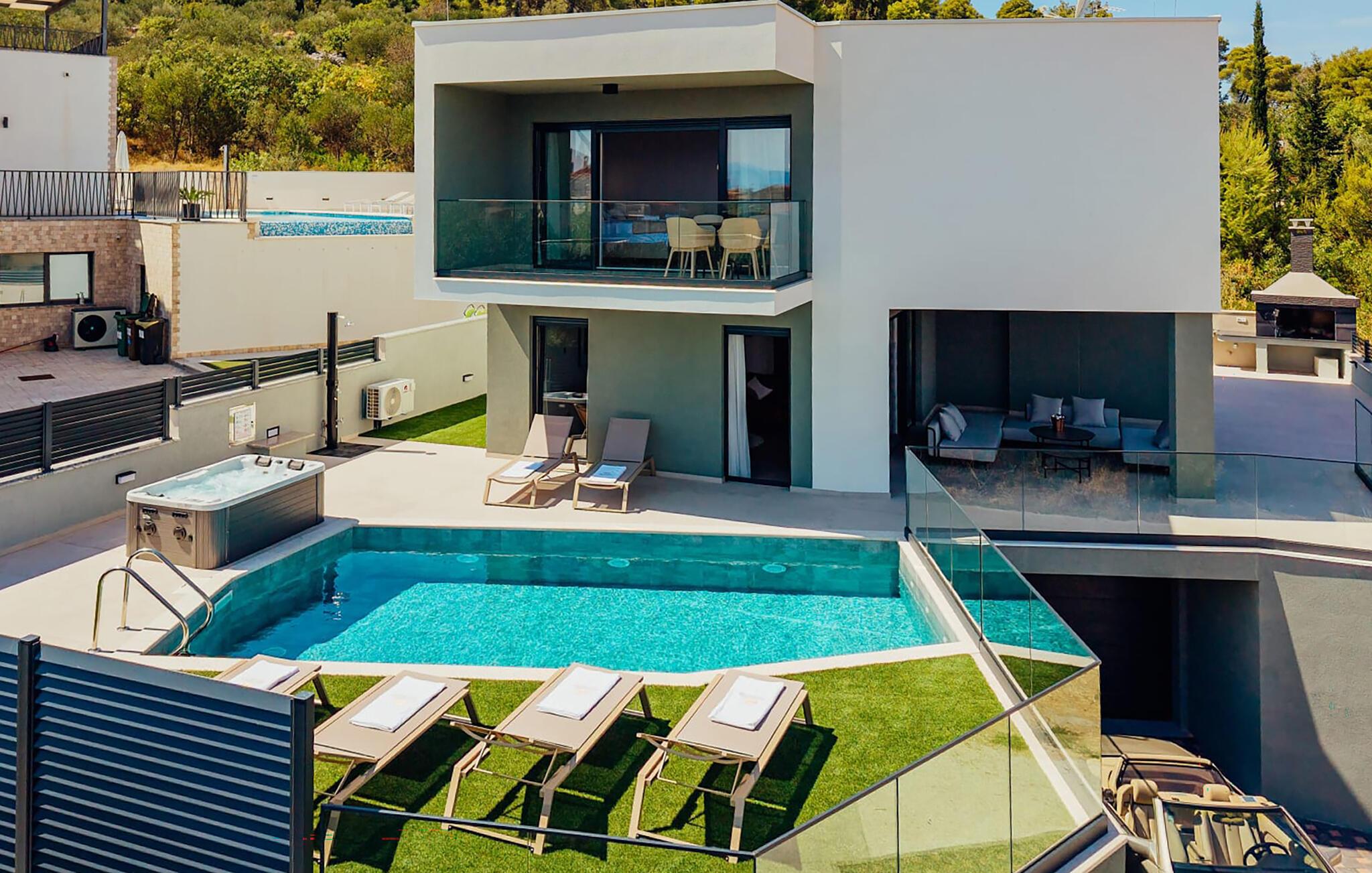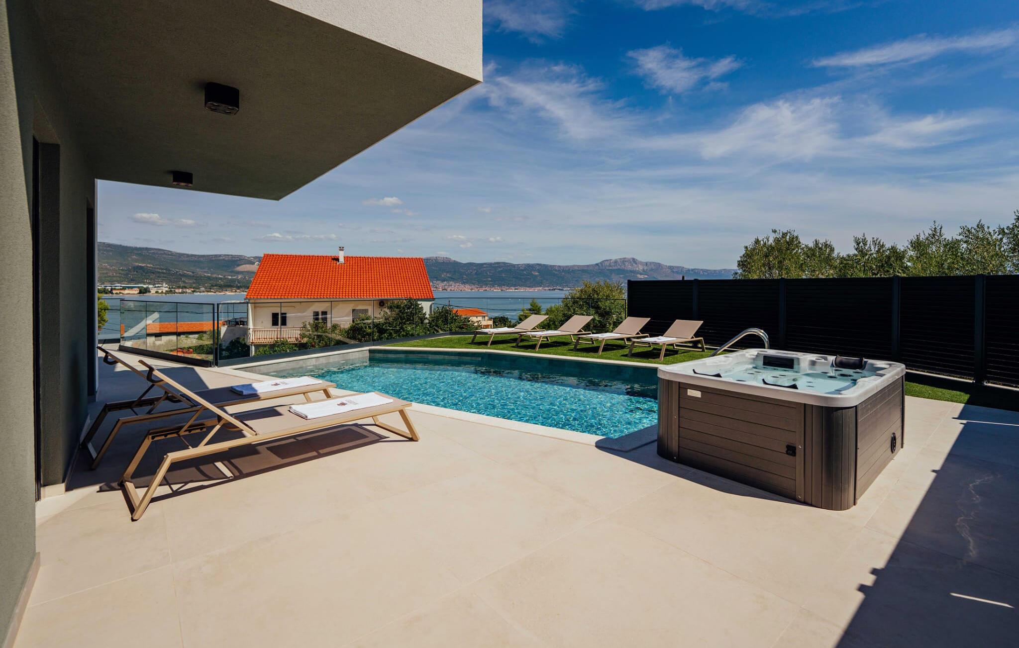 Genießen Sie herrliche Stunden im Freien, nehmen Sie ein Sonnenbad auf einer der Terrassen, lassen Sie sich von der Aussicht verzaubern und schwimmen Sie nach Herzenslust im Pool.