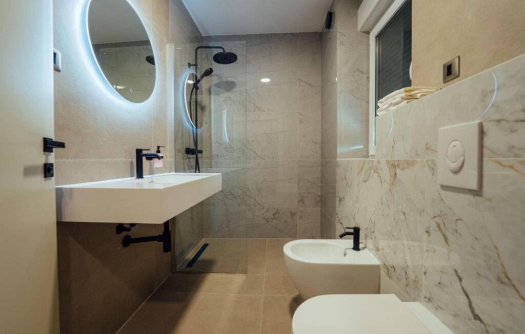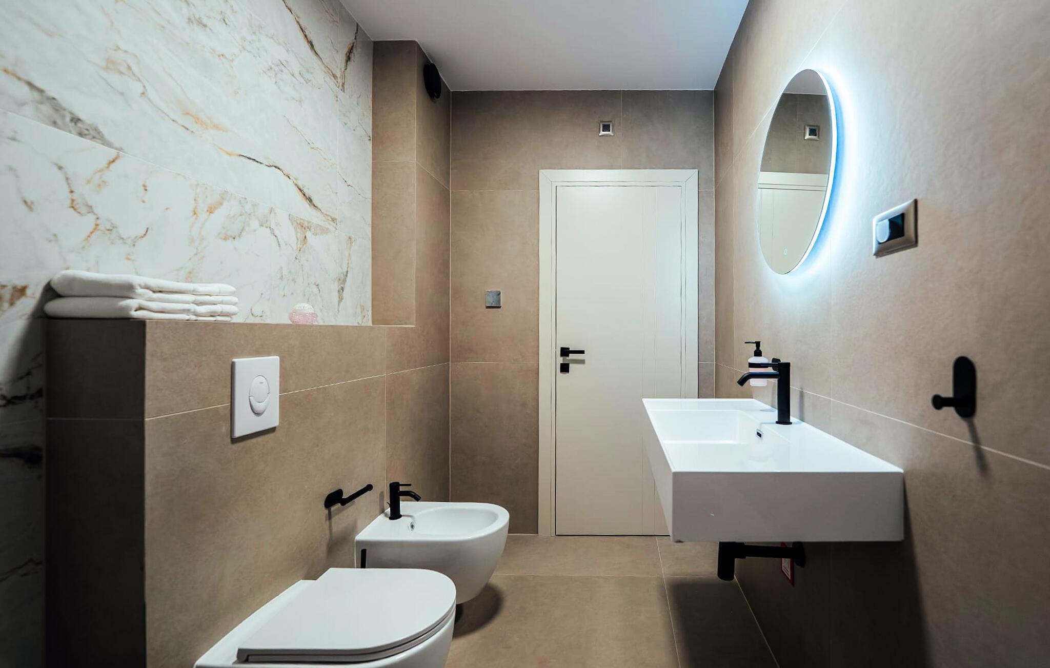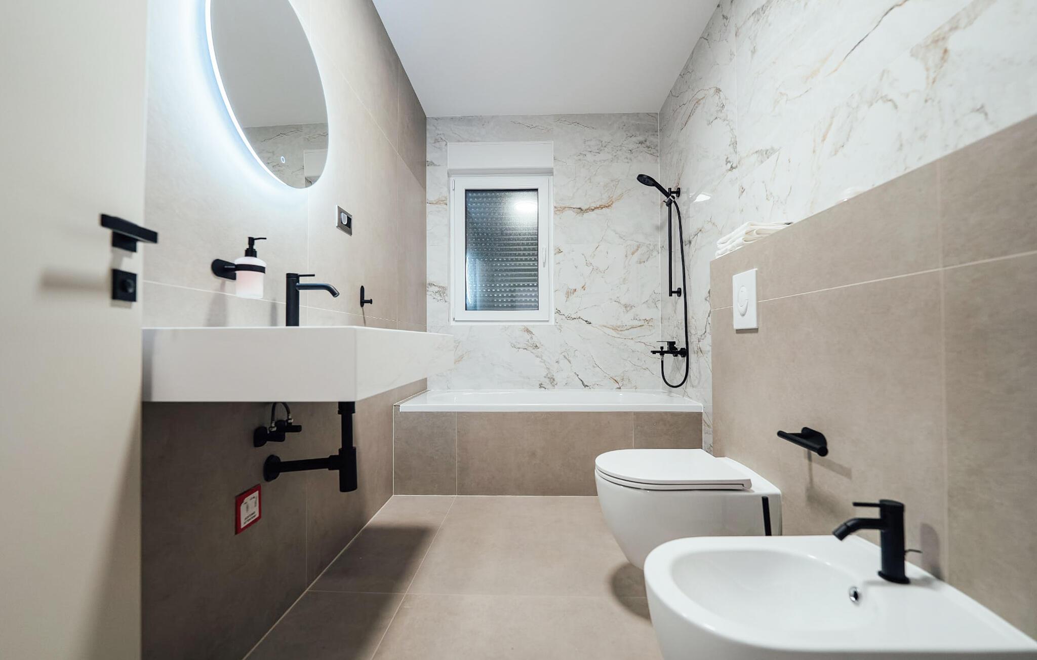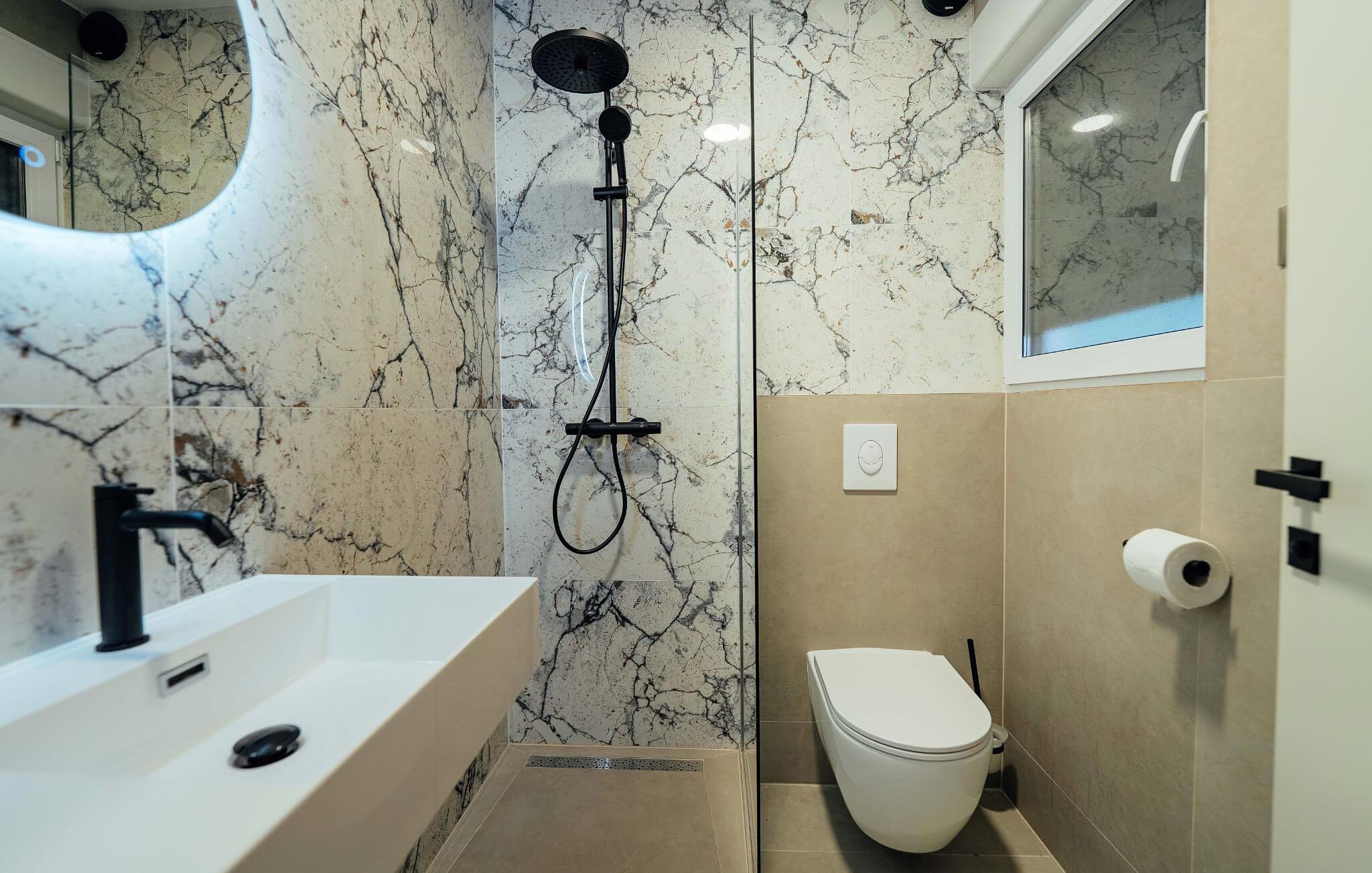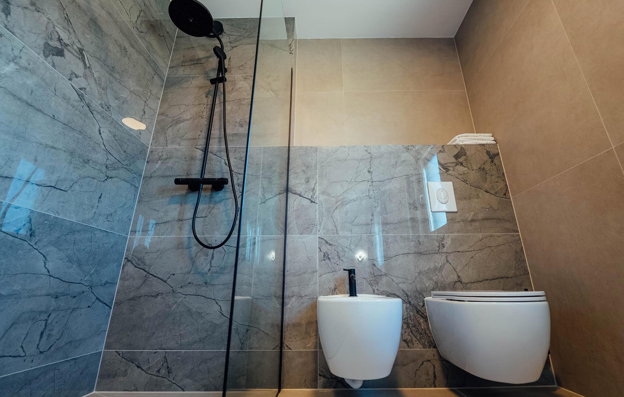 - WC mit warmem und kaltem Wasser, Dusche und Badewanne