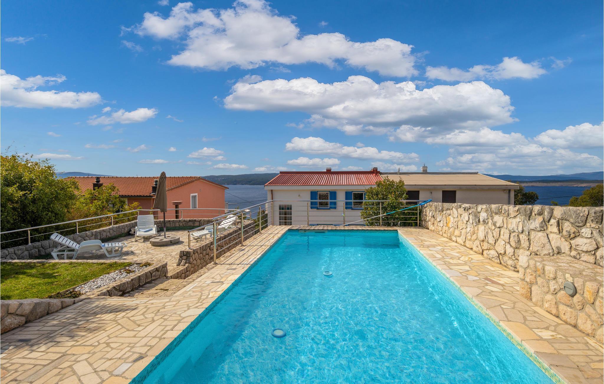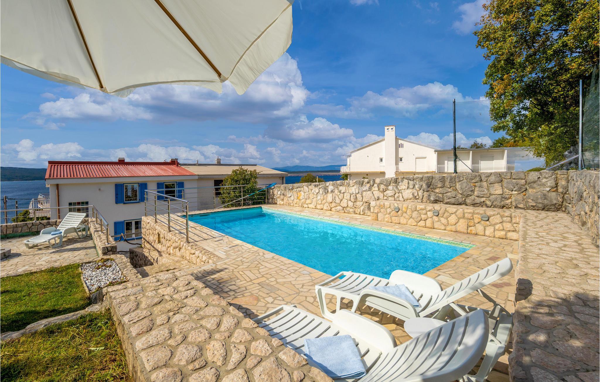 Hinter der Ortschaft Dramalj liegt dieses Doppelhaus mit herrlichem Ausblick, parat für Ihren Urlaub. Erfrischen Sie sich im Swimmingpool und sonnen sich auf der Terrasse hinterm Haus. Darunter befinden sich der überdachte Raum für geselliges Stunden und der Grill. Das Haus erstreckt sich auf zwei Etagen mit je einer Wohneinheit, die mit Innentreppen verbunden sind. Entlang der 8 km langen Riviera von Crikvenica gibt es sehr viele schöne Kiesstrände und natürlich den Sandstrand in Crikvenica, den Sie auf keinen Fall versäumen dürfen. Schlendern Sie die Promenade entlang, die von Dramalj bis nach Selce reicht, mit zahlreichen Shops, Café Bars und Restaurants. Wir empfehlen Ihnen auch Ausflüge auf die Insel Krk.