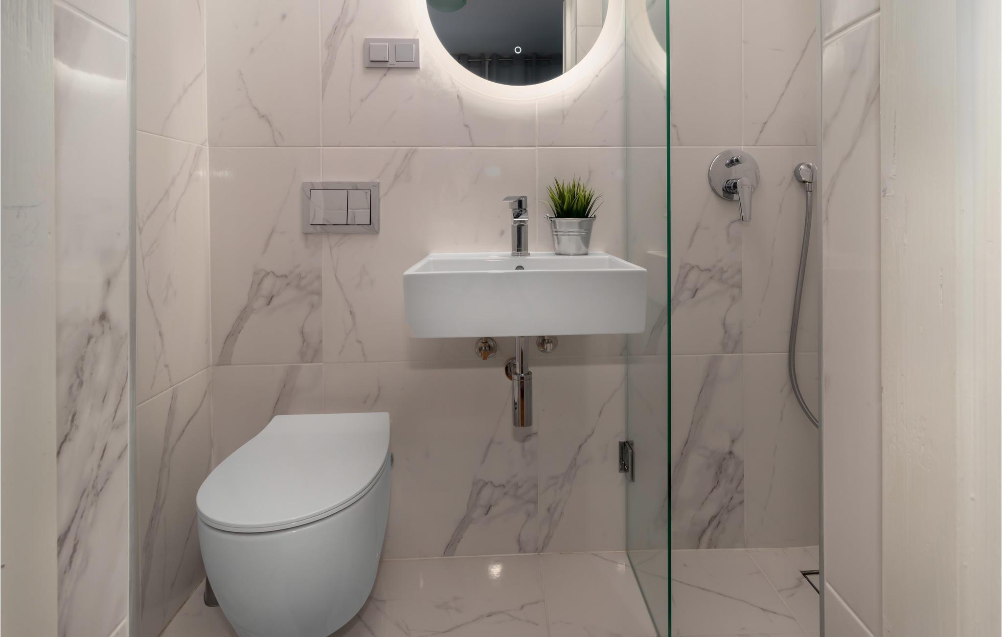 Badezimmer (nr. 4) - WC. Warmes und kaltes Wasser. Dusche