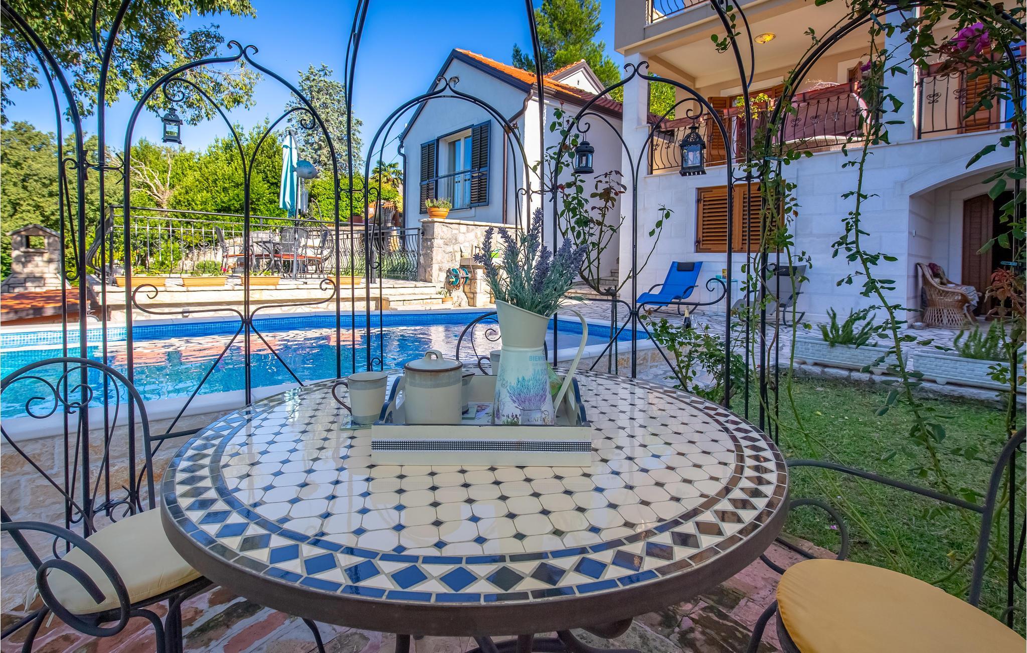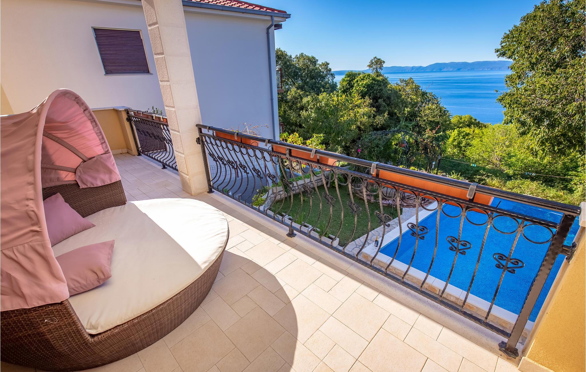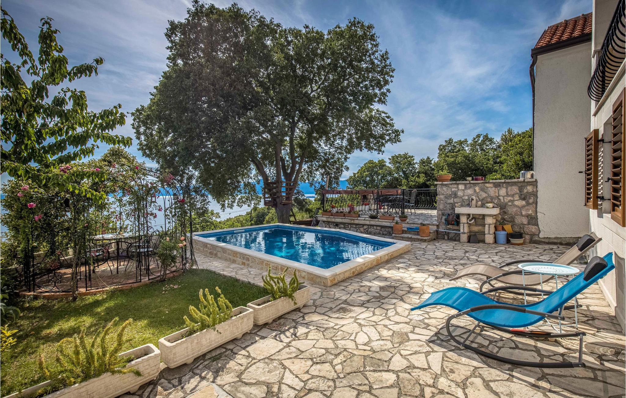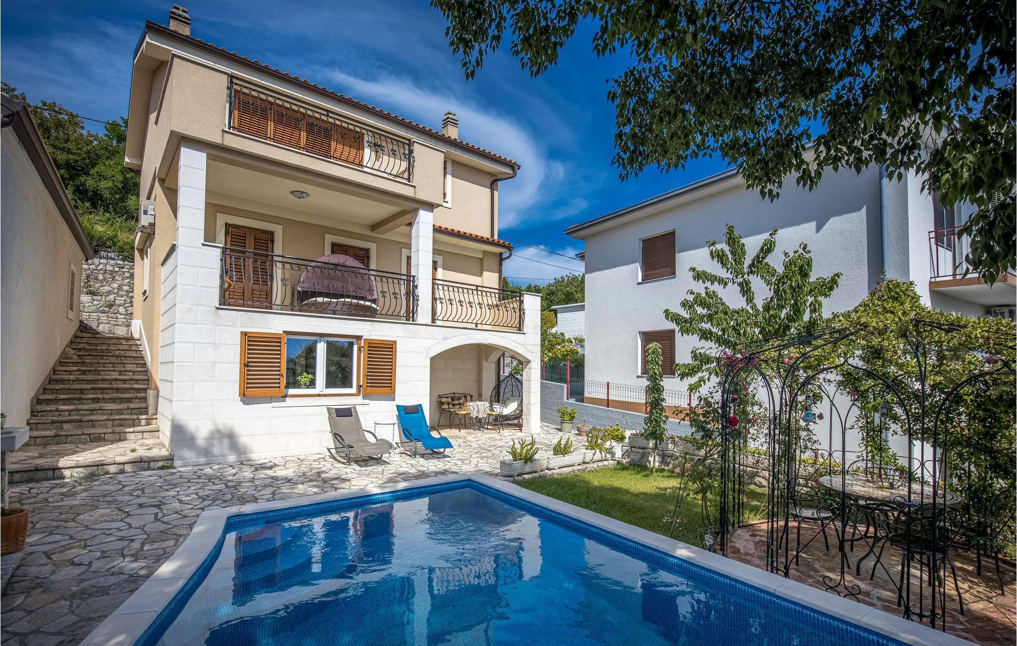 Im kleinen Ort Kostrena, der für seine Seefahrer und Kapitäne bekannt ist, befindet sich dieses schöne Ferienhaus mit Pool. Vom Garten und der Terrasse aus bietet sich ein wunderbarer Blick auf das Meer und die Insel Krk. Im Garten erwartet Sie ein Pool, der an heißen Sommertagen Erfrischung bietet. Das Erdgeschoss verfügt über eine Küche mit Essbereich, im Obergeschoss befinden sich die Schlafzimmer mit Badezimmern. Das Dachgeschoss ist geschlossen und wird nicht genutzt. Die jüngsten Gäste können sich an der Schaukel und dem Klettergerüst am Baum erfreuen, während die Erwachsenen auf einer der Terrassen entspannen oder köstliche Grillmahlzeiten zubereiten. Das Meer ist in wenigen Autominuten erreichbar. Empfehlenswert ist ein Besuch der Insel Krk oder der Stadt Crikvenica.