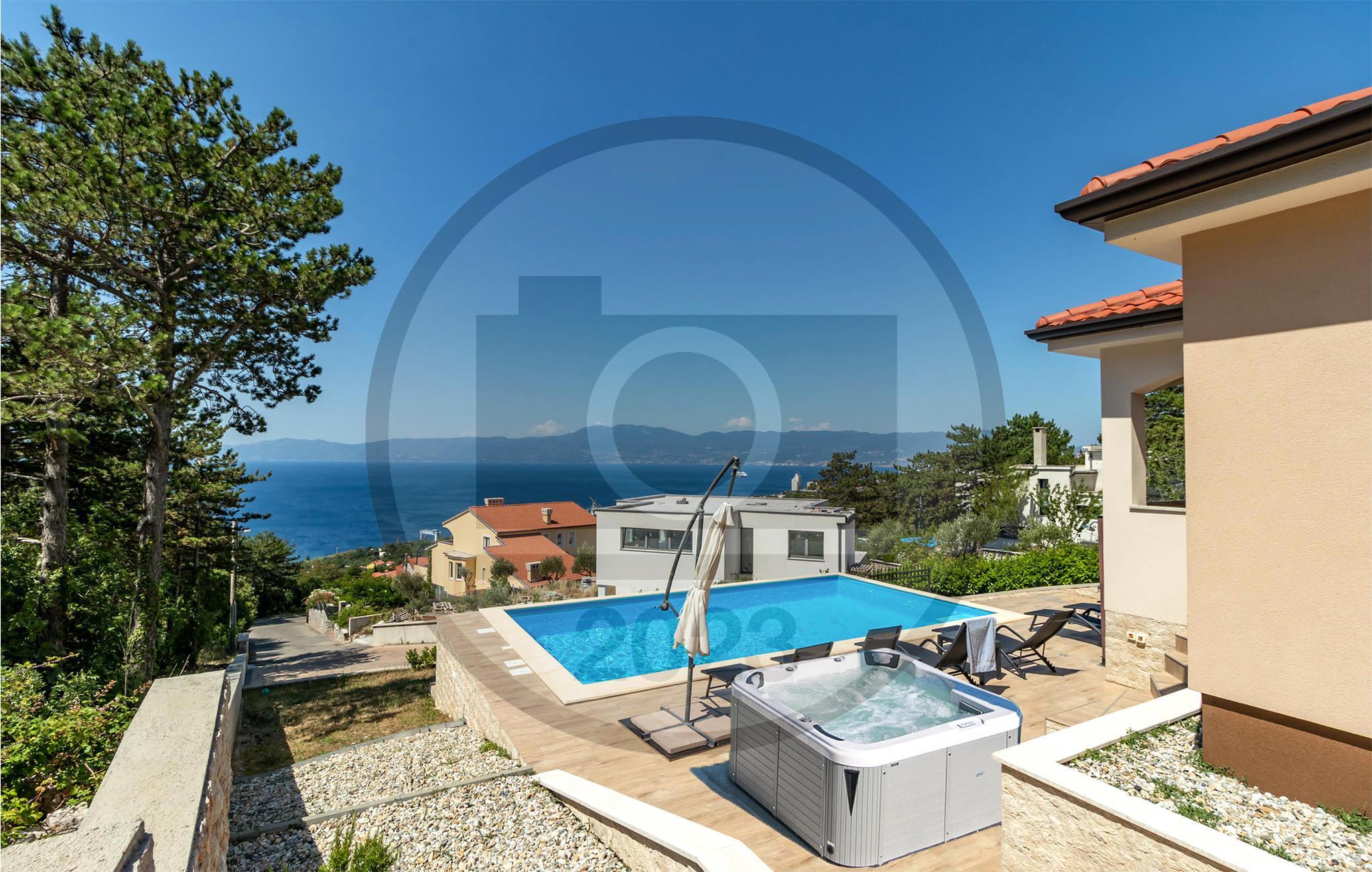 Das Haus erwartet seine Gäste in Kostrena bei Rijeka und Crikvenica in abgelegener Lage und bezaubert mit einem Pool und Meerblick. Es eignet sich ideal für zwei Familien, die gemeinsam Urlaub machen und dabei auch Privatsphäre genießen möchten. Das Haus ist komplett eingerichtet und modern ausgestattet Die Küche und der Wohnbereich öffnen sich direkt auf die überdachte Terrasse.
