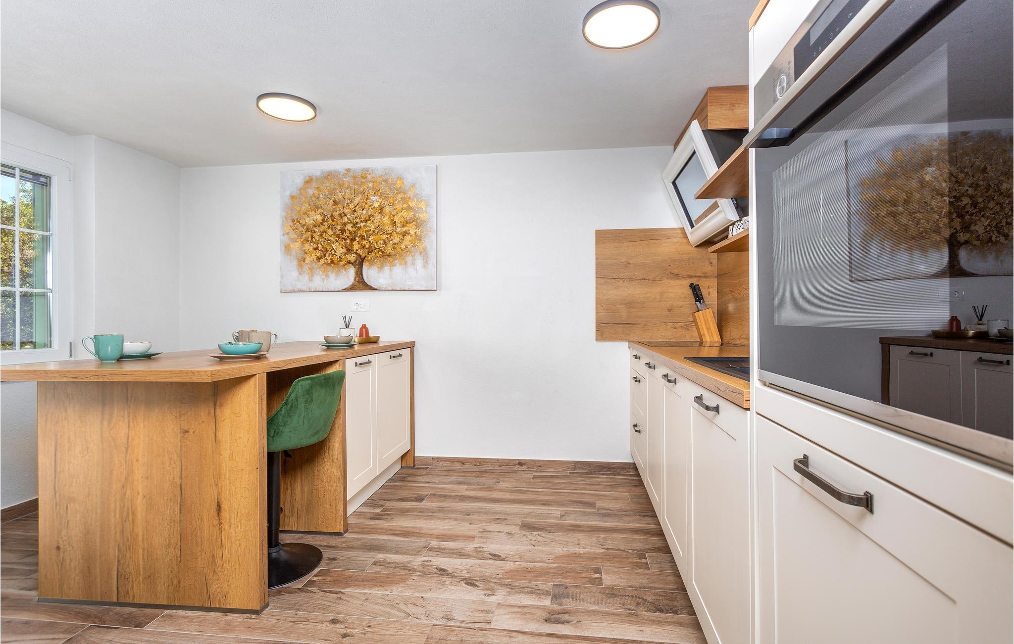Genießen Sie mit Ihrer Familie einen unvergesslichen Urlaub in Smrika und diesem einladenden Haus. Hier werden Urlaubsträume wahr und Sie können sich in den geschmackvoll eingerichteten Räumen des Hauses. Ansprechende Möbel und stilvolle Dekoration runden das Wohnerlebnis ab. Sie können selbst entscheiden, ob Sie im Haus oder in der Außenküche auf der großen überdachten Terrasse kochen wollen. Verbringen Sie auch viel zeit im Freien der große Hof vor dem Haus und die Terrasse mit Pool sind ein großartiger Ort, um im Wasser und in der Sonne zu faulenzen und den Ausblick zu genießen.