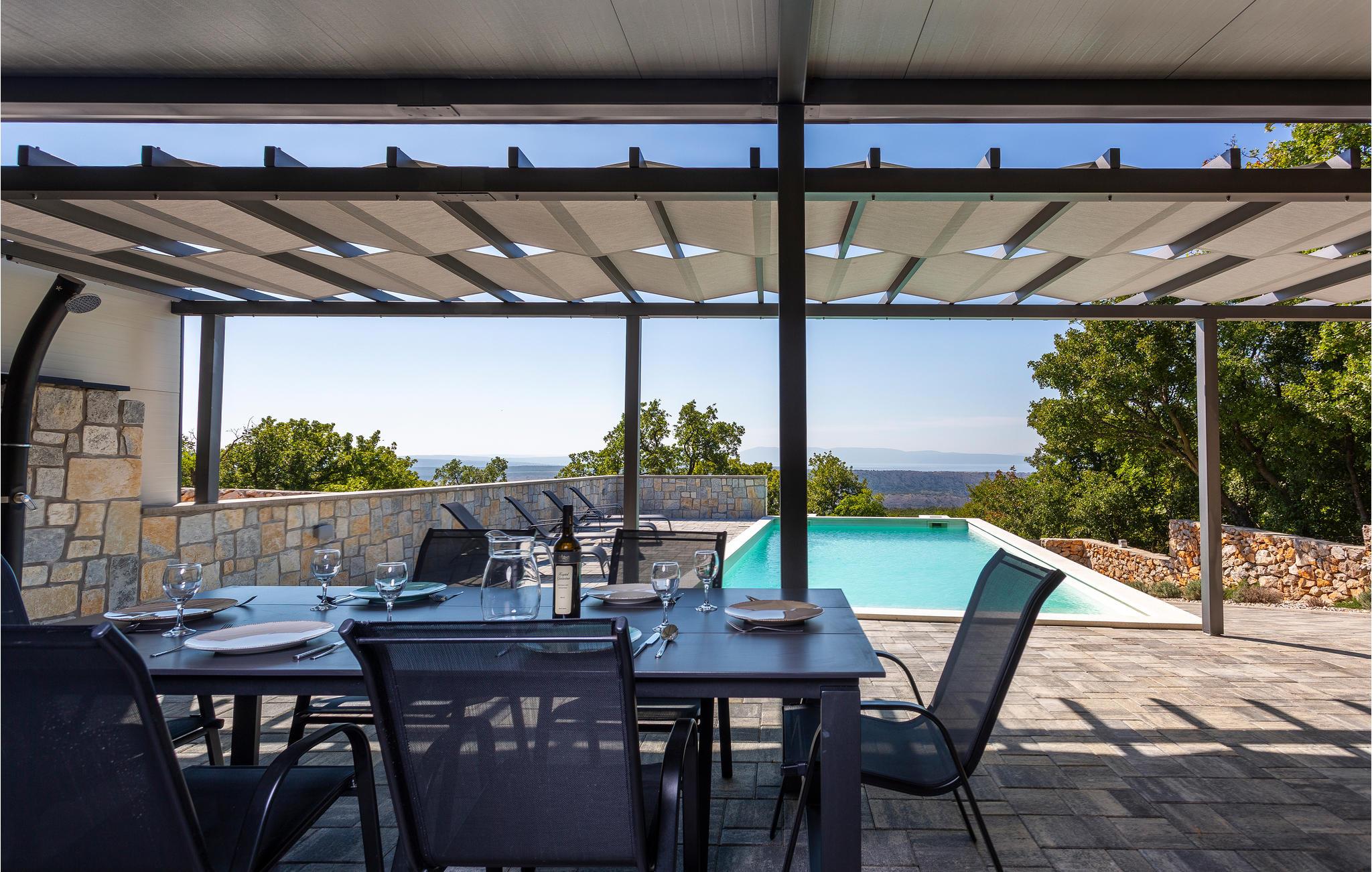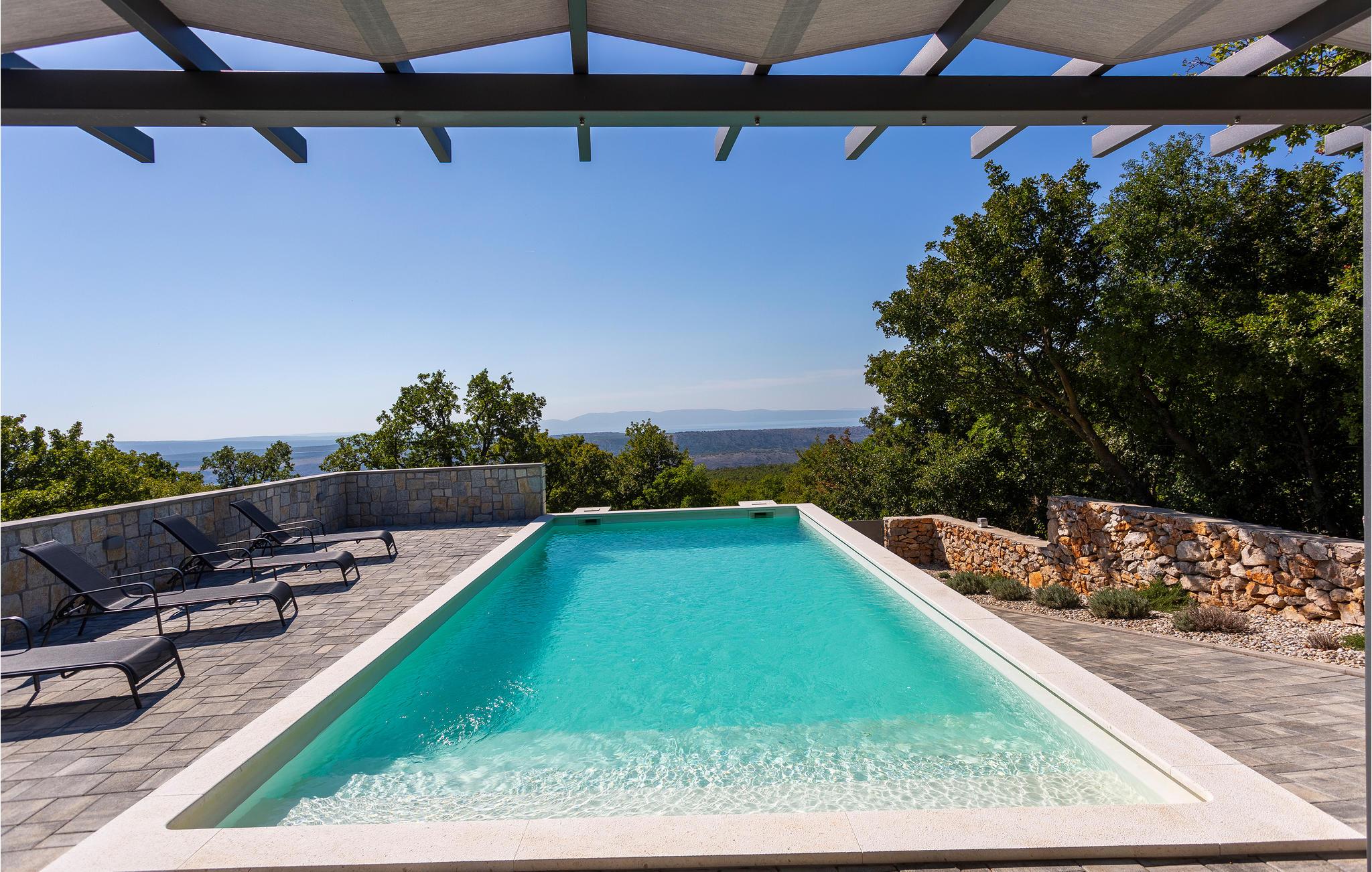 Schönes Ferienhaus mit Pool und großartigem Blick auf die Kvarner Bucht und Insel Krk.