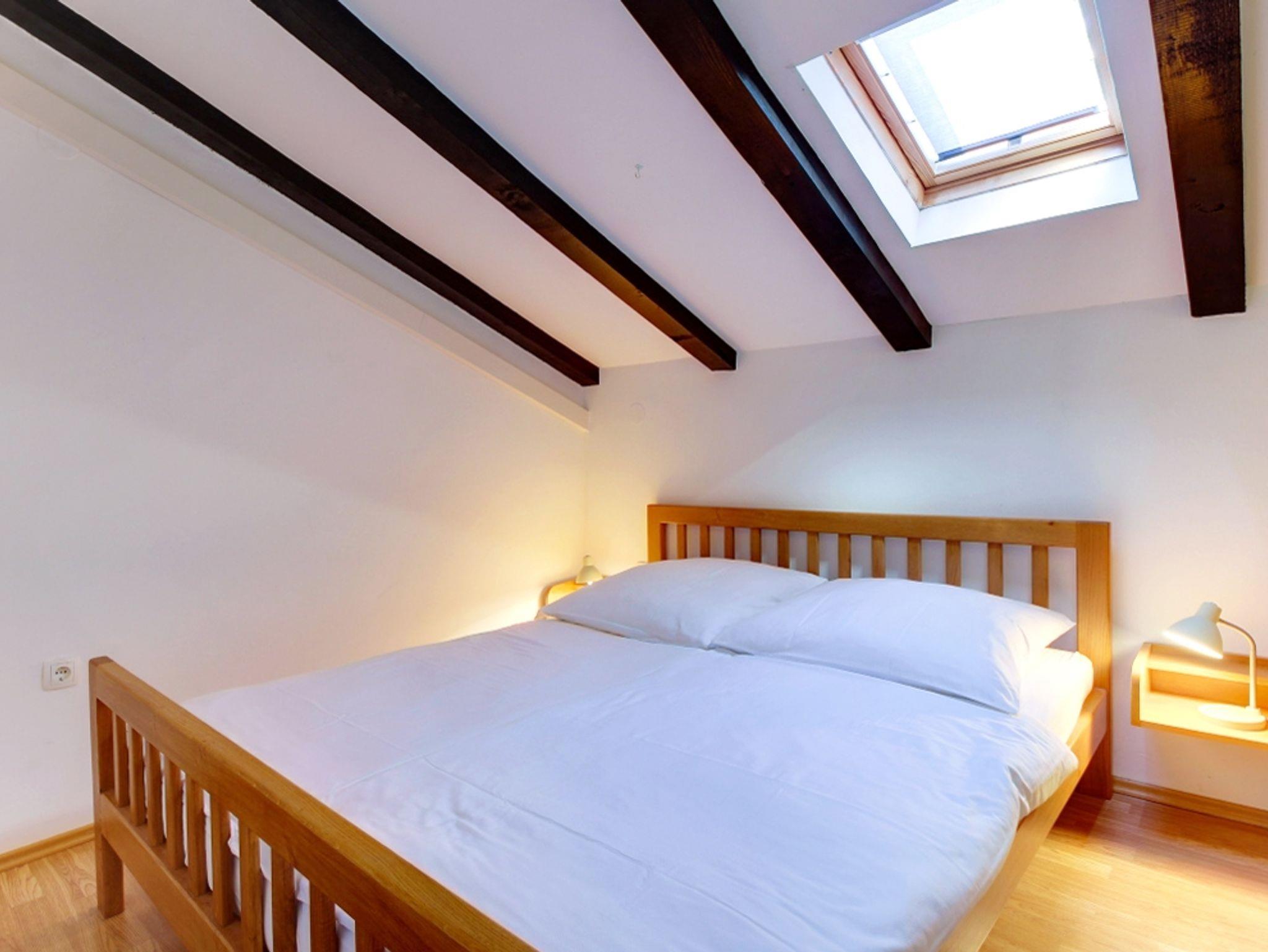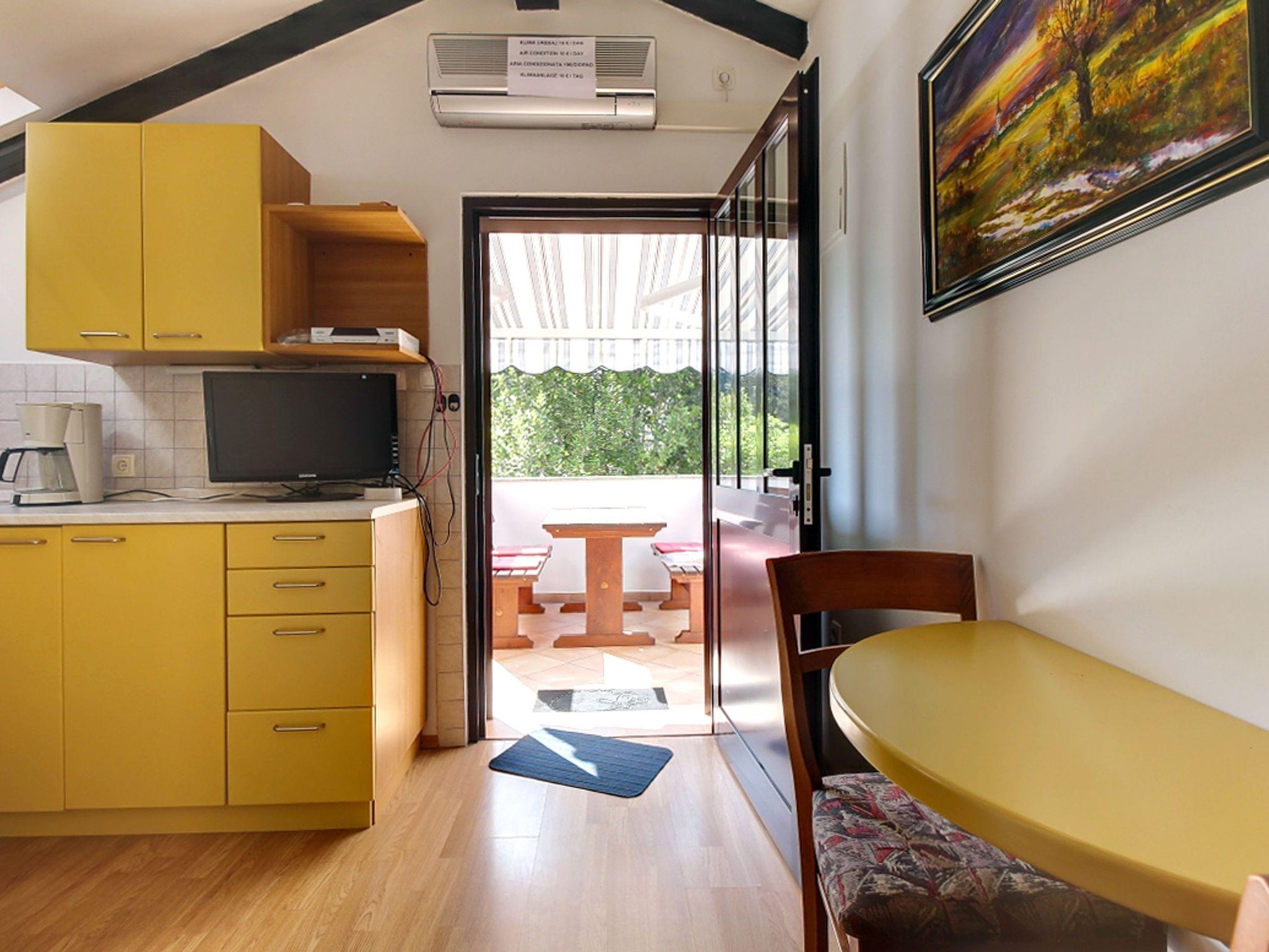 Ferienwohnung bietet Platz für 2 Gäste. Die Betten sind in Schlafzimmern, die es 1 gibt, innerhalb einer Gesamtfläche von 19m2, angeordnet. Die Gäste haben eine eigene Terrasse zur Verfügung, auf der sie in warmen Sommernächten genießen können. Es ist erlaubt, Speisen auf dem Gemeinschafts-Grill vorzubereiten. In der Unterkunftseinheit besteht die Möglichkeit des Mitbringens von Haustieren gegen Aufpreis. IM PREIS INBEGRIFFEN: Kurtaxe, Endreinigung, Parkplatz, Internet, Bügeleisen, Bügelbrett, Föhn. VERBINDLICHE ZUSÄTZLICHE KOSTEN: Aufzahlung für Kurzaufenthalte (prozentualer Zuschlag pro Nächtigungsanzahl: 30% - 1, 20% - 2, 10% - 3). UNVERBINDLICHE ZUSÄTZLICHE KOSTEN: Klimatisierung (15,00 € pro Nacht), Wäschewaschen (5,00 € Waschen), Bootsanlegeplatz (5,00 € pro Nacht), Haustiere (15,00 € pro Nacht). Die Verfügbarkeit zusätzlicher Dienstleistungen in Ihrem reservierten Termin und die Preise derselben (falls nicht aufgeführt) müssen im Voraus überprüft werden. Zusätzliche Dienstleistungen die in der Zahlungsaufforderung nicht aufgeführt sind werden direkt beim Vermieter bezahlt, angenommen der Gast nutzt auch diese. Ermäßigung auf den Grundpreis: Gratistag 14=13 (bei einem Aufenthalt von 14 Tagen oder mehr erhalten Sie einen Gratistag für den Aufenthalt bis 31.12.26).