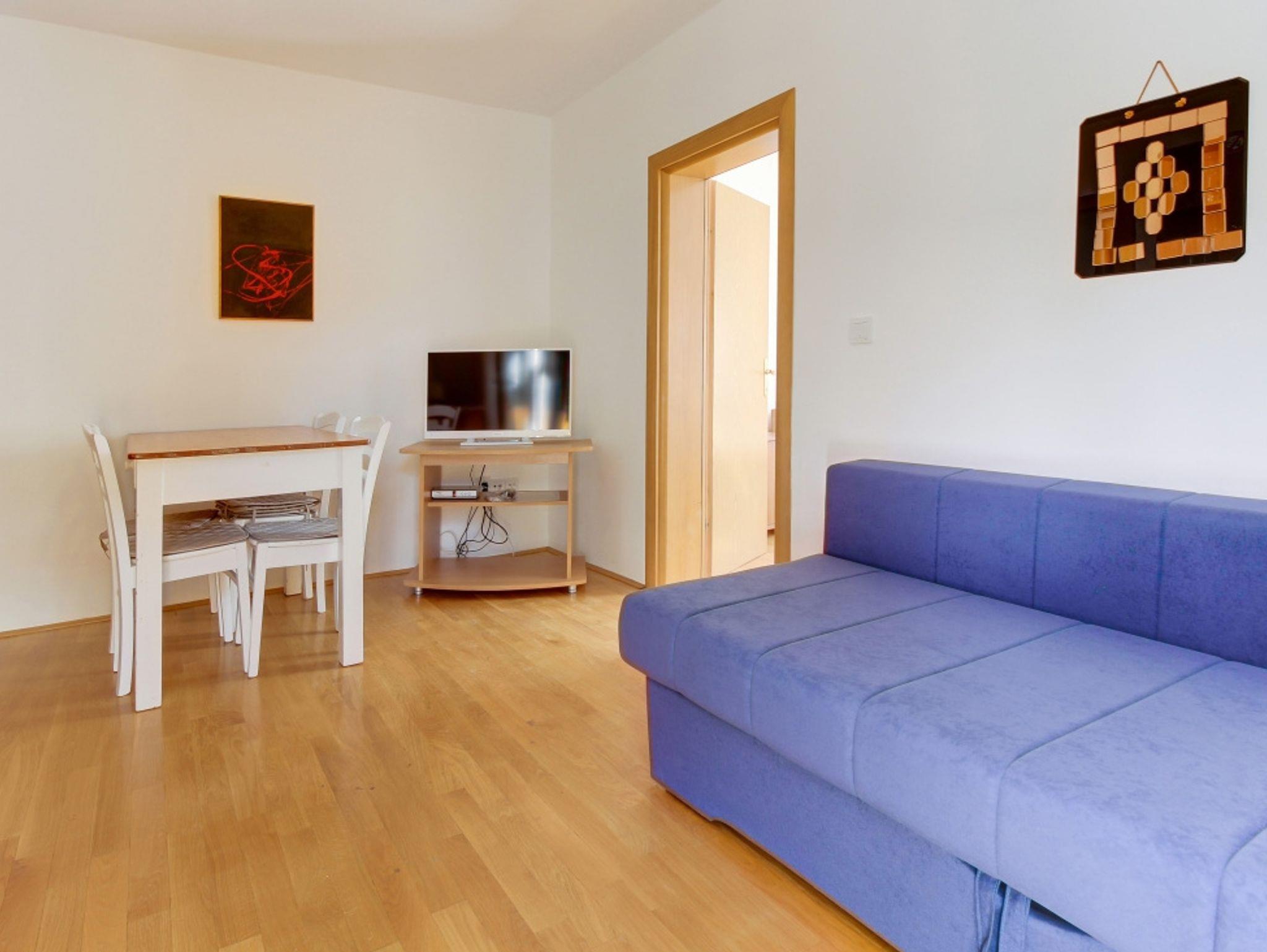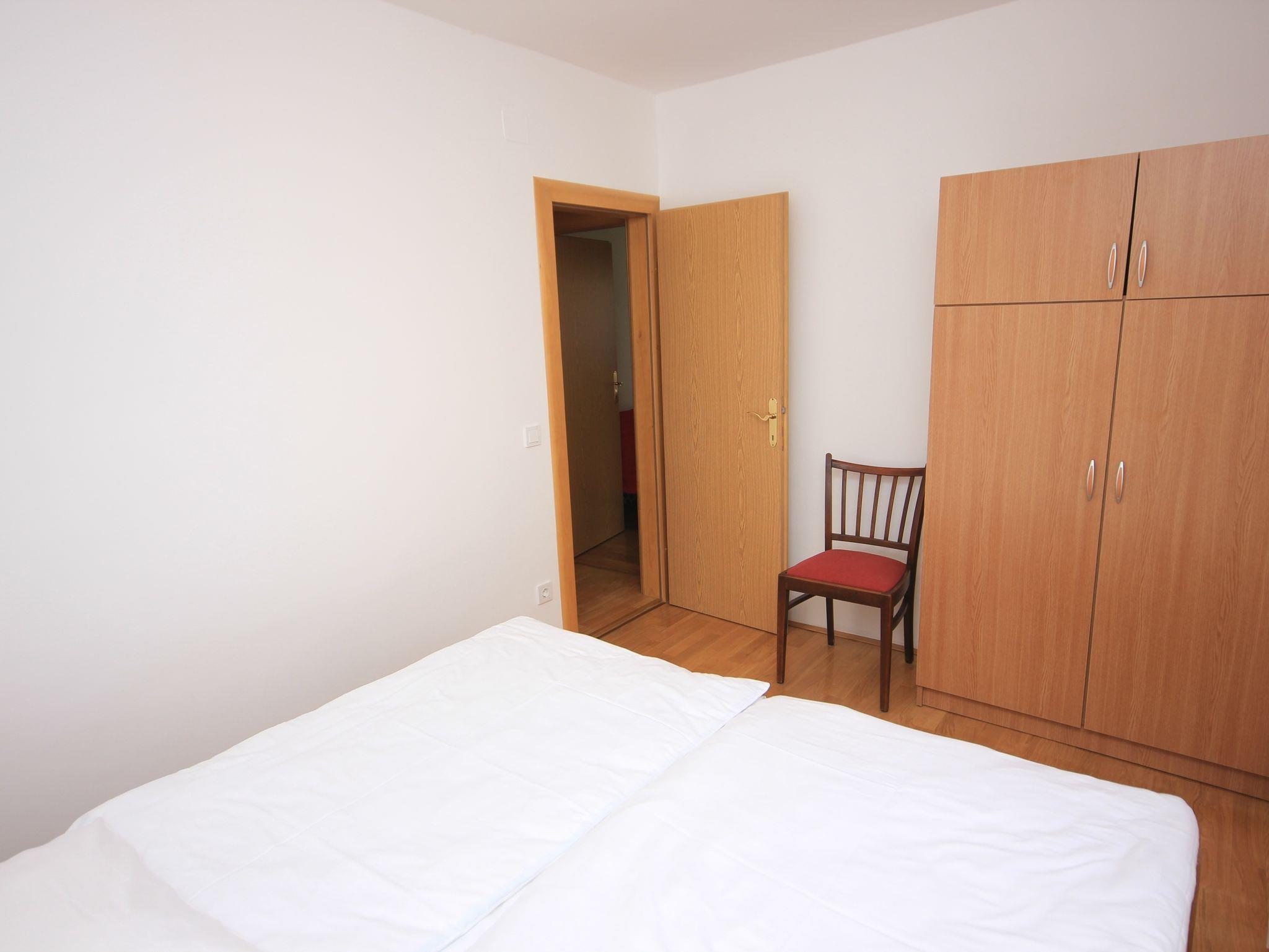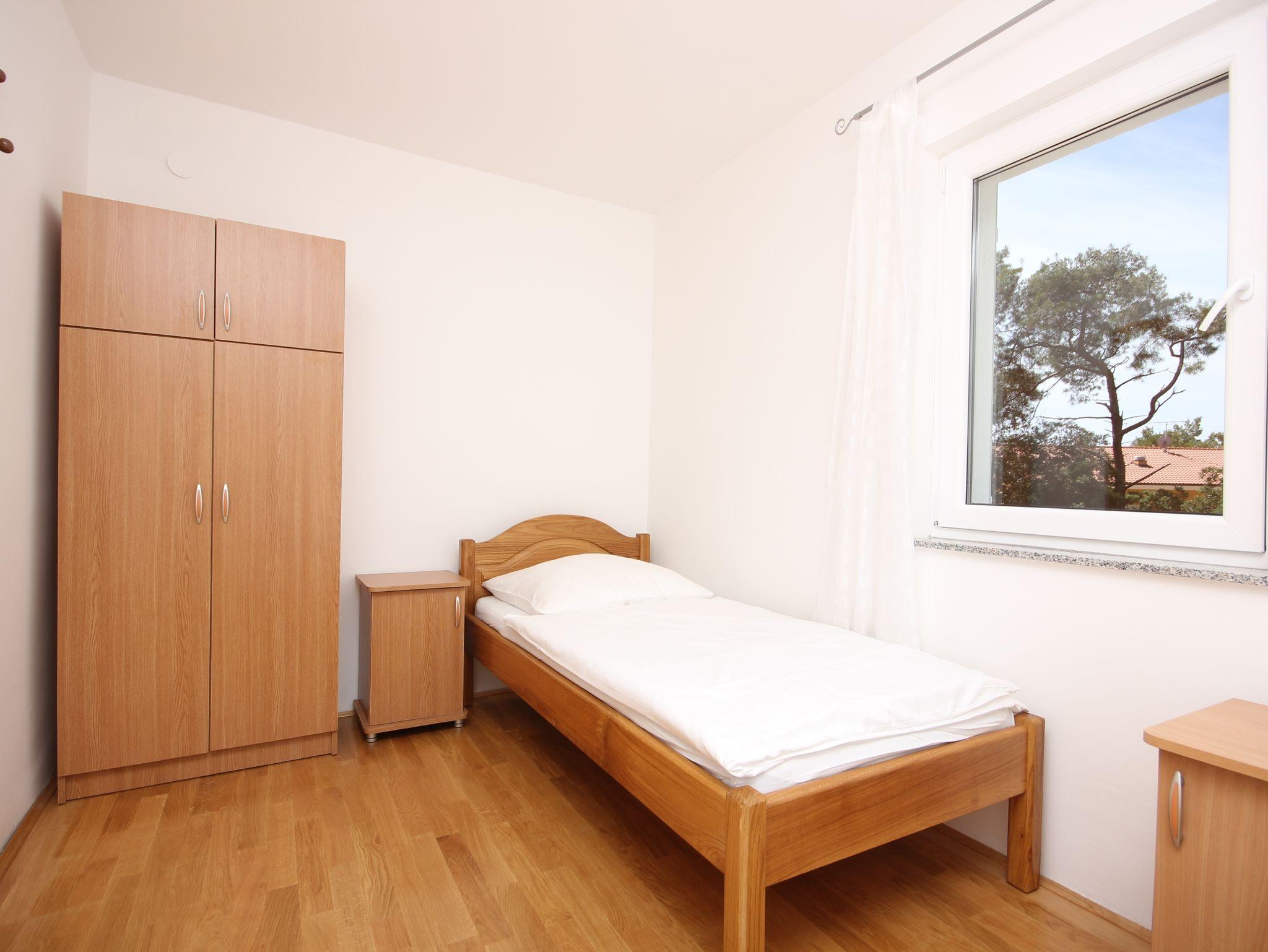 Ferienwohnung bietet Platz für 6 Gäste. Die Betten sind in Schlafzimmern, die es 2 gibt, und in Wohnzimmer, innerhalb einer Gesamtfläche von 38m2, angeordnet. Die Gäste haben eine eigene Terrasse zur Verfügung, auf der sie in warmen Sommernächten genießen können. Es ist erlaubt, Speisen auf dem Gemeinschafts-Grill vorzubereiten. In der Unterkunftseinheit besteht die Möglichkeit des Mitbringens von Haustieren gegen Aufpreis. IM PREIS INBEGRIFFEN: Kurtaxe, Endreinigung, Parkplatz, Internet, Zusatzbett, Bügeleisen, Bügelbrett, Föhn. VERBINDLICHE ZUSÄTZLICHE KOSTEN: Aufzahlung für Kurzaufenthalte (prozentualer Zuschlag pro Nächtigungsanzahl: 30% - 1, 20% - 2, 10% - 3). UNVERBINDLICHE ZUSÄTZLICHE KOSTEN: Klimatisierung (15,00 € pro Nacht), Wäschewaschen (5,00 € Waschen), Haustiere (15,00 € pro Nacht). Die Verfügbarkeit zusätzlicher Dienstleistungen in Ihrem reservierten Termin und die Preise derselben (falls nicht aufgeführt) müssen im Voraus überprüft werden. Zusätzliche Dienstleistungen die in der Zahlungsaufforderung nicht aufgeführt sind werden direkt beim Vermieter bezahlt, angenommen der Gast nutzt auch diese. Ermäßigung auf den Grundpreis: Gratistag 14=13 (bei einem Aufenthalt von 14 Tagen oder mehr erhalten Sie einen Gratistag für den Aufenthalt bis 31.12.26).