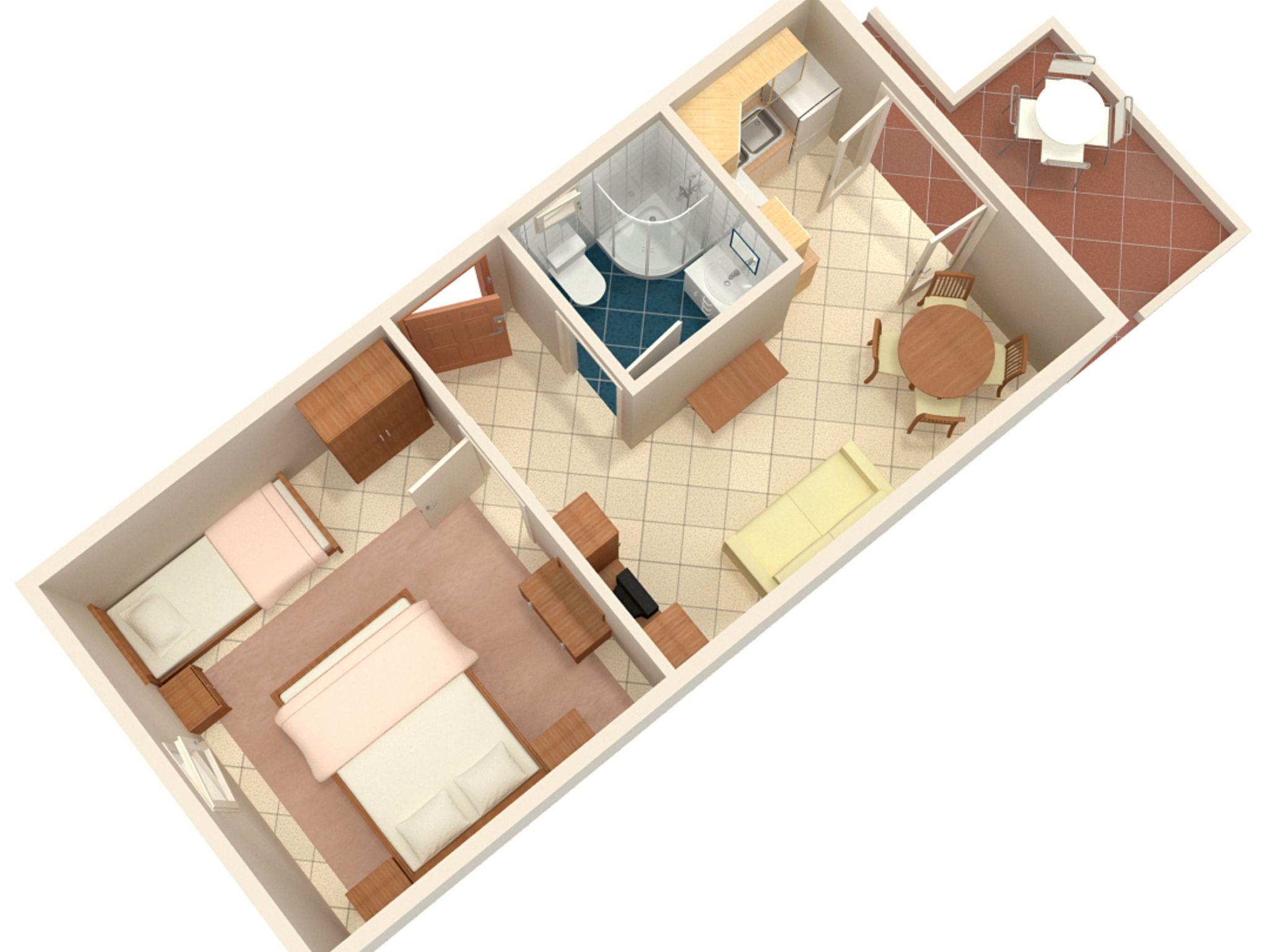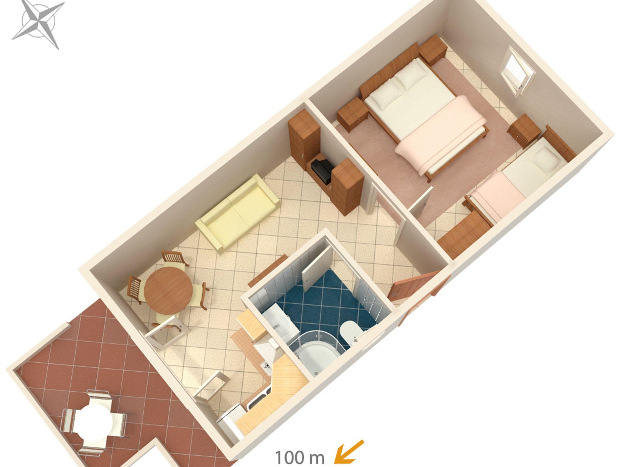 Ferienwohnung bietet Platz für 3 Gäste. Die Betten sind in Schlafzimmern, die es 1 gibt, innerhalb einer Gesamtfläche von 35m2, angeordnet. Die Gäste haben eine eigene Terrasse zur Verfügung, auf der sie in warmen Sommernächten genießen können. Es ist erlaubt, Speisen auf dem Gemeinschafts-Grill vorzubereiten. In der Unterkunftseinheit besteht die Möglichkeit des Mitbringens von Haustieren gegen Aufpreis. IM PREIS INBEGRIFFEN: Kurtaxe, Endreinigung, Klimatisierung, Parkplatz, Internet, Kinderbett, Bügeleisen, Bügelbrett, Föhn. UNVERBINDLICHE ZUSÄTZLICHE KOSTEN: Bootsanlegeplatz (15,00 € pro Nacht), Haustiere (15,00 € pro Nacht). Die Verfügbarkeit zusätzlicher Dienstleistungen in Ihrem reservierten Termin und die Preise derselben (falls nicht aufgeführt) müssen im Voraus überprüft werden. Zusätzliche Dienstleistungen die in der Zahlungsaufforderung nicht aufgeführt sind werden direkt beim Vermieter bezahlt, angenommen der Gast nutzt auch diese.