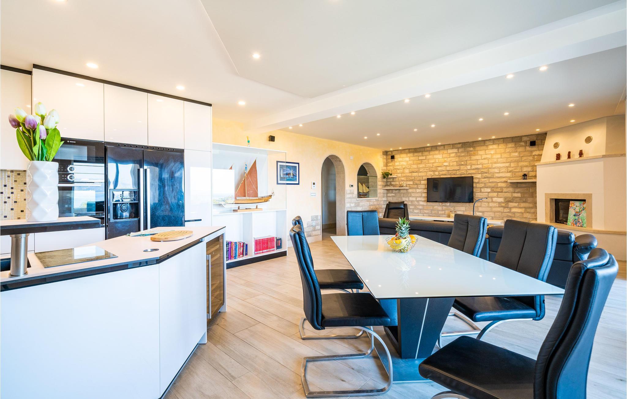 Machen Sie es sich in diesem gemütlichen modernen Ferienhaus gemütlichen, nutzen die Ledermöbel aus, um sich bequem Unterhaltungen mit Ihren Lieben zuzuwenden. Dieses Haus hat eine sehr sonnige und helle Atmosphäre, sowie einige Steindetails, die das Flair etwas natürlicher wirken lassen. Vom Balkon haben Sie einen wunderbaren Ausblick auf das Meer und die umliegende Landschaft. Stellen Sie sich vor gemeinsame Stunden in der Sonne zu verbringen und zusammen Gegrilltes zu genießen. Ihnen steht ebenso ein privater Außenpool zur Verfügung, um eine Erfrischung einzuholen oder sich in den Sonnenliegen zu entspannen.