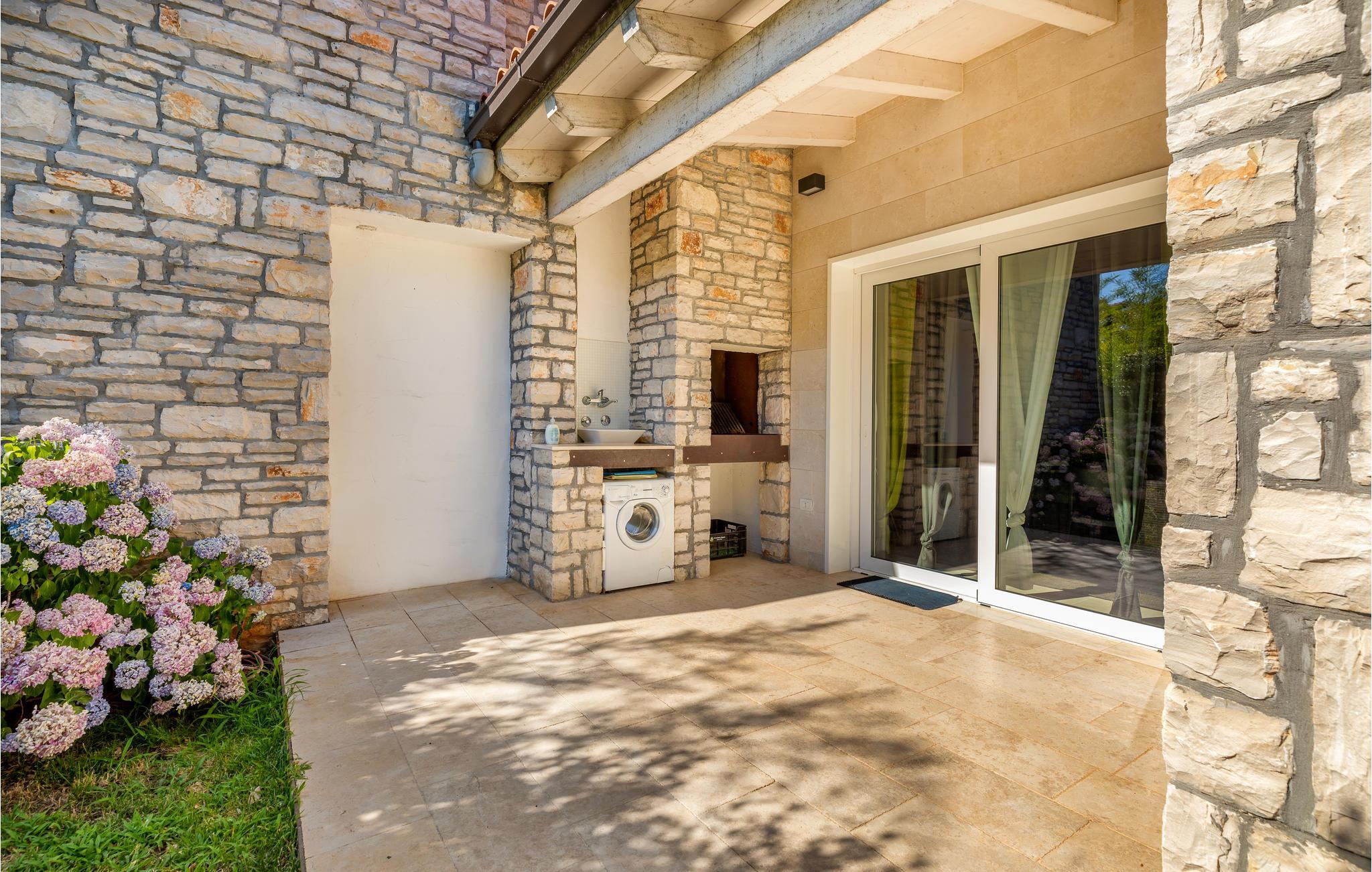 Wunderschönes Steinhaus mit Pool und Garten erwartet Sie im ruhigen Ortsteil von Valbandon, nahe der malerischen Kleinstadt Fažana und dem Nationalpark auf den Brijuni Inseln. Hierbei handelt es sich um eine ausgezeichnet eingerichtete Doppelhaushälfte, wo klassische Materialien wie Stein und Holz verwendet wurden. Modern ausgestattet und mit viel Liebe zum Detail eingerichtet, bietet es seinen Gästen Gemütlichkeit und Komfort. Die Wohnfläche besteht aus dem Erdgeschoss mit offenem Wohnzimmer, Küche und Essbereich. Aus dem Wohnzimmer gelangen Sie in die obere Etage, wo sich ein Schlafzimmer und ein Badezimmer befinden. Das zweite Schlafzimmer mit eigenem Bad liegt im Untergeschoss. Es steht Ihnen auch ein gepflegter Garten mit Kinderspielgeräten zur Verfügung. Die überdachte Terrasse mit Grill ist ideal zum geselligen Beisammensein, während der Pool an warmen Sommertagen für Erfrischung sorgt.