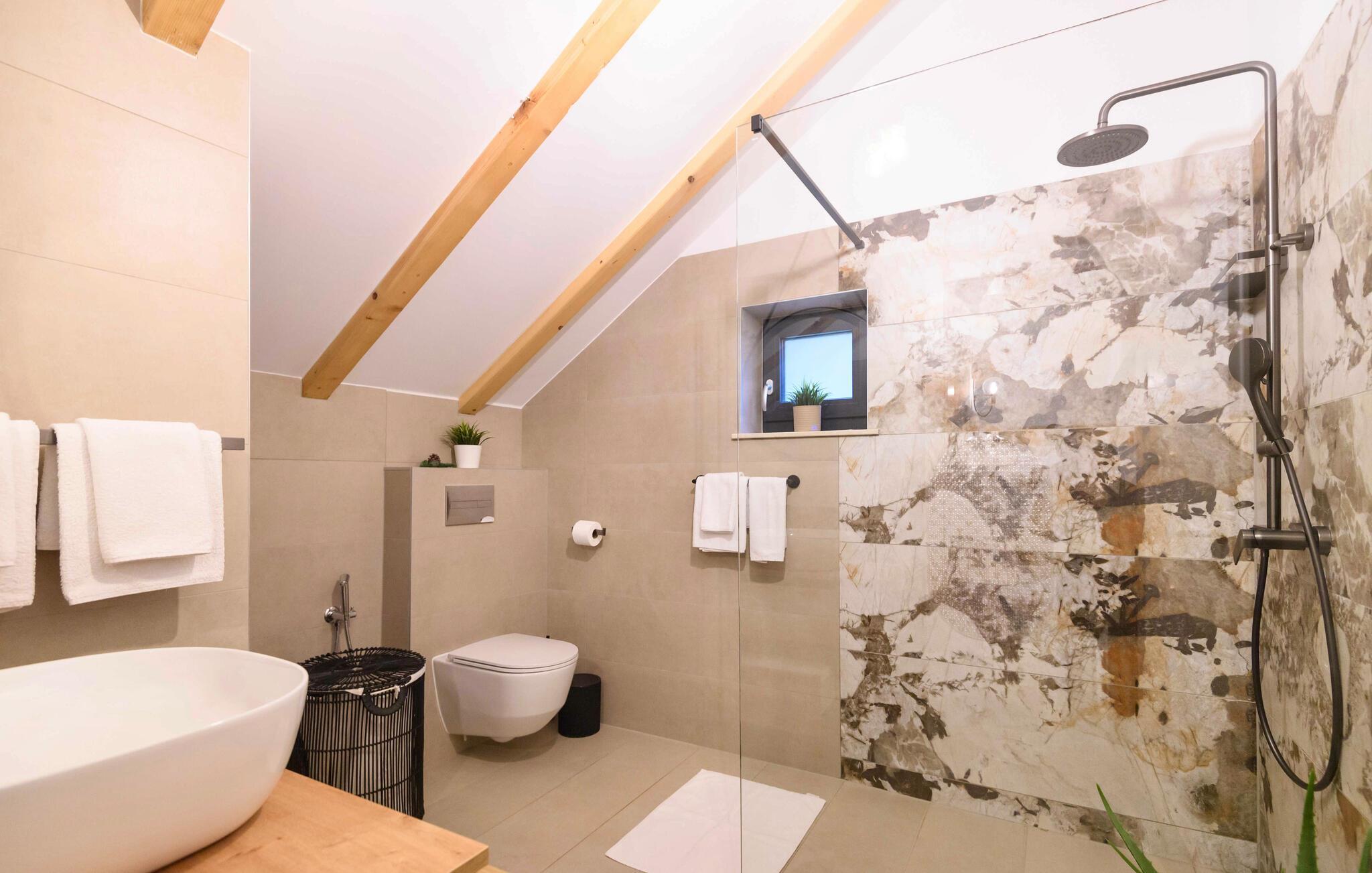 Badezimmer 7m2 (nr. 1) - WC. Warmes und kaltes Wasser. Dusche