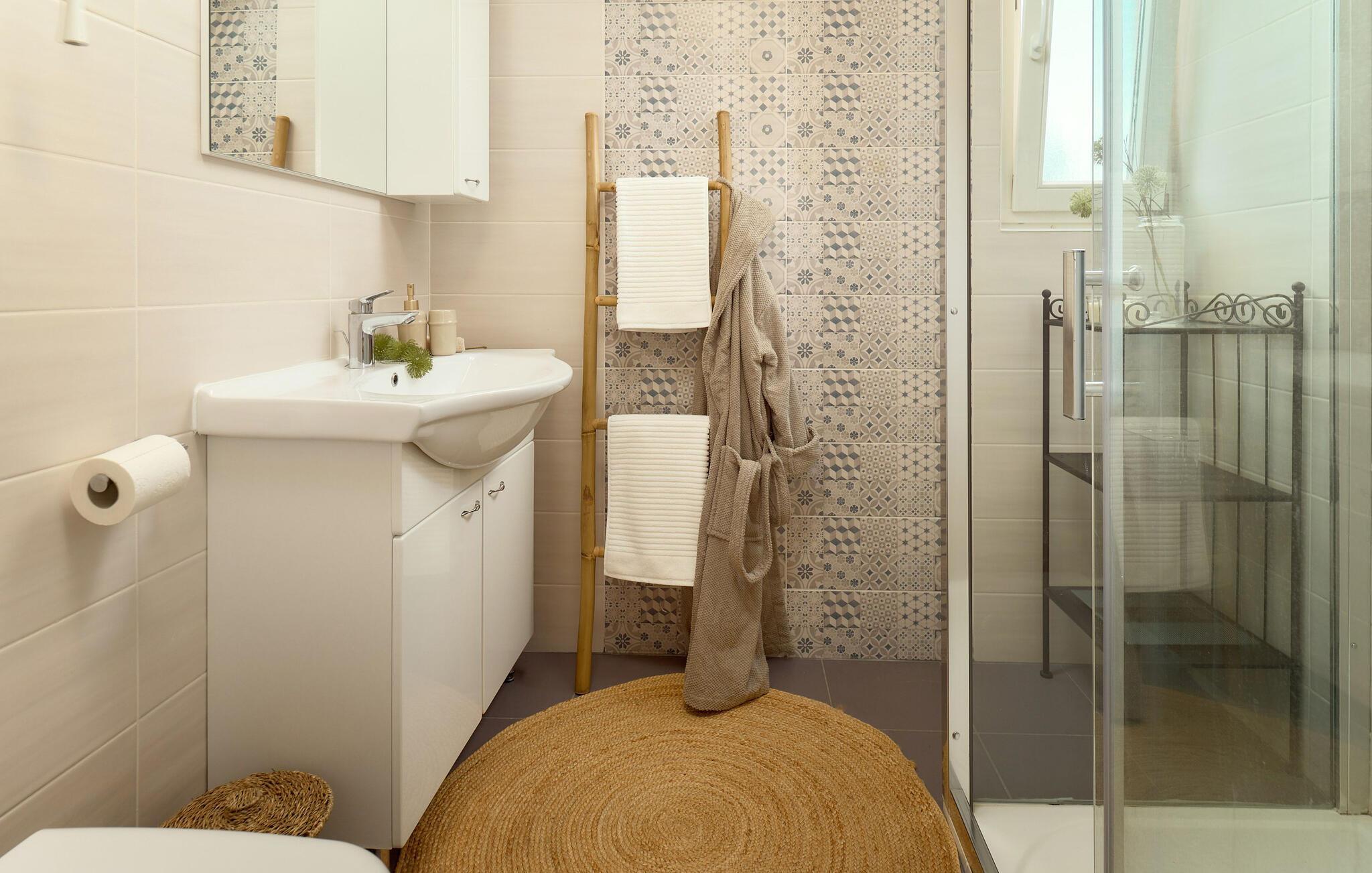 Badezimmer (nr. 2) - WC. Warmes und kaltes Wasser. Dusche