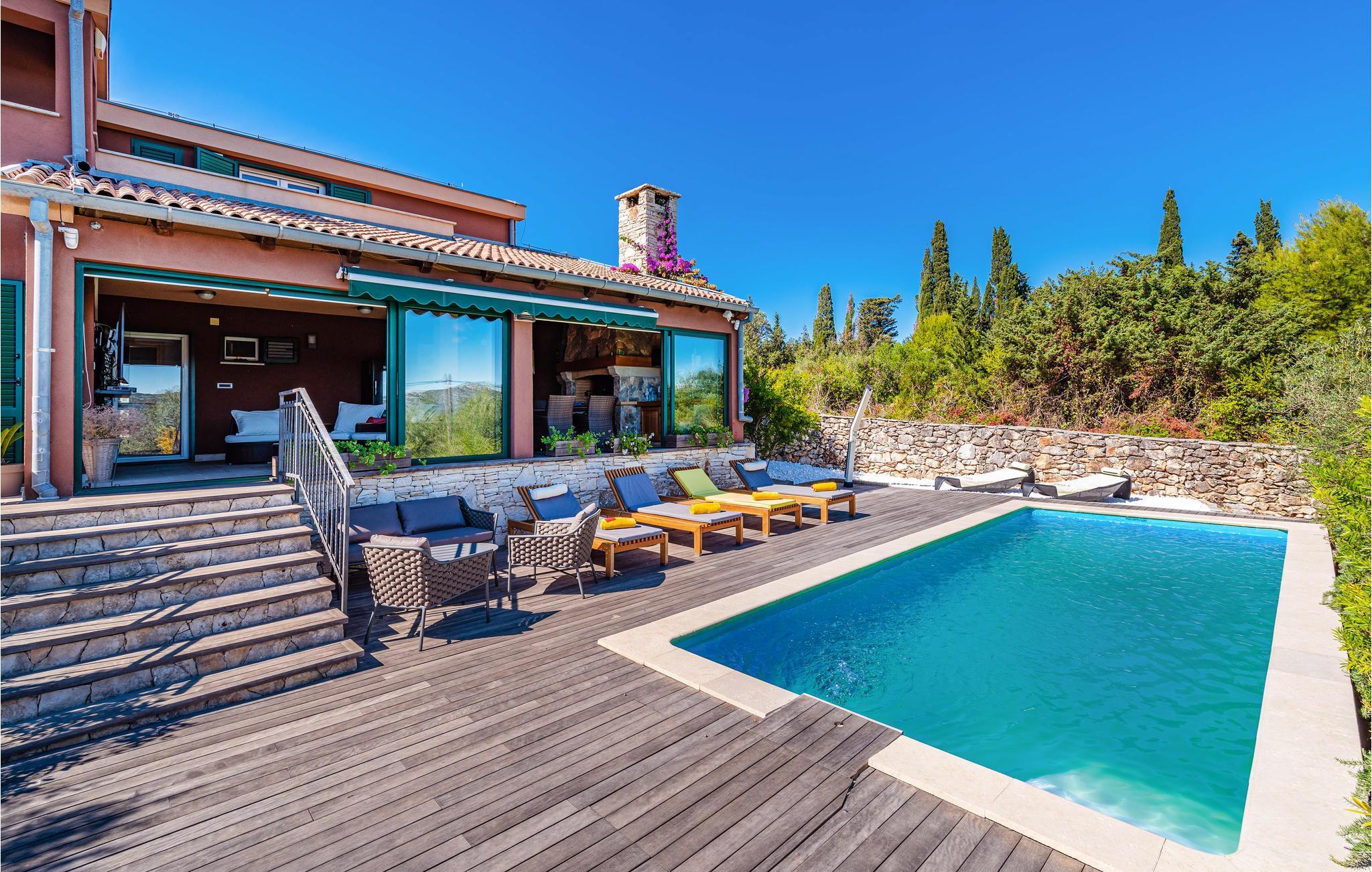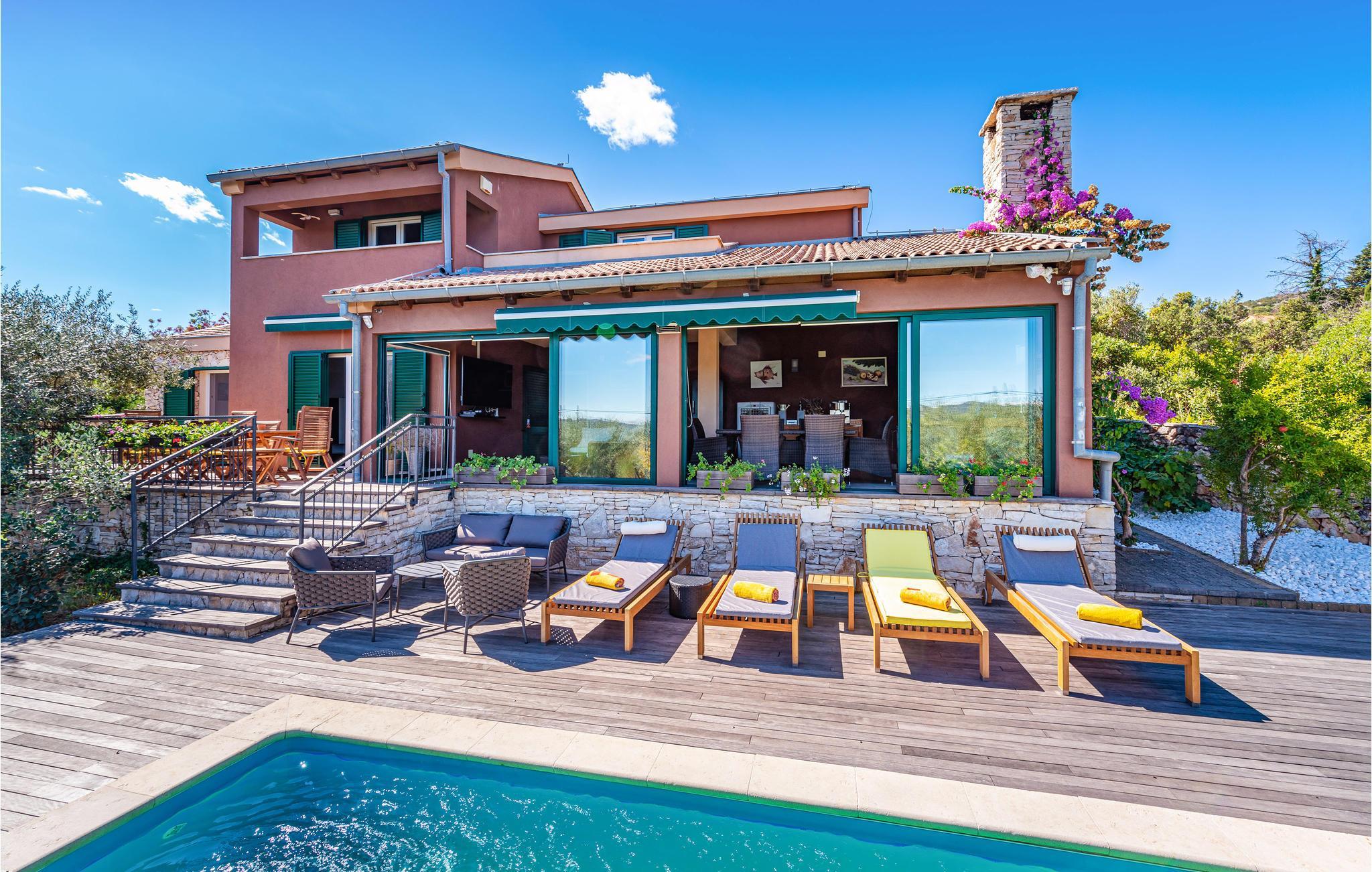 Freuen Sie sich auf einen sonnigen Urlaub, wo Sie immer in der Nähe von Meer sind. Auf dieser Insel können Sie und Ihre Familie sich sowohl entspannen als auch viel unternehmen. Morgens wachen Sie auf, und alles deutet auf einen tollen Tag hin. Bei strahlendem Sonnenschein können Sie und Ihre Familie auf der Terrasse oder im großen grünen Garten frühstücken und sich überlegen, was Sie an diesem Tag machen möchten. Vielleicht möchten Sie einfach einen gemütlichen Tag am Swimmingpool verbringen, oder Sie können im Ort etwas unternehmen.