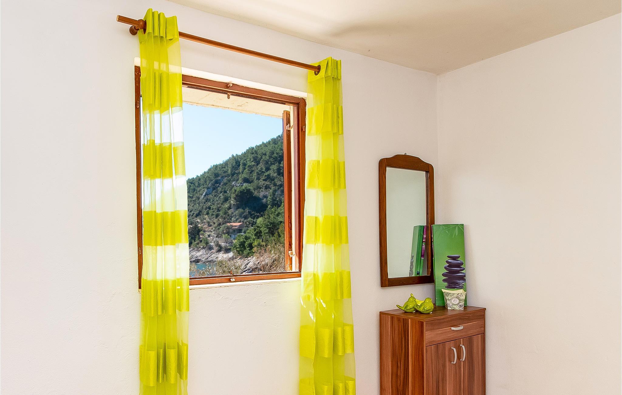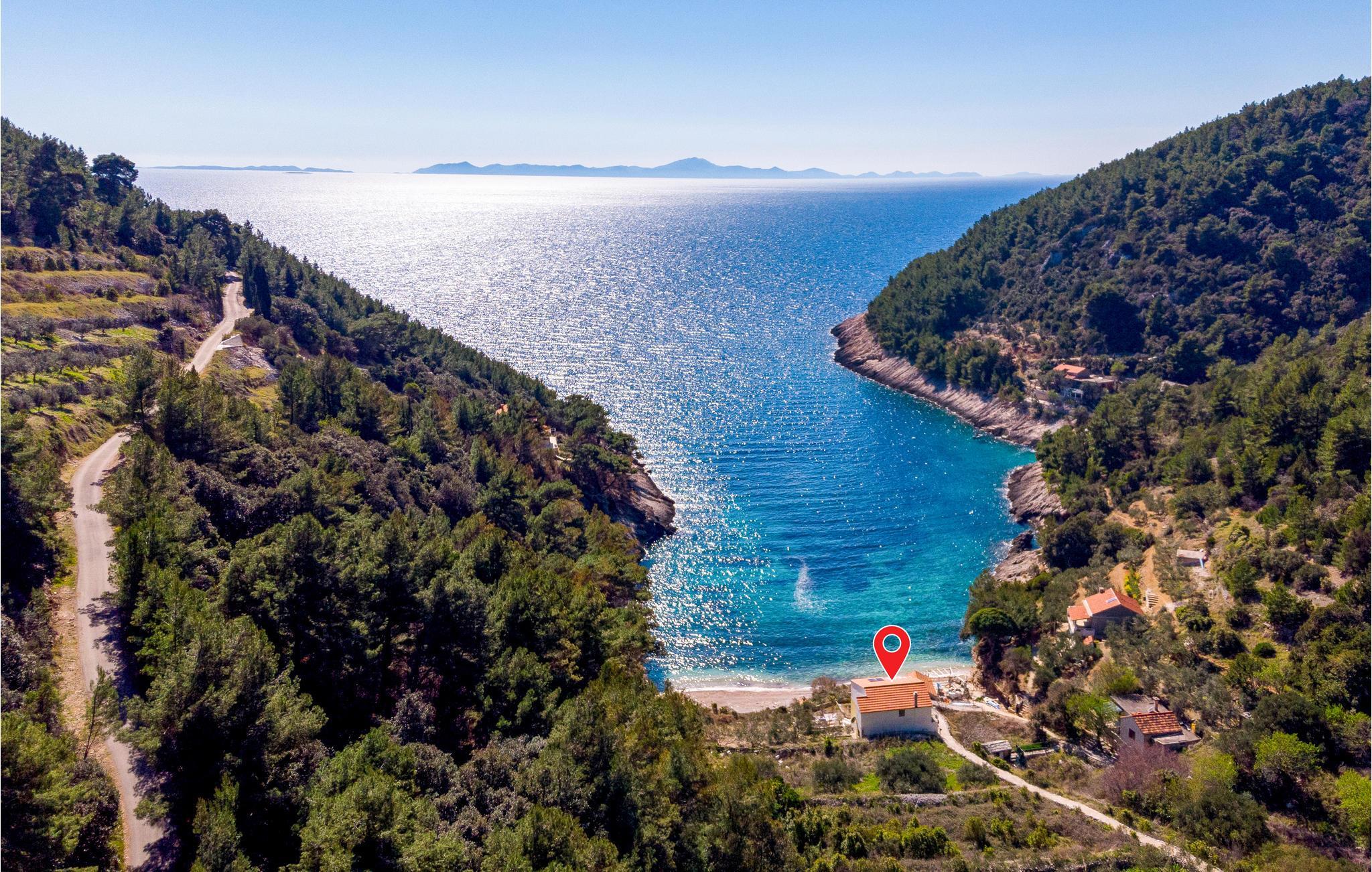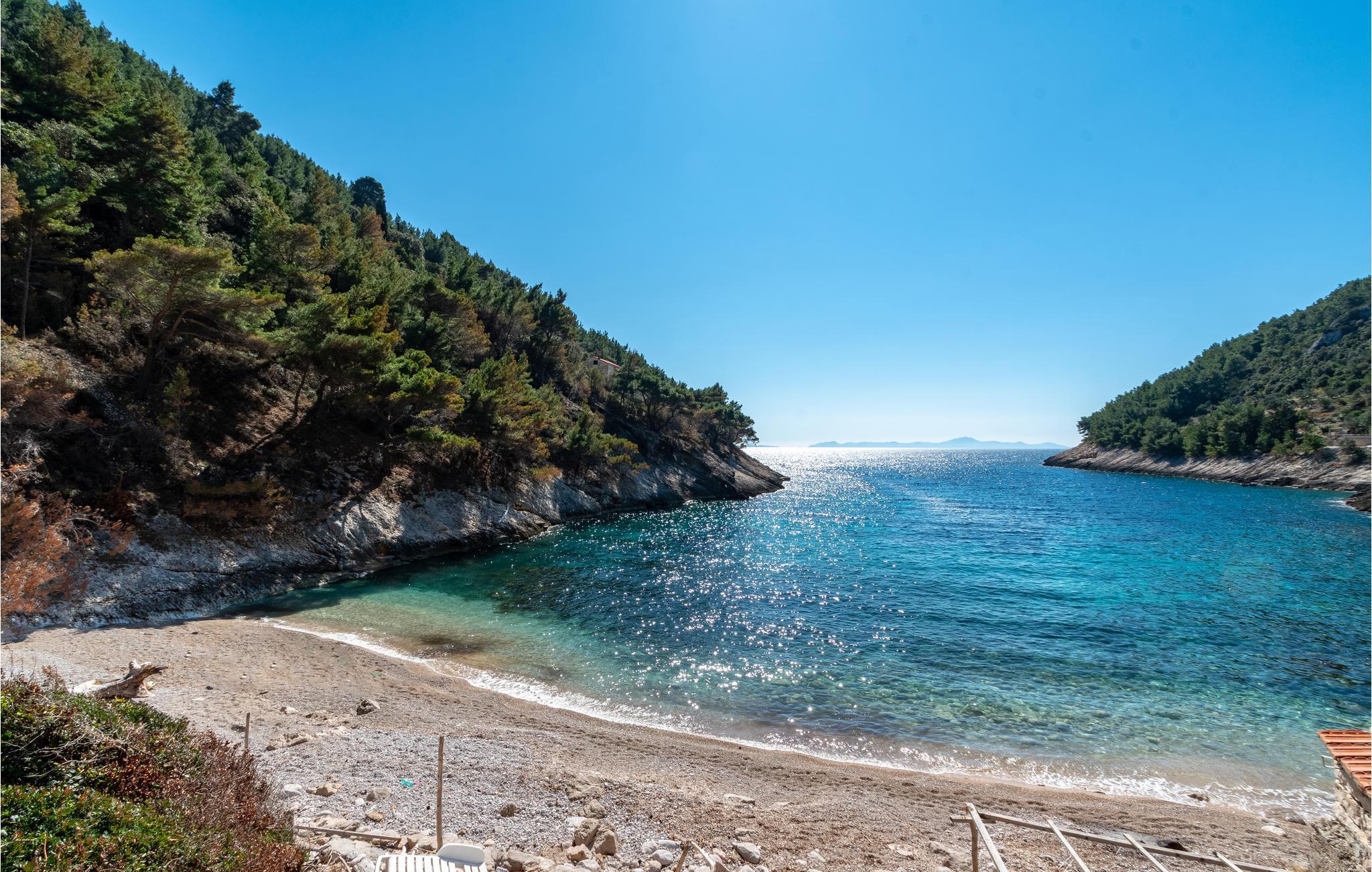 In natürlicher Umgebung und etwa 10 m vom schönen Kiesstrand entfernt, befindet sich dieses Ferienhaus. Es wurde für echte Naturliebhaber geschaffen - hier können Sie den Menschenmassen entfliehen und einen idealen Familienurlaub mit kleinen Kindern verbringen. Die Bucht Bacva ist ein sehr versteckter Ort mit nur wenigen Häusern, wodurch Sie die wunderschöne Landschaft fast alleine genießen können. Das einfach und funktionell eingerichtete Ferienhaus besteht aus 2 Wohnungen mit jeweils 2 Schlafzimmern, einer Wohnküche, einem Badezimmer sowie Terrassen mit Meerblick. Die Küche im 1. Stock ist groß, während die bescheidene Erdgeschosswohnung über eine Veranda und einen Raum mit offenem Kamin verfügt. Hobbyangler haben hier die Möglichkeit sich Ihr Mittagessen selbst zu fangen. Auf Grund der abgeschiedenen Lage verläuft die Stromversorgung ausschließlich über Solarenergie und die Wasserversorgung über einen hauseigenen Wasserspeicher. Aufgrund des begrenzten Stroms wird die Verwendung von Geräten mit höherem Stromverbrauch nicht empfohlen.