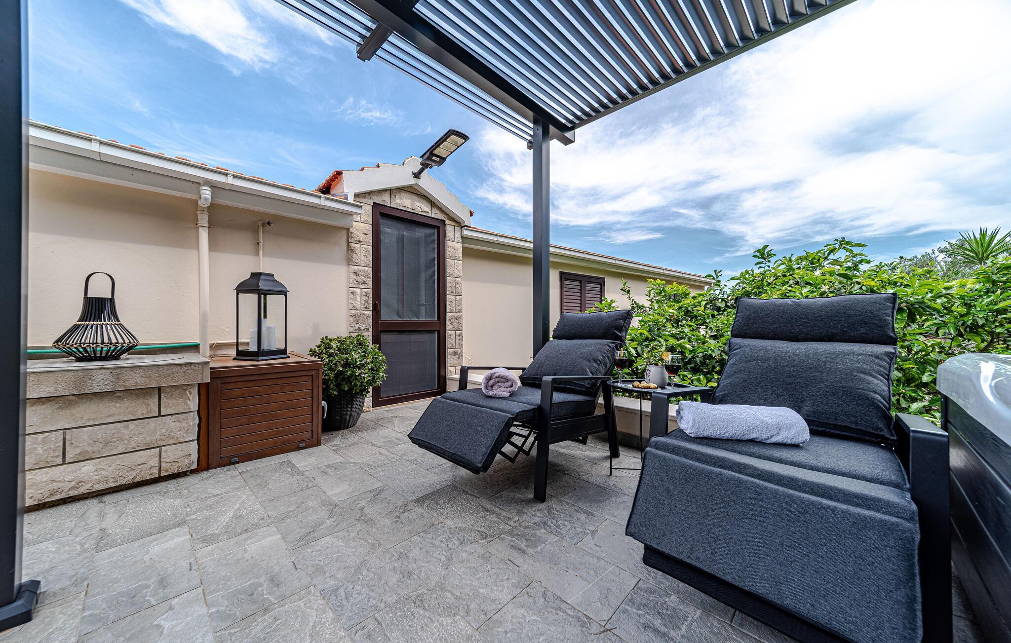 Das Haus ist geschmackvoll eingerichtet und bietet alles, was Sie für einen komfortablen Urlaub benötigen. Die Räume im Erdgeschoss und ersten Stock sind über eine Außentreppe verbunden. Der gesamte Wohnraum befindet sich im ersten Stock, während das Erdgeschoss des Hauses nicht vermietet ist. Der direkte Zugang zum Meer ist erschwert, aber in den umliegenden Buchten finden Sie viele Bademöglichkeiten.