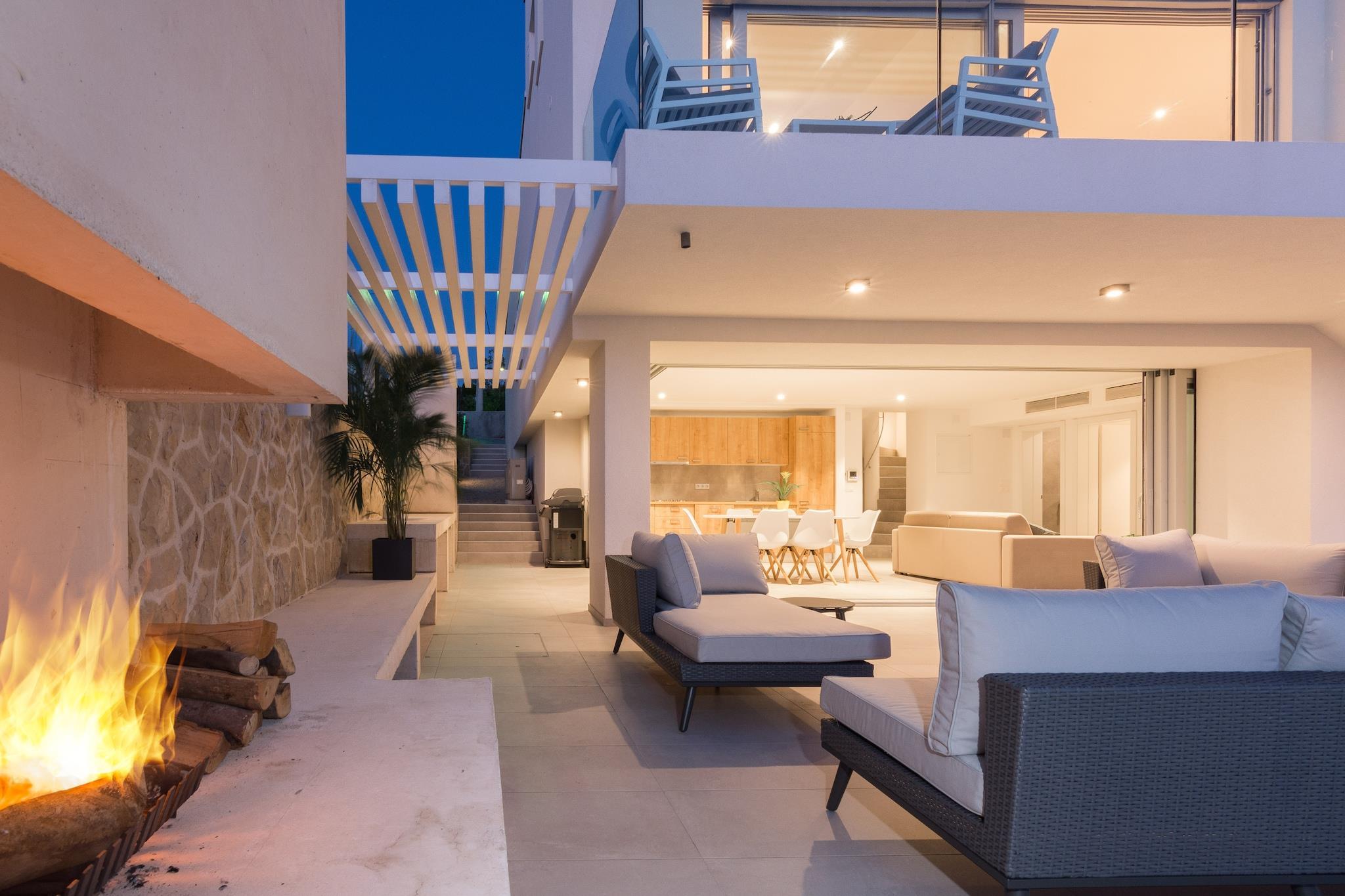 Eine moderne, geräumige, luxuriöse Villa mit drei Etagen, gelegen am Wasser mit ungestörter Sicht auf die Adria. Deckenhohe Fenster durchfluten die Villa mit natürlichem Licht und bieten atemberaubende Aussichten auf das Meer und die Inseln in der Ferne. Gut geeignet für Familien oder Gruppen von bis zu 10 Freunden, um einen entspannenden Aufenthalt im Herzen Dalmatiens genießen zu können. Alle Wohn- und Schlafbereiche sind komplett klimatisiert. Im Erdgeschoss gibt es Schiebetüren, die sich an zwei Seiten öffnen lassen, um einen Innen-Außen-Wohnbereich zu schaffen. Auf dieser Etage gibt es eine voll ausgestattete Küche, einen Essbereich, eine Waschmaschine/Trockner, einen Außenkamin und einen Gasgrill. Sie haben außerdem einen direkten Zugang zum Meer. Auf dieser Etage gibt es ein Schlafzimmer mit zwei Einzelbetten, direkten Zugang zur Terrasse und ein komplettes Badezimmer. Auf der zweiten Etage befindet sich der Hauptwohnbereich mit einer luxuriösen Küche, Essbereich, TV/Sitzbereich und eine Außenterrasse. Auf dieser Etage gibt es außerdem ein Schlafzimmer mit Etagenbetten und ein komplettes Badezimmer. Auf der dritten Etage gibt es zwei geräumige Schlafzimmer mit Queensize-Betten und eigenen Bädern mit Fußbodenheizungen. Beide Zimmer bieten atemberaubende Aussichten und eines der Schlafzimmer hat seine eigene Terrasse. Die Villa am Meer befindet sich in dem ruhigen Dorf Kozino. Dort können Sie von der Villa aus mehrere Restaurants zu Fuß erreichen. Die Stadt Zadar ist nur 10 Minuten mit dem Auto entfernt. Das Nachbardorf Petrcane bietet in der Touristensaison zahlreiche Sommeraktivitäten.