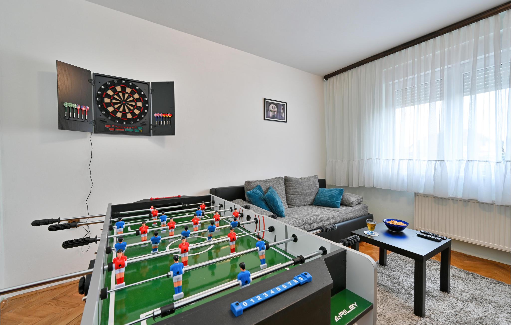 Dieses schöne Ferienhaus bezaubert mit einem fantastischen Blick auf die Landschaft und eignet sich besonders gut für einen Urlaub mit Kindern. Die wohnlichen Räume machen es zu einem Ort, wo Sie mit Ihren Lieben ideal entspannen können. Es gibt mehrere Bereiche mit bequemen Sofas, wo Sie es sich gemütlich machen können. Freuen Sie sich auf gesellige Abende, vielleicht mit einem guten Film oder einer Partie Kicker, Sie können sich auch ein Buch aus dem Regal nehmen und endlich mal wieder in Ruhe lesen.