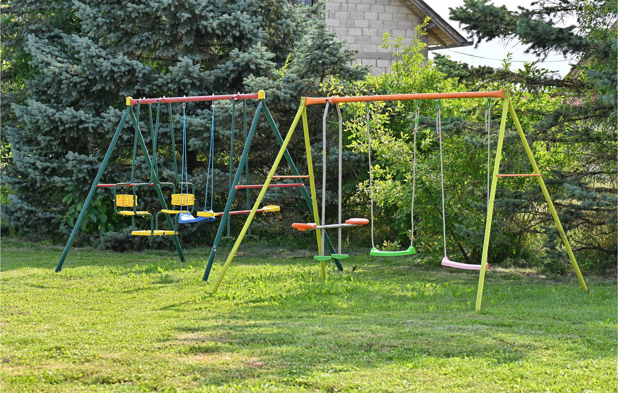 Im Außenbereich des Hauses ist dafür gesorgt, dass Groß und Klein bestens unterhalten sind. Während die Kinder schaukeln oder zufrieden im Sandkasten buddeln, können Sie in einem bequemen Liegestuhl entspannen oder ein paar Runden im Pool schwimmen. Später versammelt sich die ganze Familie zu einem leckeren Abendessen vom Grill.