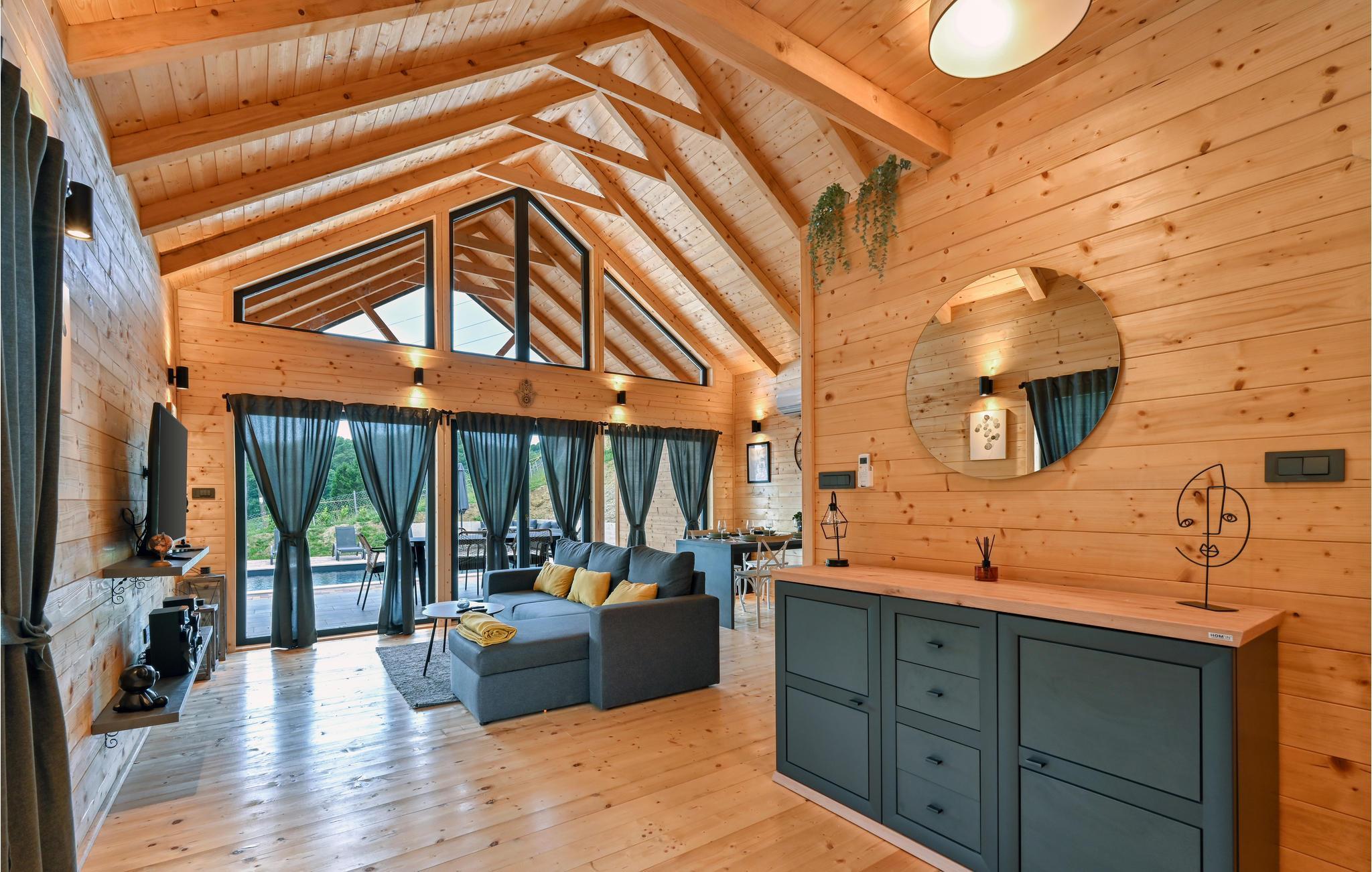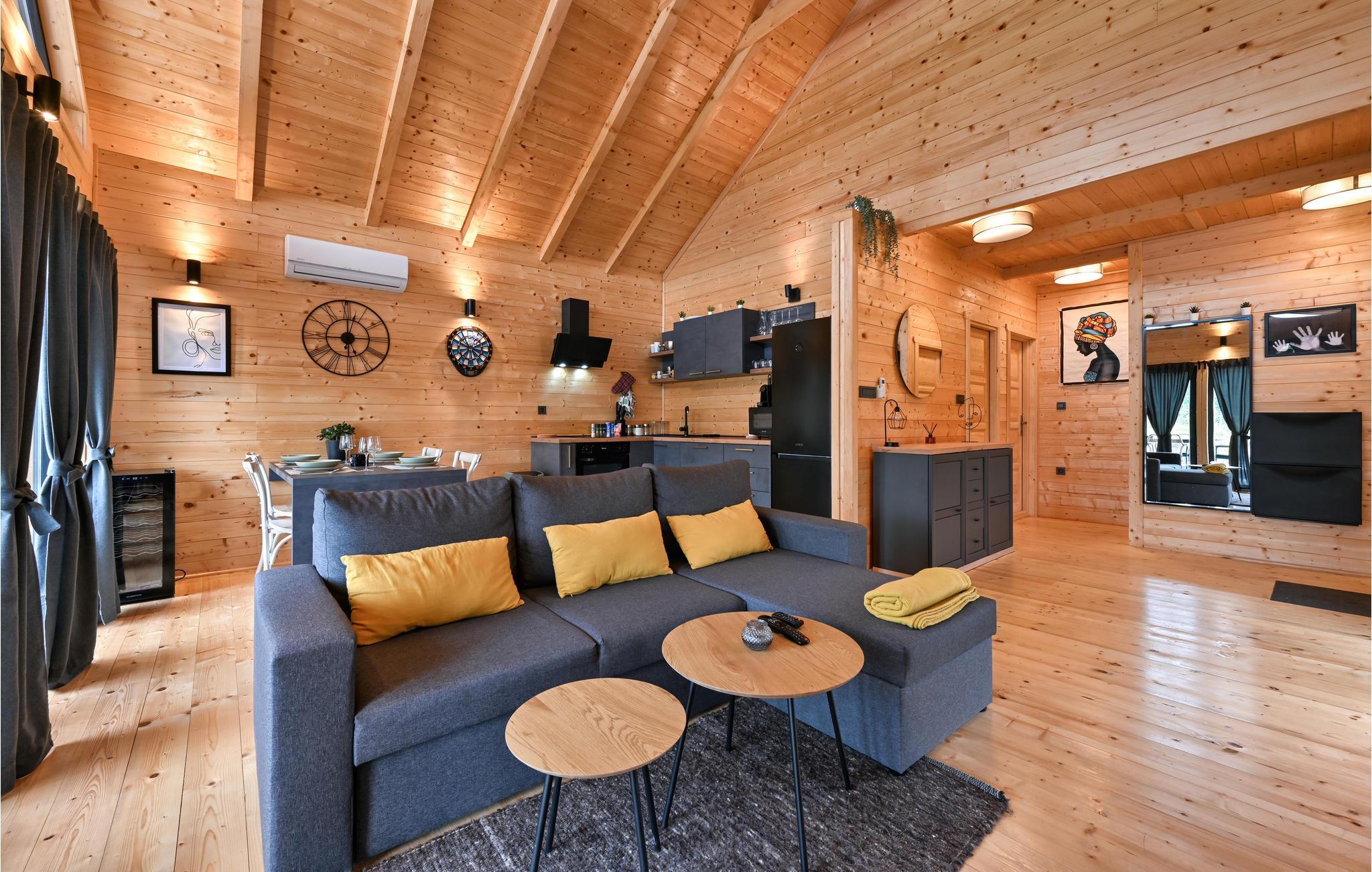 In schöner Lage umgeben von Natur begrüßt Sie dieses geräumige, komfortable Holzhaus. In den einladenden Räumen, die modern eingerichtet sind und durch die Holzelemente einen warmen Ausdruck erhalten können Sie den Alltag vergessen und es sich mit Familie oder Freunden gut gehen lassen. Entspannen Sie in gemütlicher Atmosphäre und machen Sie es sich abends mit Ihrer Lieblingsserie auf dem Sofa bequem.