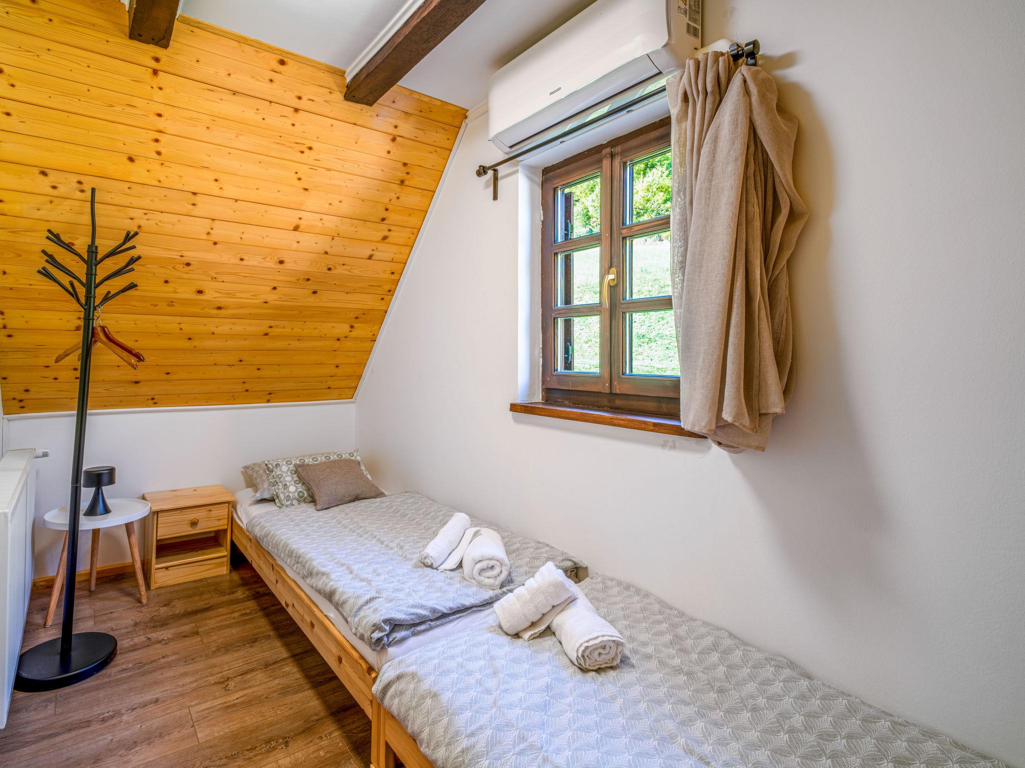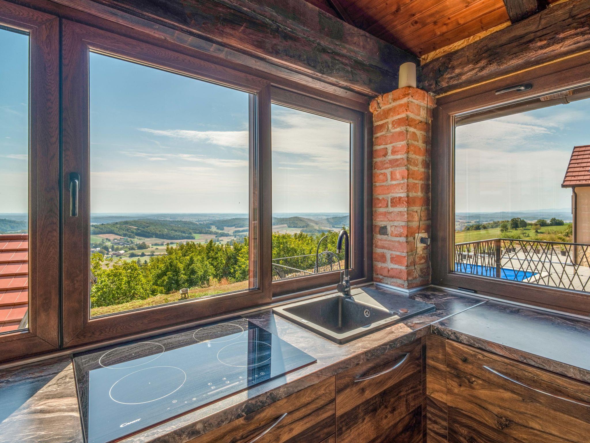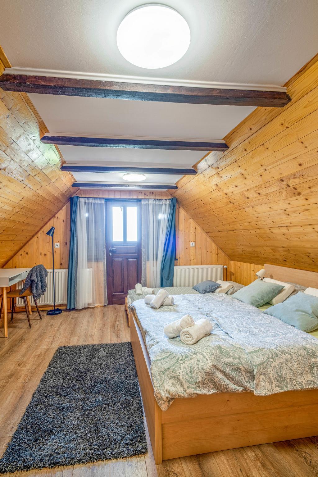 Kalnik 16 km von Križevci: Gemütliches, rustikales Einfamilienhaus "Vila Breg", auf 3 Stockwerken. 42 km vom Zentrum von Varaždin, 69 km vom Zentrum von Zagreb, am Hang. Zur Alleinbenutzung: Grundstück 5'000 m2 mit Rasen 1'000 m2 Bäumen, Schwimmbad eckig, beheizt (8 x 4 m, 145 cm tief, saisonale Verfügbarkeit: 15.Apr. - 14.Okt.) mit Meerwasser, Innentreppe und Salzelektrolyse-Reinigungssystem. Dusche/WC im Poolbereich, Aussendusche, Sprudelbad, Tischtennis, Terrasse (20 m2), Gartenmöbel, Grillhaus, Kinderspielplatz (Rutschbahn, Schaukel), Poolpflege durch den Besitzer/Gärtner. In der Anlage: Internetzugang, Sauna, Tischfussball. Steile Zufahrt bis zum Haus (100 m Naturweg). Parkplatz (für 4 Autos) beim Haus auf dem Grundstück. Einkaufsgeschäft 2.5 km, Restaurant 3.5 km, Café 2.7 km, Fahrradverleih 3.3 km, Bushaltestelle 1 km. Wanderwege ab Haus 50 m. Nahe gelegene Sehenswürdigkeiten: Old town Veliki Kalnik 3.6 km, Varaždinske toplice 33 km. Jugendgruppen nur auf Anfrage. Die Anlage besteht aus zwei Häusern welche nur zusammen vermietet werden.