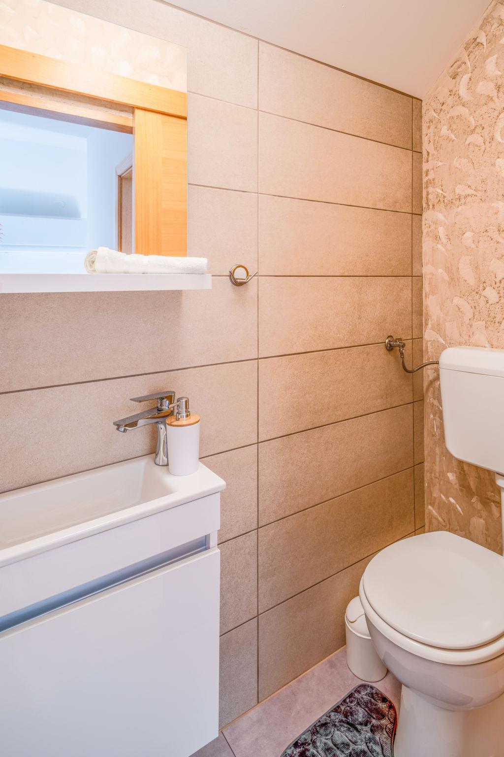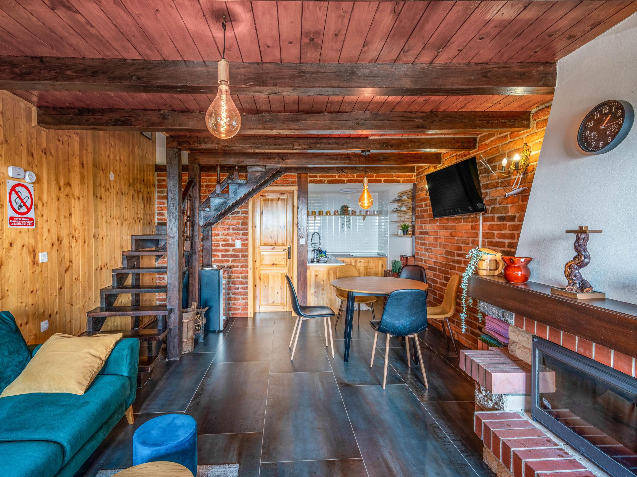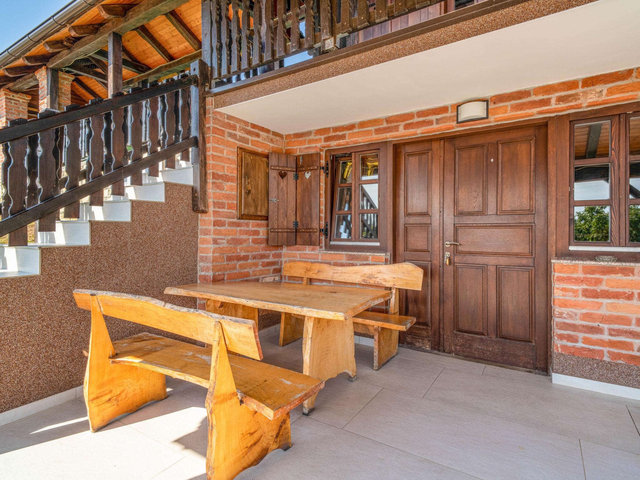 Kalnik 16 km von Križevci: Gemütliches, rustikales Einfamilienhaus "Vila Breg", auf 3 Stockwerken. 42 km vom Zentrum von Varaždin, 69 km vom Zentrum von Zagreb, am Hang. Zur Alleinbenutzung: Grundstück 5'000 m2 mit Rasen 1'000 m2 Bäumen, Schwimmbad eckig, beheizt (8 x 4 m, 145 cm tief, saisonale Verfügbarkeit: 15.Apr. - 14.Okt.) mit Meerwasser, Innentreppe und Salzelektrolyse-Reinigungssystem. Dusche/WC im Poolbereich, Aussendusche, Sprudelbad, Tischtennis, Terrasse (20 m2), Gartenmöbel, Grillhaus, Kinderspielplatz (Rutschbahn, Schaukel), Poolpflege durch den Besitzer/Gärtner. In der Anlage: Internetzugang, Sauna, Tischfussball. Steile Zufahrt bis zum Haus (100 m Naturweg). Parkplatz (für 4 Autos) beim Haus auf dem Grundstück. Einkaufsgeschäft 2.5 km, Restaurant 3.5 km, Café 2.7 km, Fahrradverleih 3.3 km, Bushaltestelle 1 km. Wanderwege ab Haus 50 m. Nahe gelegene Sehenswürdigkeiten: Old town Veliki Kalnik 3.6 km, Varaždinske toplice 33 km. Jugendgruppen nur auf Anfrage. Die Anlage besteht aus zwei Häusern welche nur zusammen vermietet werden.