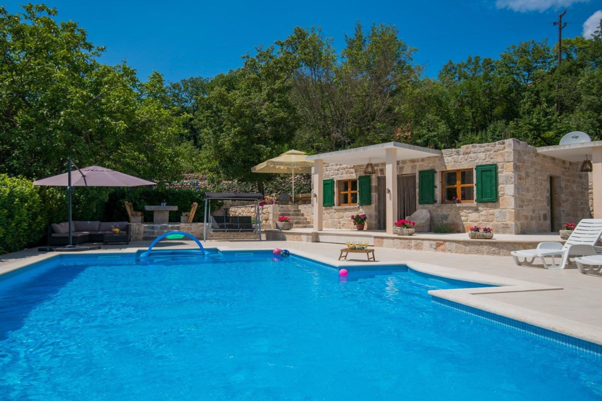 Villa Mia 2 in Krividol, Split-Dalmatia County, Croatia, offers modern accommodations with amenities like free Wi-Fi, air conditioning, a fully equipped kitchen, and private parking. It features a private pool, garden, and terrace with scenic views. Located in a serene area, it provides easy access to nearby beaches, historic sites in Split and Trogir, and outdoor activities like hiking and cycling. Ideal for families, couples, and groups seeking a peaceful retreat. Note: Private parking is available, reservation is not required. Baggage drop-off is available before check-in. Wi-Fi is available throughout the property. Pets are not allowed. Baby cot is available on request. This six-bedroom villa can accommodate up to twelve guests. It features an SAT/flat-screen TV, Billiards, and Table tennis, and is combined with a living room seating area, sofa, and kitchen. The private bathroom is equipped with a shower and toilet. Free toiletries are available on request. Thanks to its excellent location, everything you'll need for your vacation is just a short walk away from the property. Grocery stores, cafes, restaurants—everything is within a 10.00 km radius. The beach is 18.00 km away from the property. The airport is 95 km away from the property.