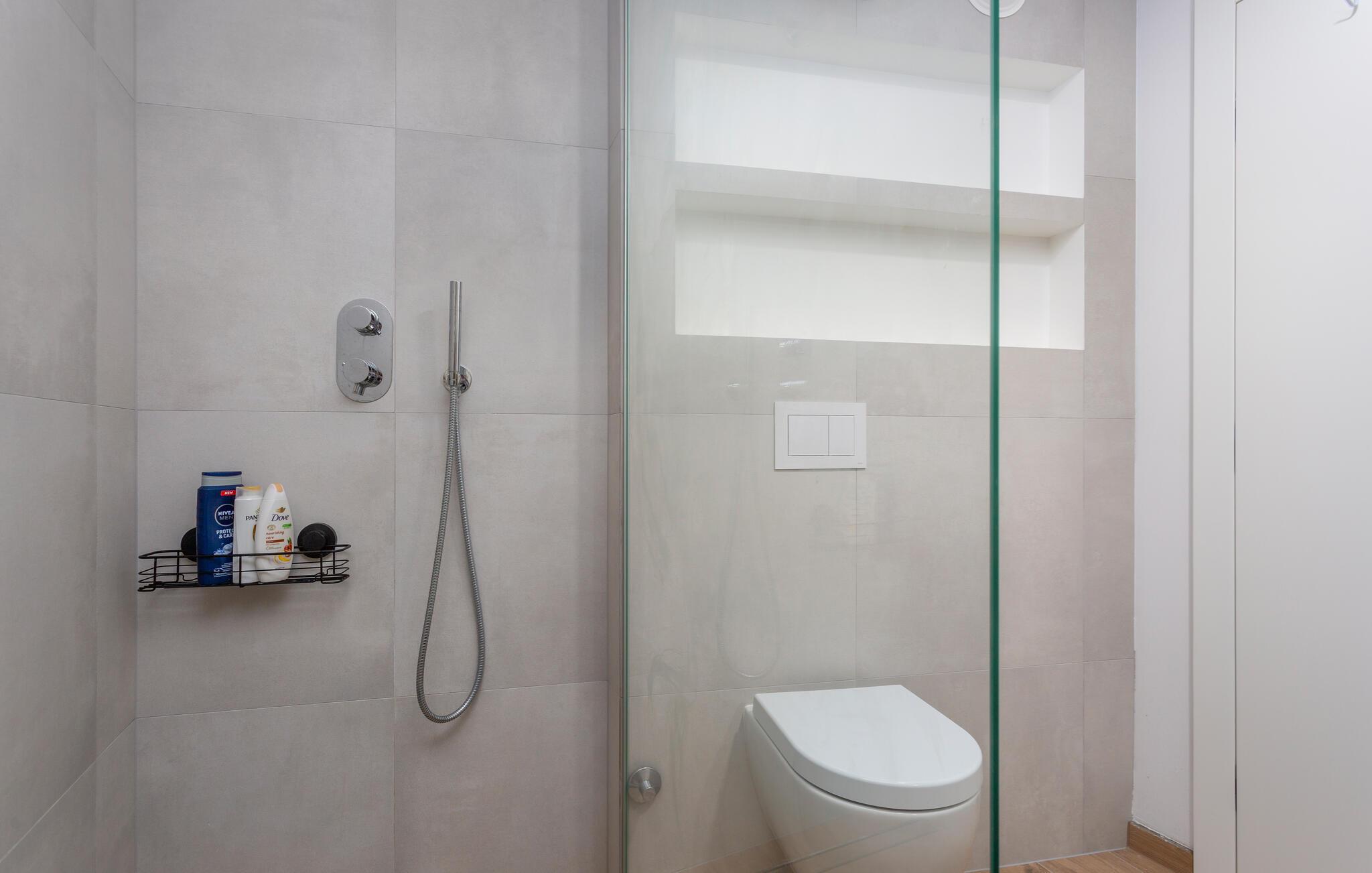 - WC mit warmem und kaltem Wasser, Dusche