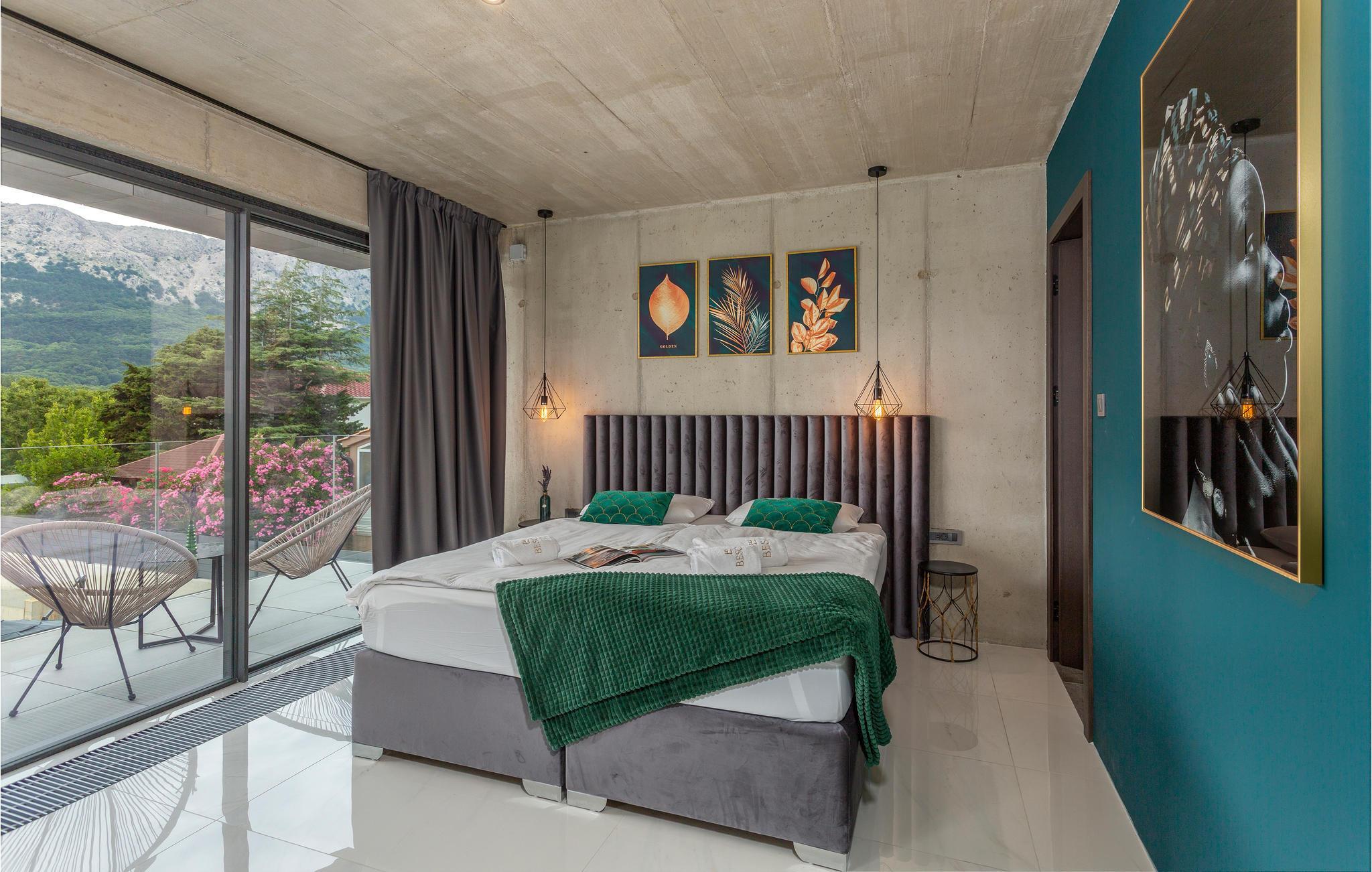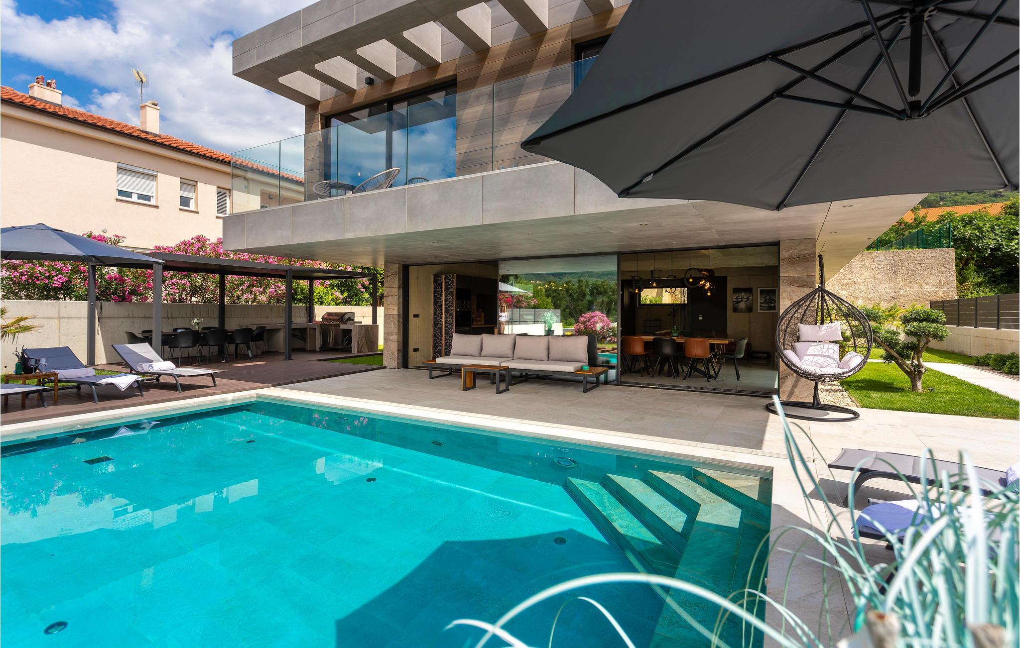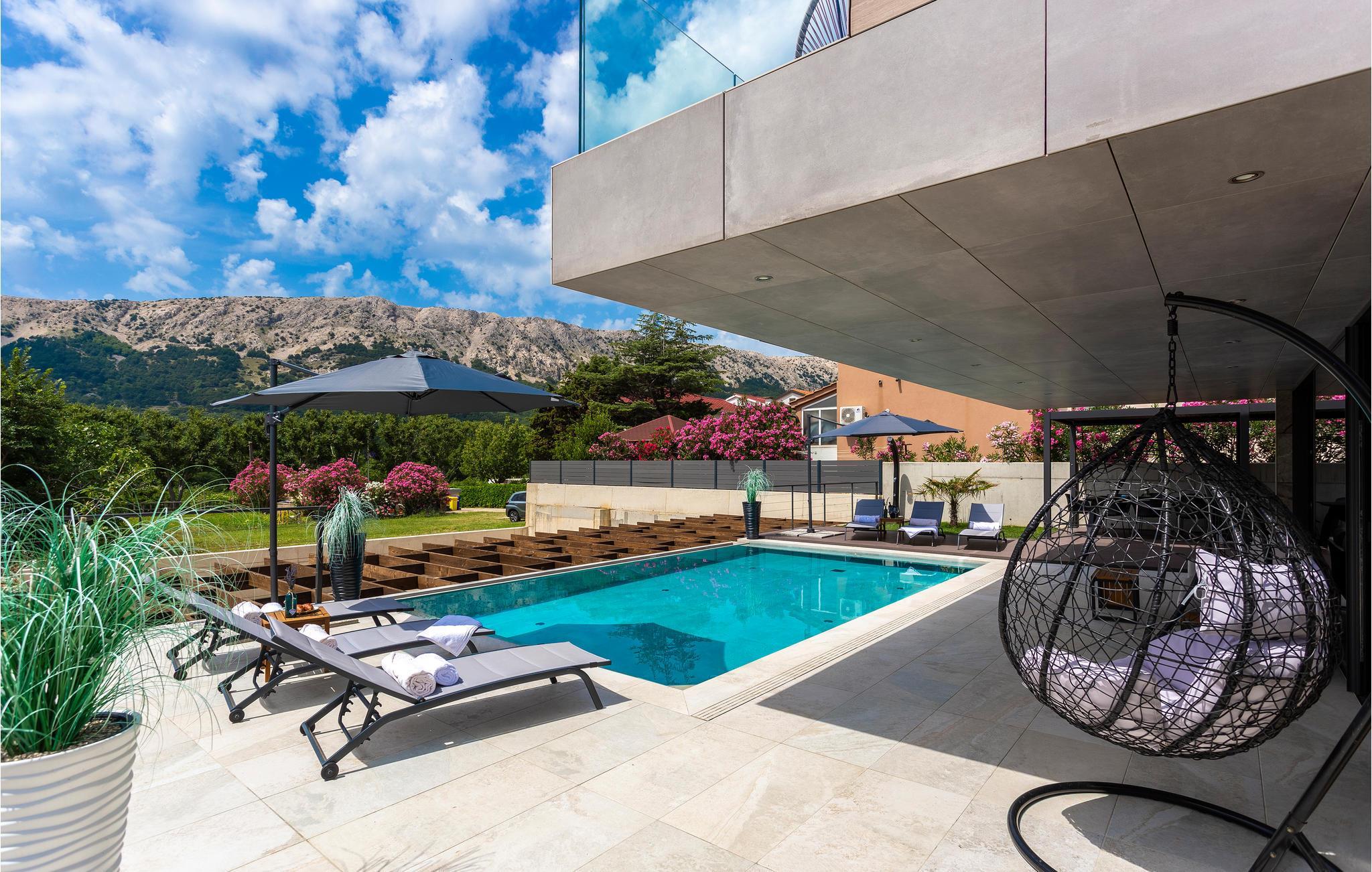 In diesem luxuriös eingerichteten Ferienhaus im Industriestil erleben Sie einen unvergesslichen Urlaub. Von der Terasse und dem verglasten Balkon aus bietet sich ein einzigartiger Ausblick auf die Landschaft der Insel Krk. Sie können hier mit der ganzen Familie im abgestuften Pool herumplanschen und sich erfrischen. Die überaus moderne Einrichtung bietet Ihnen im Haus alles, was Sie sich für einen Rundum-Wohlfühl-Urlaub wünschen. Im Souterrain finden Sie eine Sauna und einen Whirpool, sowie einen Fitnessbereich und ein Heimkino vor. Ein herrlicher Ort zur Entspannung! Mit der Fußbodenheizung eignet sich das Haus für einen Besuch zu allen Jahrezeiten. Genießen Sie ein erfrischendes Getränk nach einem erlebnisreichen Tag auf der Terasse am Pool. Hier finden sie sowohl sonnige als auch schattige Plätze auf den bequemen Liegestühlen und Hängesesseln.
