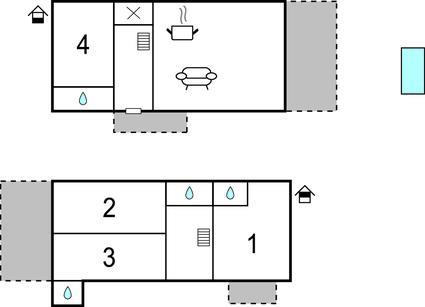 Badezimmer (nr. 4) - WC. Warmes und kaltes Wasser. Dusche