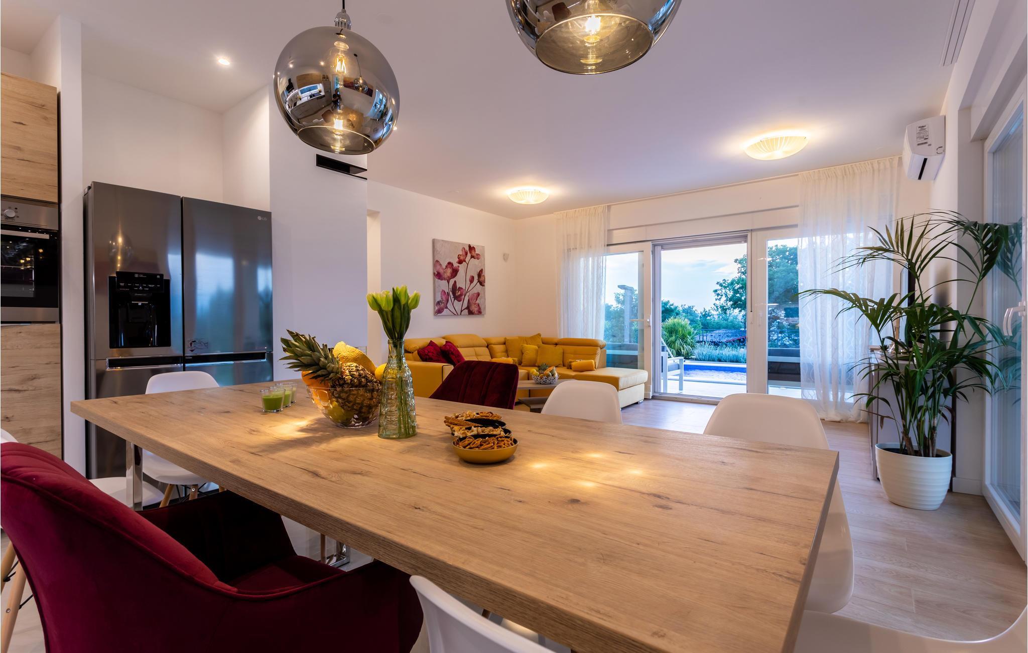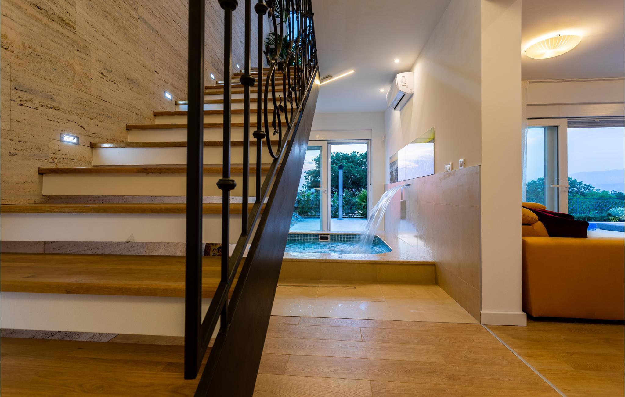 Dieses zauberhafte Ferienhaus lädt Sie zu einem erholsamen Urlaub ein. Es liegt in der Nähe von Meer und Wald, in dem kleinen Ort Klimno, der sich auf der schönen Insel Krk befindet. Die luftigen Innenräume sind modern und komplett ausgestattet, um den Geschmack um die Bedürfnisse selbst der anspruchsvollsten Gäste zu befriedigen. Grill, Liegestühle, Whirlpool und Außenpool sowie der eingezäunte Garten sind im Garten vorhanden. Klimno, wie auch die ganze Insel Krk, bietet ein äußerst reiches Angebot an Unterhaltungs-, Kultur- und Sporteinrichtungen. Es gibt viele Möglichkeiten für einen aktiven Urlaub: Promenaden, Wakeboarding, Radwege und Kartbahnen. Probieren Sie ein reichhaltiges und exzellentes gastronomisches Angebot und erstklassige, lokale Weine.