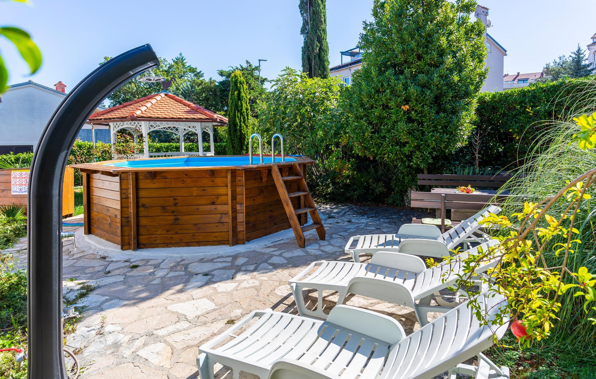 Im beliebten Ferienort Malinska befindet sich dieses Ferienhaus, umgeben von einem schönen Garten.