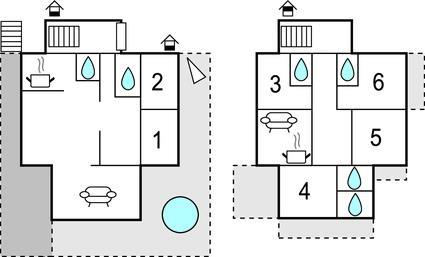 Badezimmer (nr. 4) - WC. Warmes und kaltes Wasser. Dusche