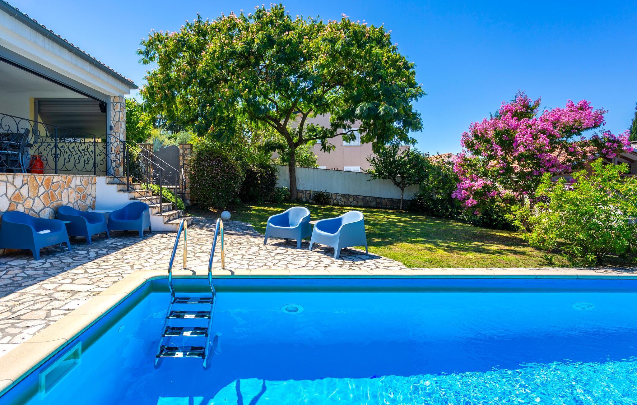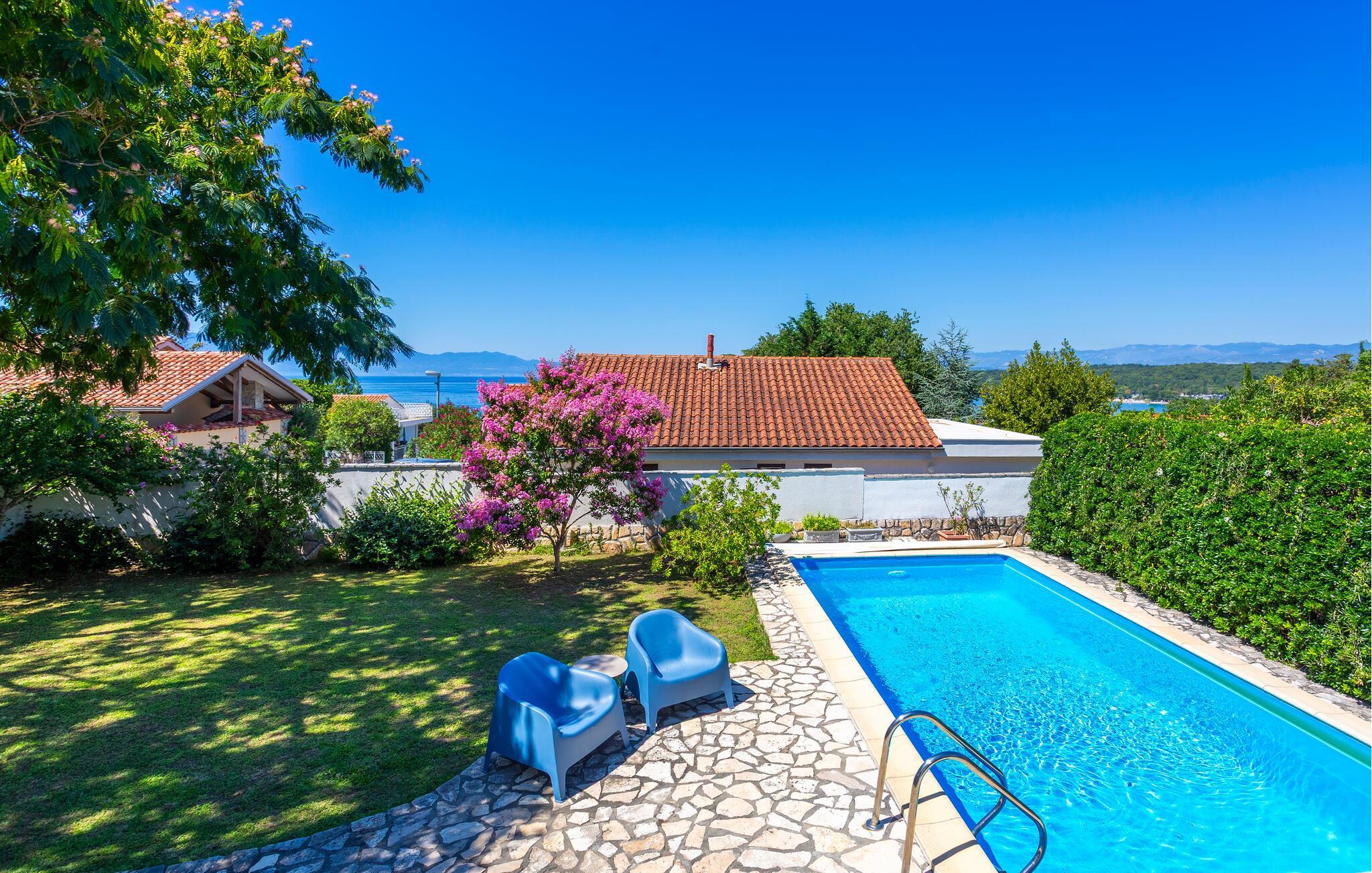 Dieses schön errichtete und hübsche Ferienhäuschen befindet sich im kleinen Fischerdorf Njivice, auf der bezaubernden Insel Krk. Es ist die ideale Wahl für eine Familie, die ihren Urlaub zum Entspannen nutzen will. Luftig und mit neuen, bequemen Möbeln, in warmen Tönen eingerichtet, sorgt es für einen erholsamen und gemütlichen Aufenthalt. Nutzen Sie die überdachte Terrasse, um in Ruhe ein kühles Getränk zu sich zu nehmen oder ein gutes Buch zu lesen. Auf dem eingezäunten Grundstück können Ihre Kinder sorglos spielen, während Sie sich auf den Liegestühlen entspannen können. Ein schöner Swimmingpool sorgt an warmen Sommertagen für eine herrliche Erfrischung. Wenn Sie lieber im Meer baden möchten, dann besuchen Sie die schönen Strände, welche nur wenige Minuten entfernt sind. Die Insel Krk wird auch liebevoll die goldene Insel genannt.