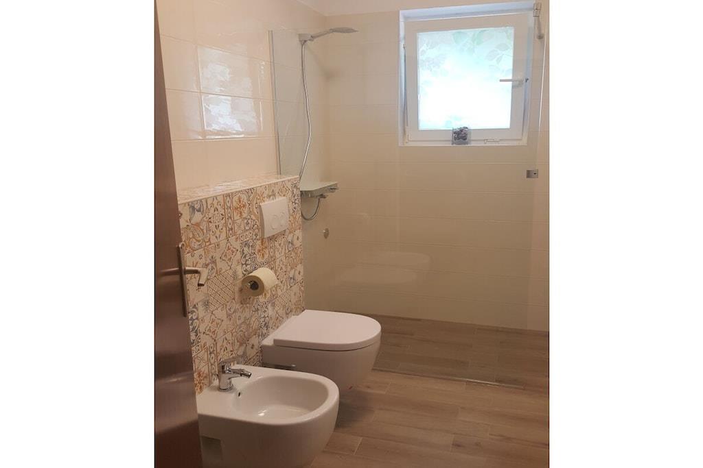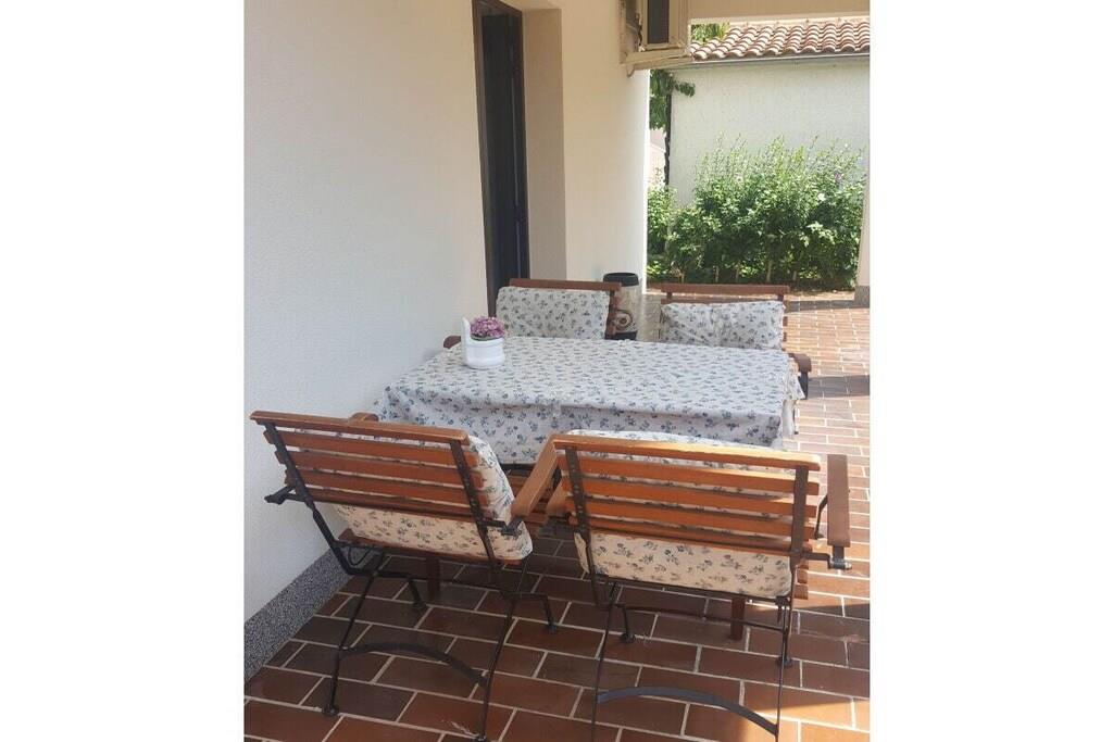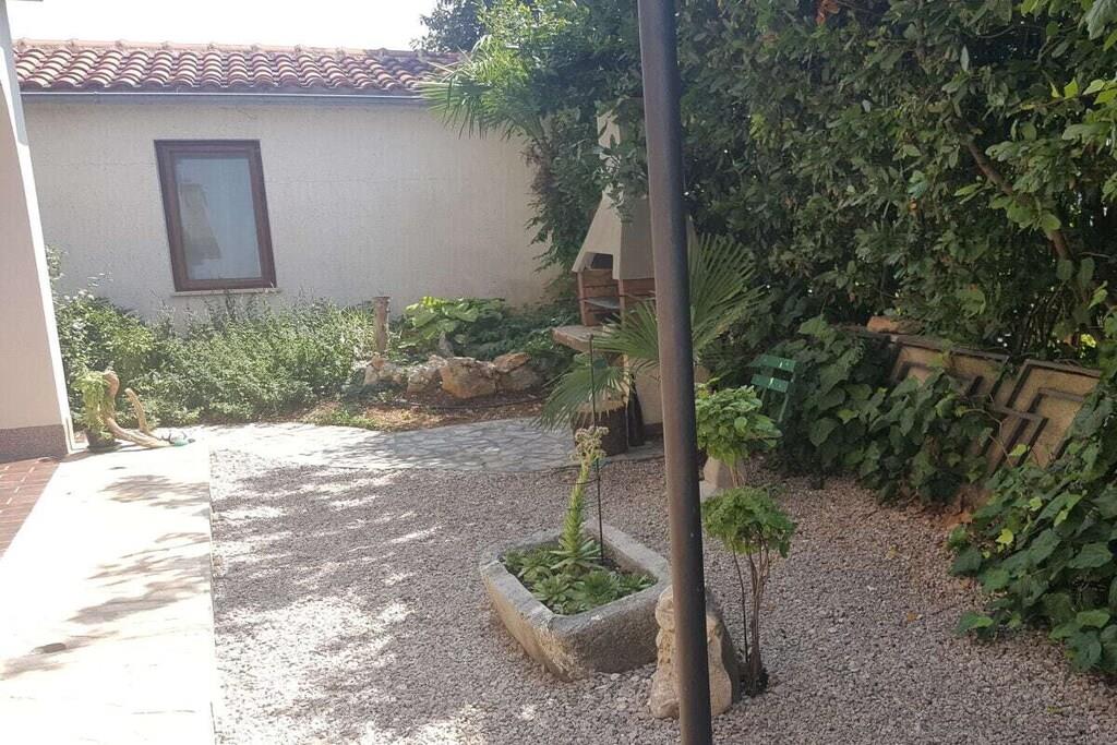 Das komfortable Apartment KrkAp befindet sich im Ergeschoß des Familienhaus und bietet eine private Sphere für 2 Personen (oder 2Erw. und 2 kleinere Kinder). Diese Ferienwohnung besteht aus einer ausgestatteten Küche, einem Schlafzimmer mit Kingsize Bett, einem Badzimmer mit Dusche. Das Apartment verfügt eine niedliche Terrasse mit dem Grill, dem Gartenmöbel und den Liegestühlen. Die Unterkunft ist für 2 Personen vorgesehen, aber auf Anfrage und ggn. Aufpreis können noch 2 Personen (Kinder) auf einem Sofa im Wohnzimmer untergebracht werden.