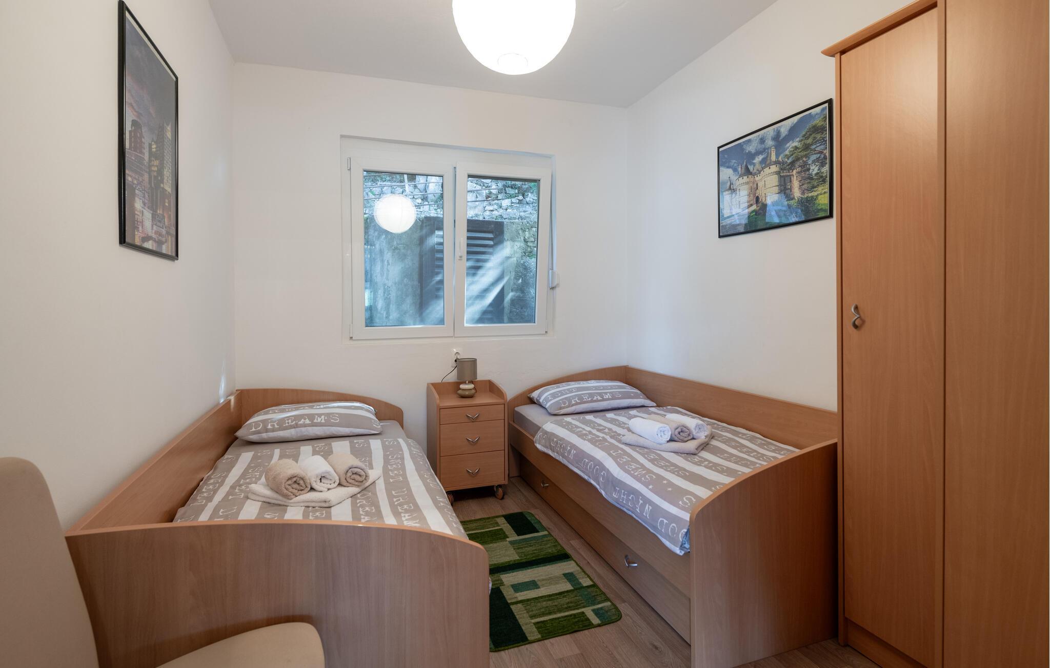Im kleinen Fischerort Krnica, umgeben von mediterraner Natur und in unmittelbarer Nähe vom Meer ,befindet sich diese besondere Ferienwohnung. Die Wohnung verfügt über zwei Schlafzimmer, Wohnraum, Küche und Bad sowie zwei Terrassen mit herrlichem Meerblick. Hier können Sie den Tag mit einem Kaffee beginnen und die Aussicht über die Bucht genießen. In Krnica finden Sie Ruhe und Entspannung, weit weg von Menschenmassen mit unzähligen versteckten kleinen Stränden, die auf Sie warten. Es führen Treppen den Abstieg bis zu den etwa 20 m(Luftlinie) entfernten, felsigen Stränden hinunter. Genießen Sie den Panoramablick auf das Meer und die schöne Bucht von Krnica.