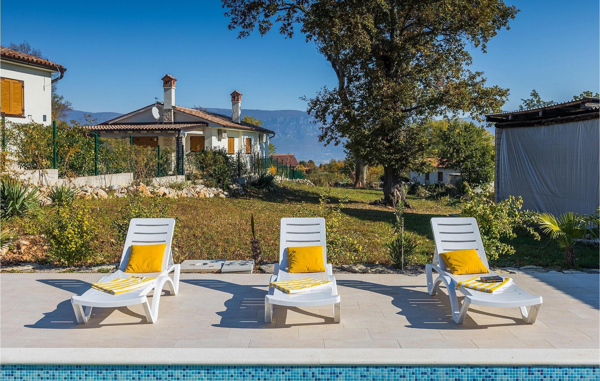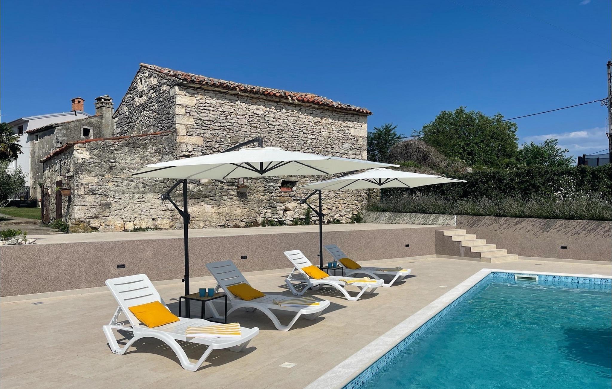 Die charmante Villa Mendula befindet sich in einem kleinen Dorf in der Nähe der istrischen Stadt Labin. Vor der Villa befindet sich ein privater Pool, neben dem Sie die erholsame Atmosphäre dieser Region genießen können. Im Außenbereich steht Ihnen eine Sommerküche mit einem geräumigen Esstisch und einem wunderbaren Kamin, wo Sie die Möglichkeit haben, gemütliche Sommerabende mit Familie und Freunden zu verbringen.