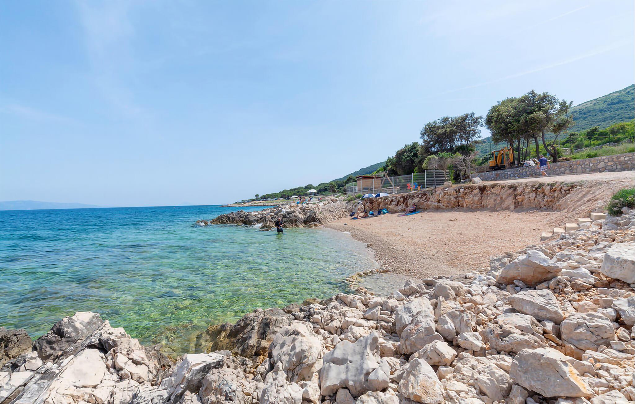 Spazieren Sie zum Strand und erfrischen Sie sich im Meer. Ravni ist auch ein hervorragendes Reiseziel für Surfer und Taucher. Im Sommer gibt es im Ort einen kleinen Laden und mehrere Restaurants, größere Supermärkte finden Sie in Labin. Die mittelalterliche Stadt Labin ist Schauplatz zahlreicher kultureller Sommerveranstaltungen, die Sie mit ihren malerischen Gassen und ihrem gastronomischen Angebot begeistern wird. Naturliebhaber können auch Skitaca besuchen, den höchsten Gipfel von Labin, von dem aus Sie einen unvergesslichen Blick auf die gesamte Kvarner-Bucht und die Inseln genießen.