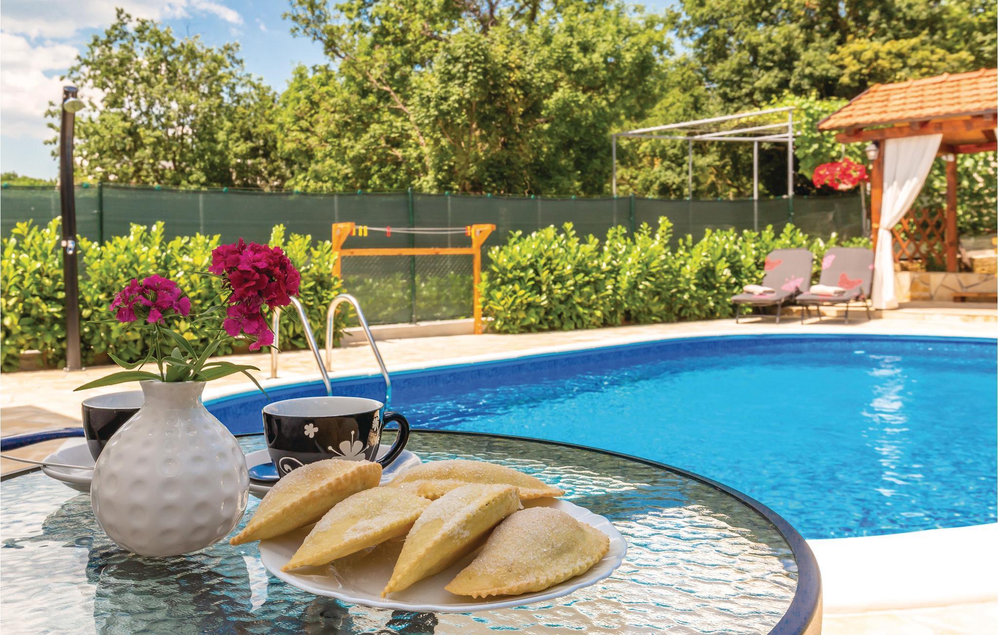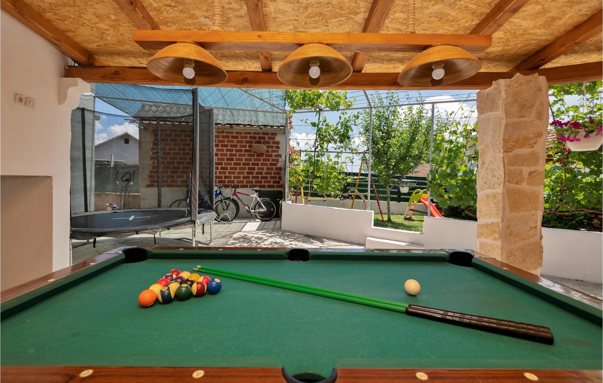 Dieses sympathisch eingerichtete Ferienhaus mit Pool liegt im Inland von Mitteldalmatien. Im Erdgeschoss ist die Küche mit Wohnzimmer und Bad. Steile Treppen führen Sie zum Obergeschoss mit zwei Schlafzimmern und Toilette. Die niedrigste Deckenhöhe beträgt dort 150 cm. Es stehen Ihnen der Pool zur Erfrischung und die überdachte Terrasse mit Grill zur Verfügung. In etwa 150 m Entfernung vom Haus ist ein Kinderspielplatz, den die Kleinsten kostenlos nutzen können. Entdecken Sie die herrliche Destination und besuchen die Stadt Imotski mit zahlreichen Freizeitangeboten, sowie die Riviera von Makarska in etwa 25 km Entfernung.