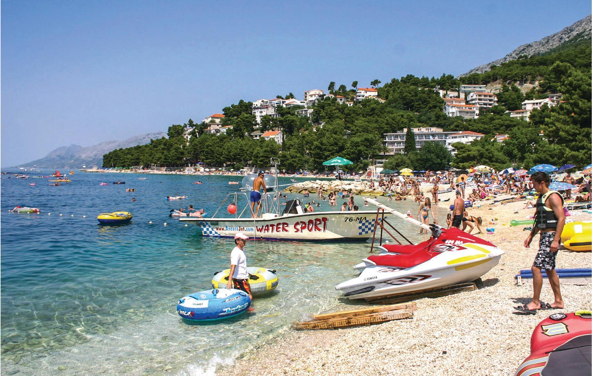 Diese Ferienwohnungen (CDE547-548) befinden sich im zweiten Stock in der kleinen Ortschaft Krvavica, zwischen Makarska und Baska Voda. Lassen Sie sich von der Riviera von Makarska begeistern. Entspannen Sie sich auf dem Balkon, mit herrlichem Blick auf die Ortschaft Baska Voda. Die Ferienunterkünfte sind nett eingerichtet und können bei Bedarf auch zusammen gebucht werden. Vor dem Haus steht Ihnen auch ein gemeinsamer Grill zur Verfügung. Den kindergerechten Strand im Ort Bratus erreichen Sie in nur wenigen Minuten zu Fuß. Kulturinteressierte werden von den historischen Stadtkernen in Split und Trogir begeistert sein.