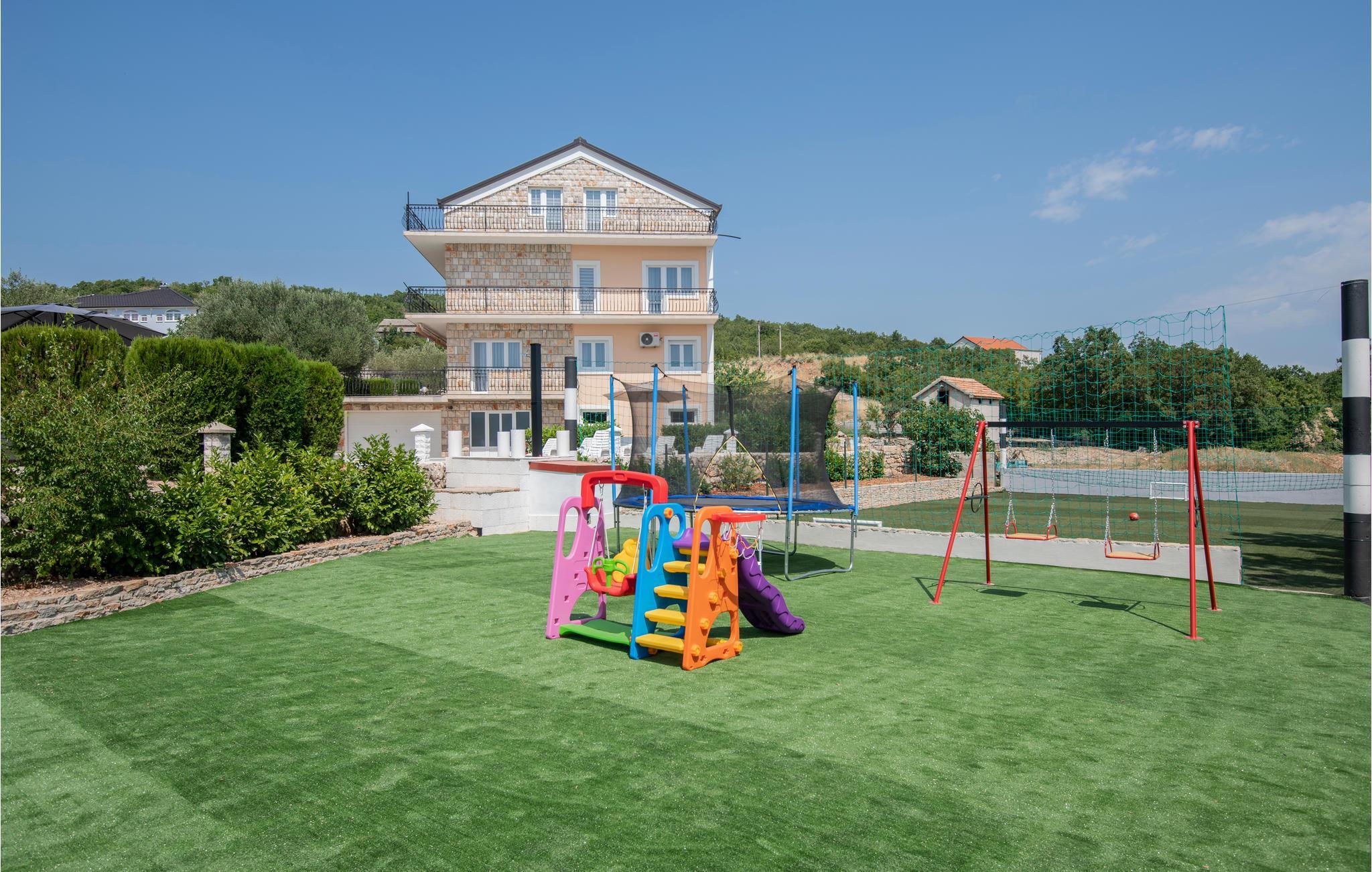 Dieses Haus verfügt über drei angelegte Etagen, mit jeweils Aufenthaltsmöglichkeiten, extra Toiletten und zusätzlich auch einem Fitnessraum im ersten Stock. Dasselbe ist somit ideal für eine große Freundesgruppe oder mehrere Familien die gemeinsam Urlaub machen wollen. Das Haus verfügt über mehrere Balkone und Terrassen, wobei es vor dem Haus ist eine Terrasse mit Grill gibt. Zudem finden Sie hier auch einen Spielplatz für Kinder, einen Fußballplatz mit Basketballkorb und Badminton, sowie einen größtenteils eingezäuntem Hof. Genießen Sie Stunden am Pool, grillen gemeinsam auf der Terrasse oder baden Sie sich bequem in der Sonne.