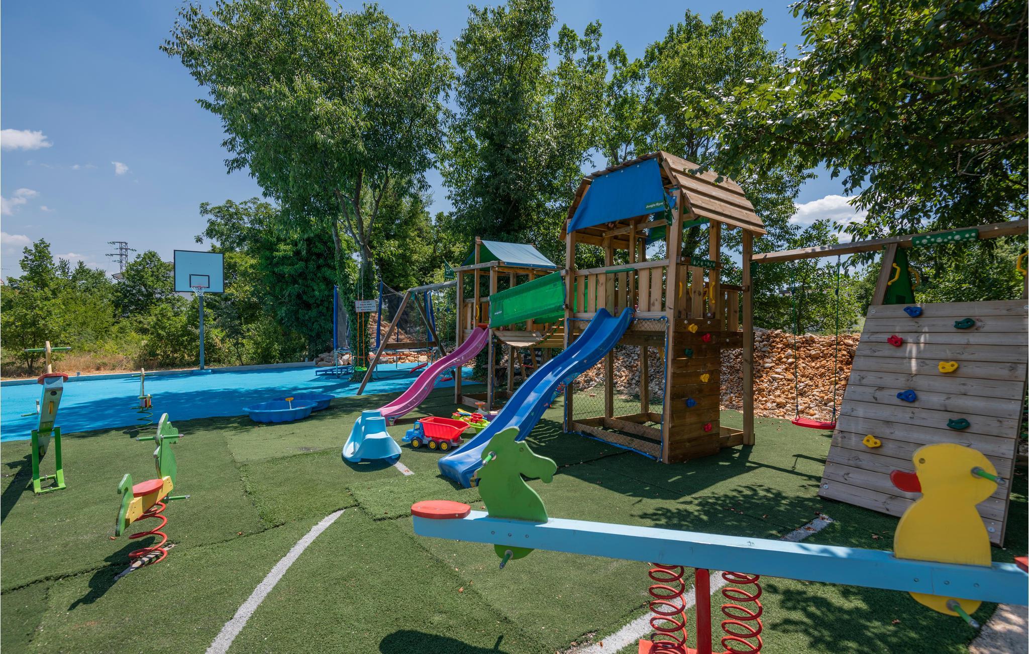 Das Ferienhaus verfügt über eine überdachte Terrasse mit Grill und einen Swimmingpool, einen Kinderspielplatz und einen gepflegten Garten. Das Haus verfügt über eine überdachte Terrasse mit Grill und einem Swimmingpool, platziert in einem gepflegten Garten. Auf dem Multifunktionsfeld für Tennis, Fußball oder Basketball werden Sie viel Spaß haben