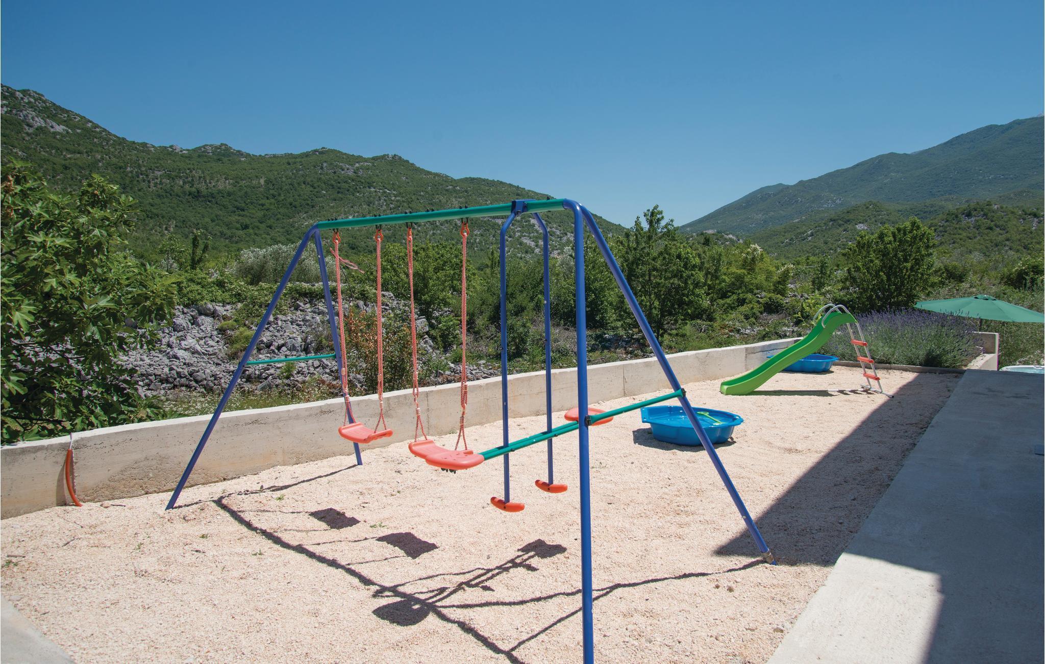 Dieses gut ausgestattete Ferienhaus befindet sich am Fuße des Naturparks Biokovo. Im Erdgeschoss gibt es einen geräumigen Wohnbereich mit Zugang zur Terrasse mit Pool und Massage-Wanne. Im Zimmer neben dem Pool gibt es auch eine Sauna. Im 1.Stock befinden sich die Schlafzimmer und eine große Terrasse. Im separaten Teil des Hauses ist ein Raum mit Billard, während im Keller eine nette Taverne mit großer Auswahl an Weinen eingerichtet wurde. Das Haus liegt in einer ländlichen Umgebung. Der Tunnel Sv. Ilija, der durch Biokovo führt, bringt Sie auf die nur 10 Fahrtminuten entfernte Riviera von Makarska. Exzellente Verkehrsanbindung und Nähe zur Autobahn bieten die Möglichkeit alle Schönheiten von Dalmatien kennenzulernen.